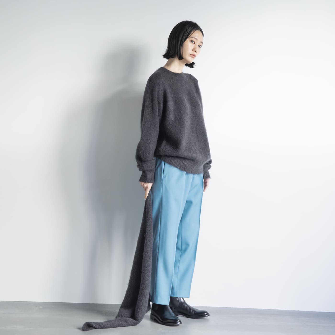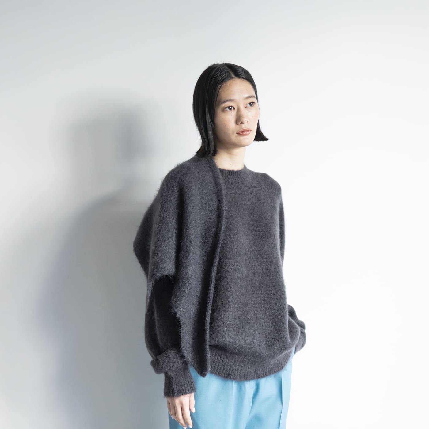 ふわふわしたモヘアシャギーはとても新鮮。