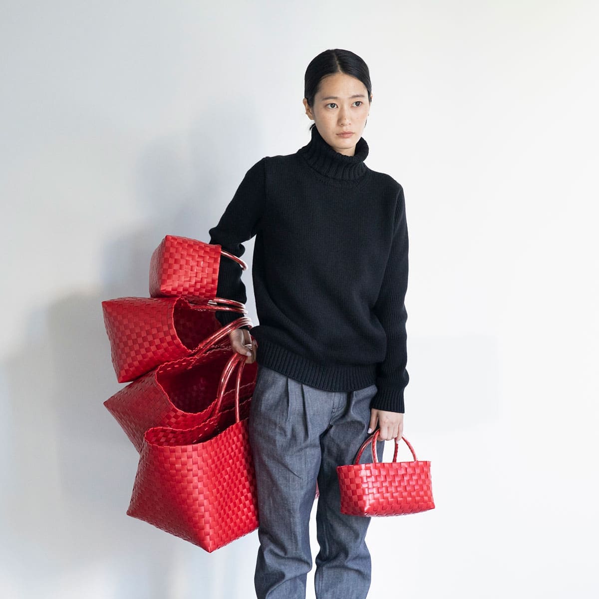 (M)幅:35cm、奥行き:21cm、高さ:20cm(持ち手を含む高さ:33cm)