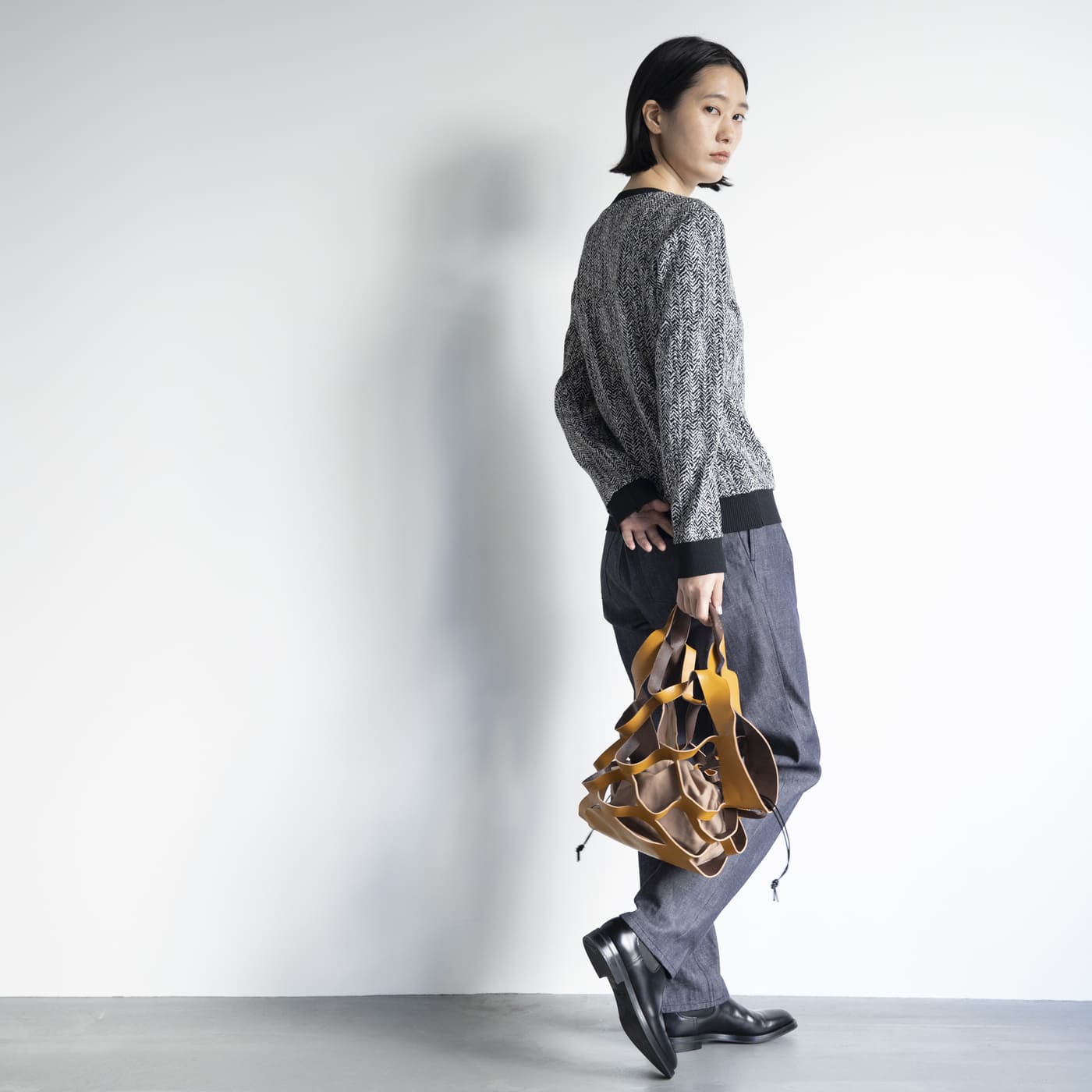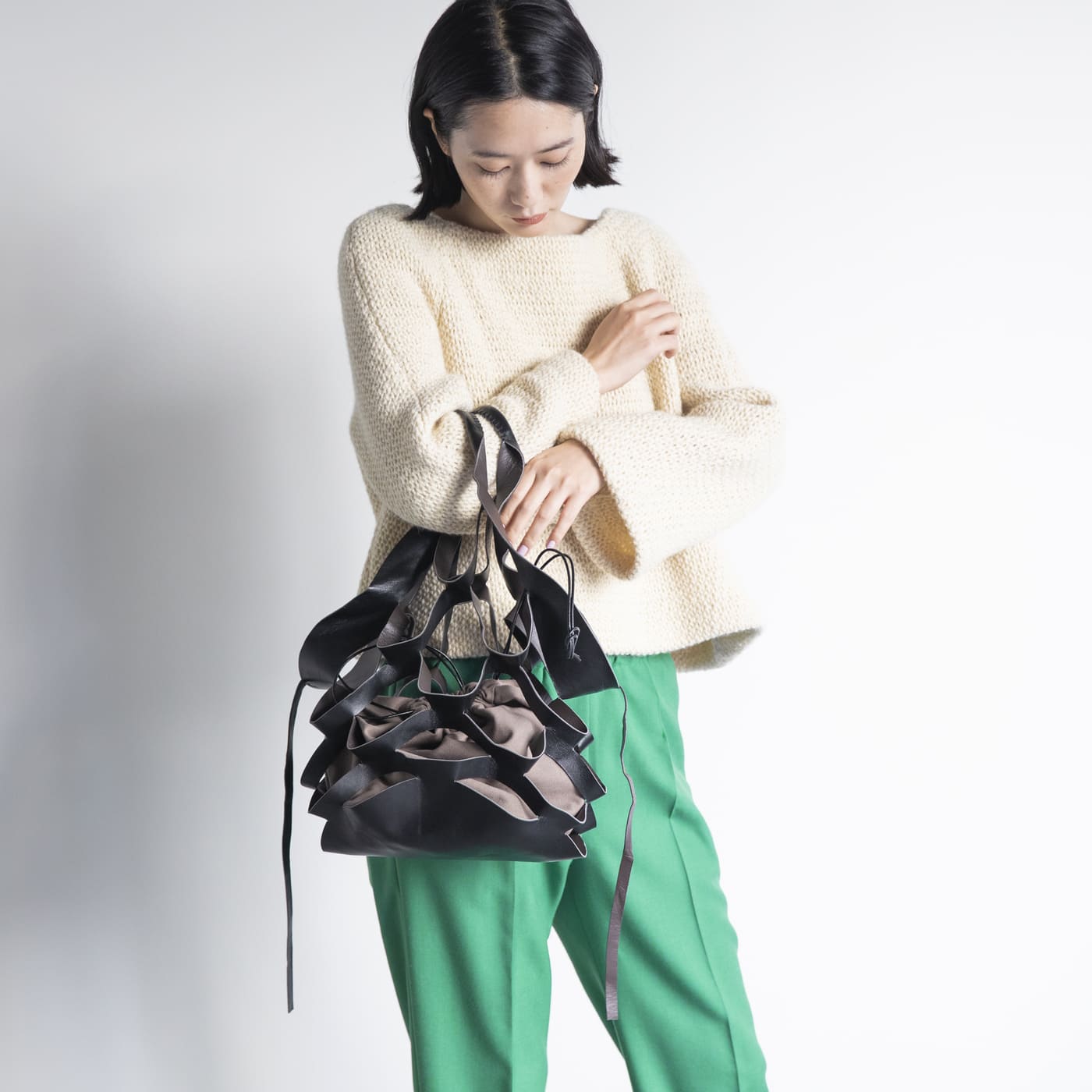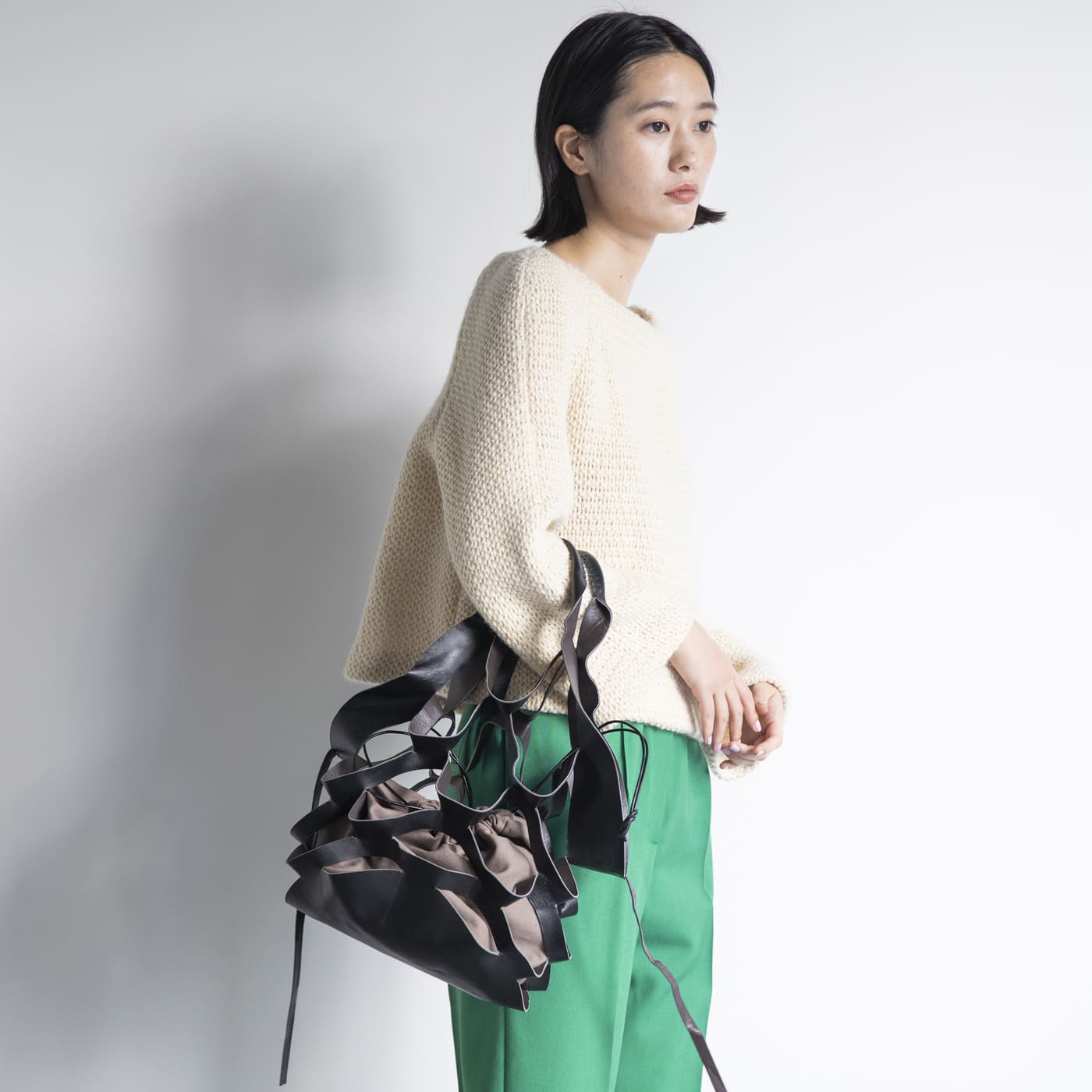 このバッグを持つだけで、すごく新鮮な印象になる。