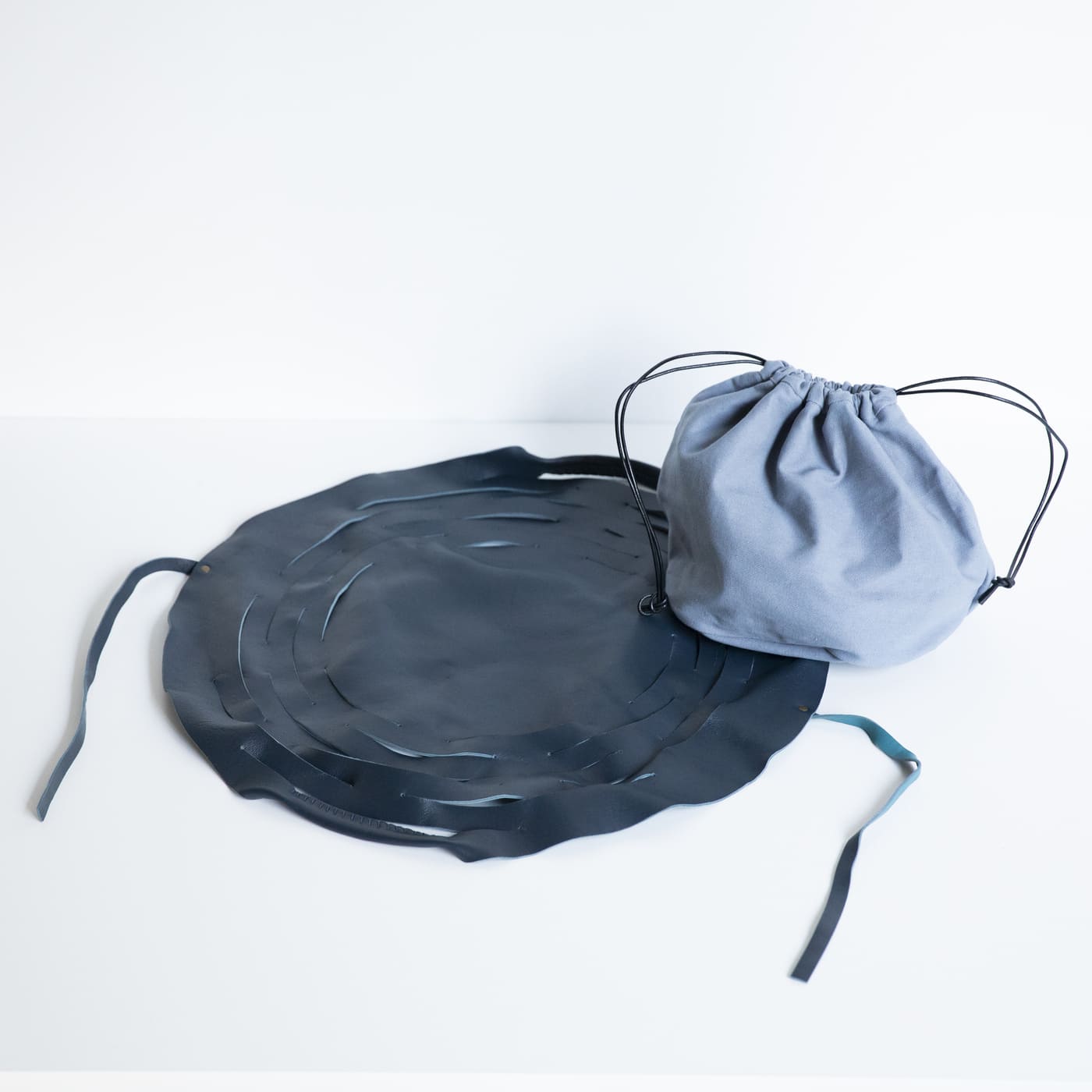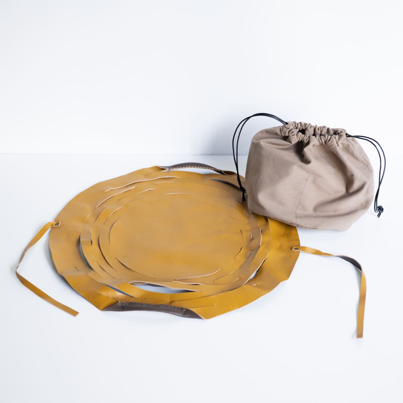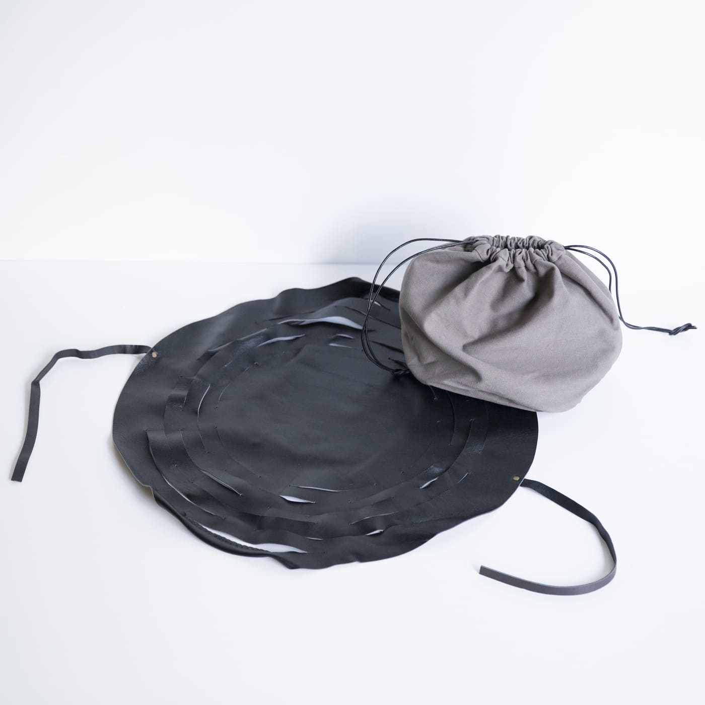 まん丸の革に切り込みを入れて、