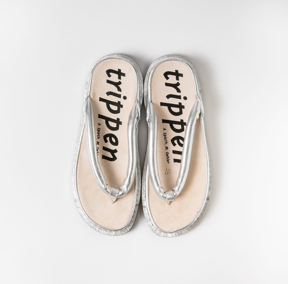 大胆に「trippen」のロゴが入ったインソールは、