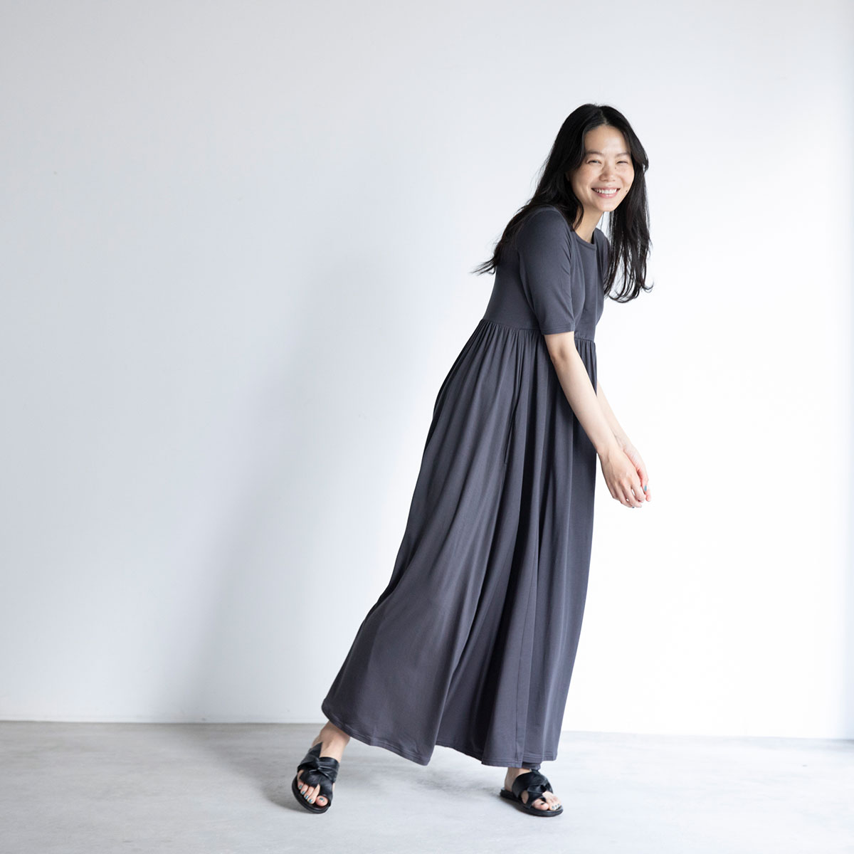 カップ付五分袖ワンピース(グレー・M)/cohan
