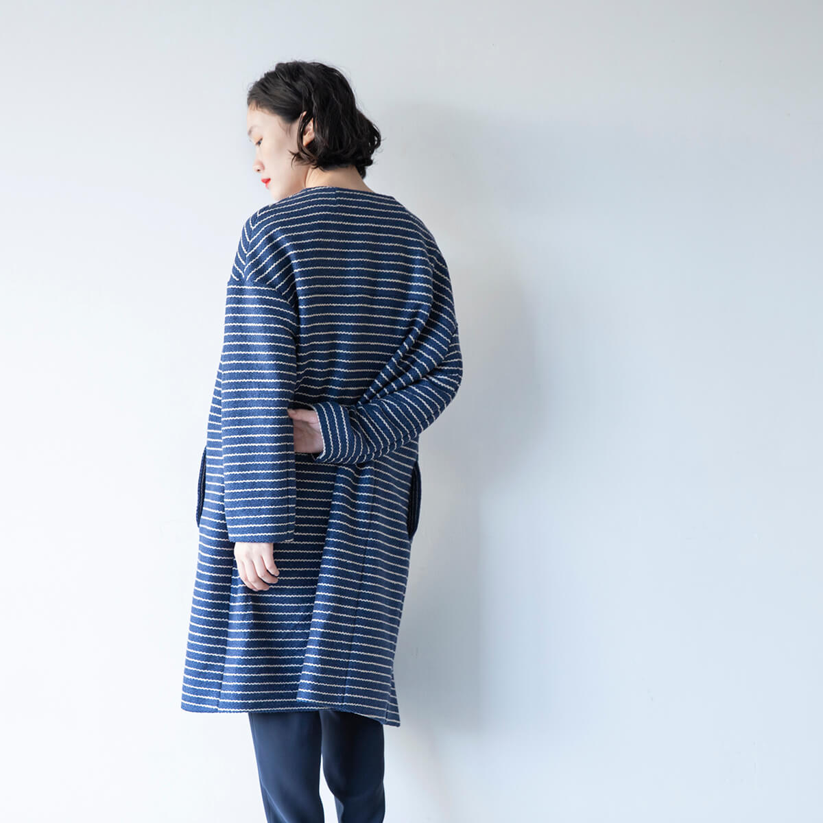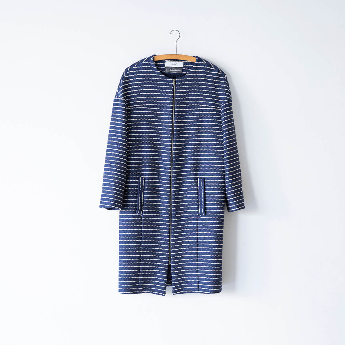 女性の体を美しく見せてくれる仕掛けがそこかしこに潜んでいるコートです。