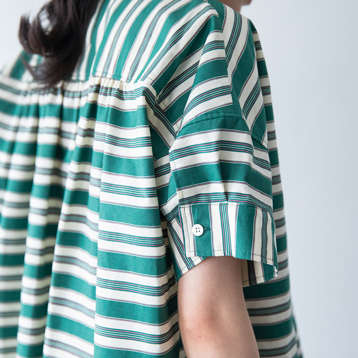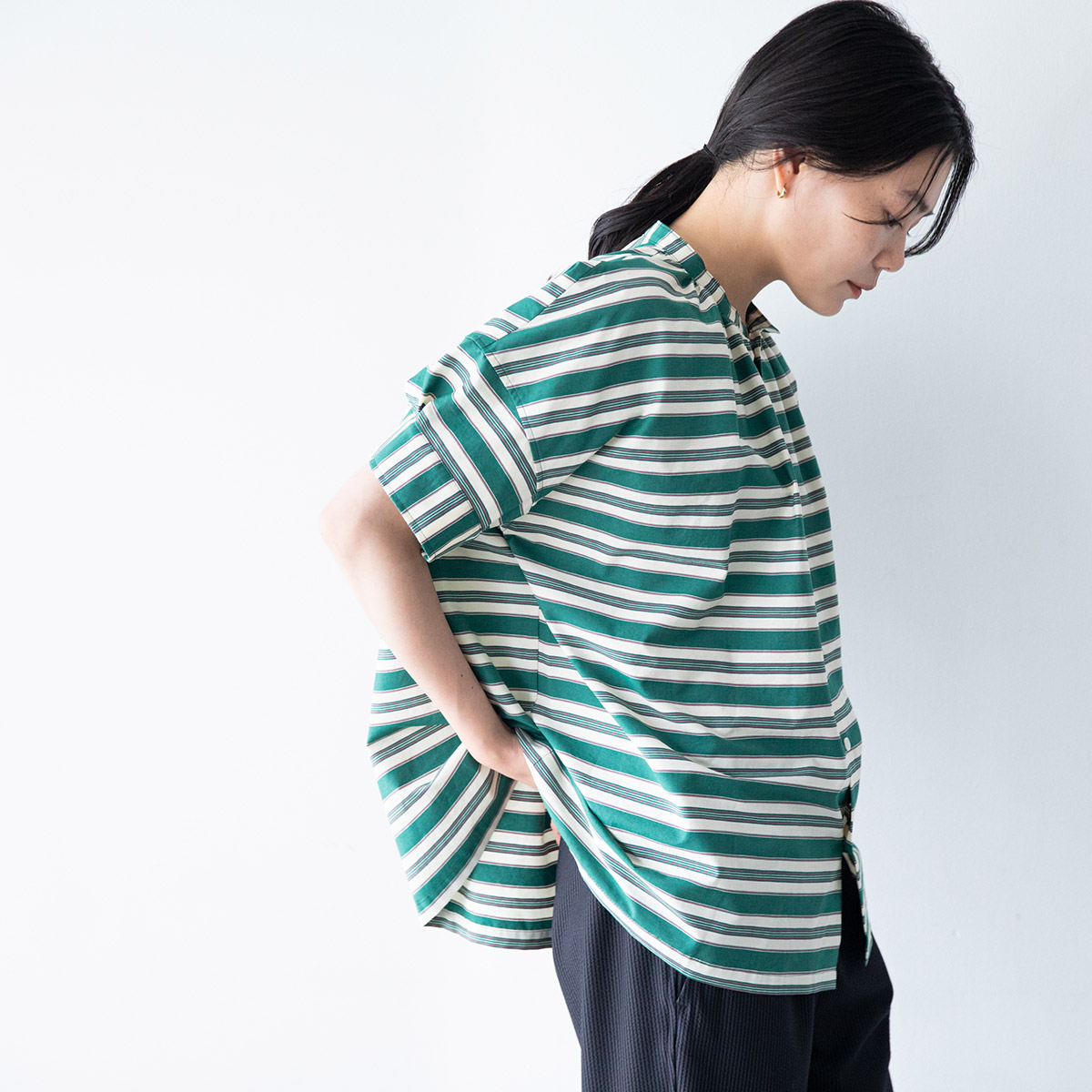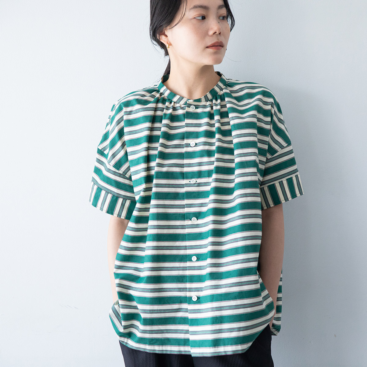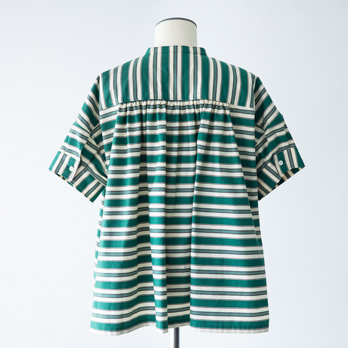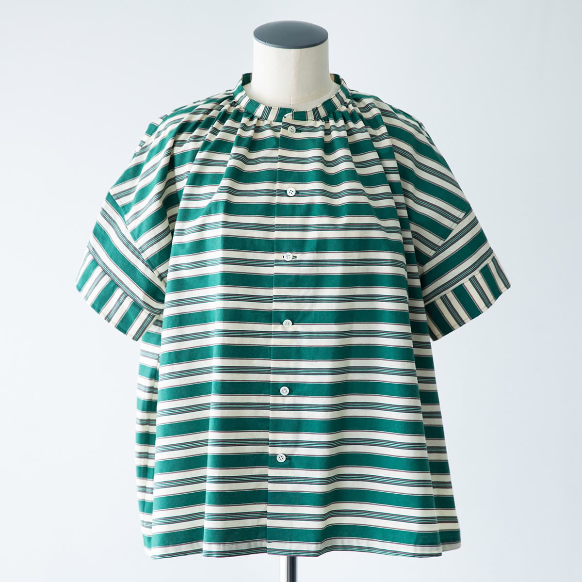 イタリアンボーダー半袖ブラウス(グリーン)/t.yamai paris