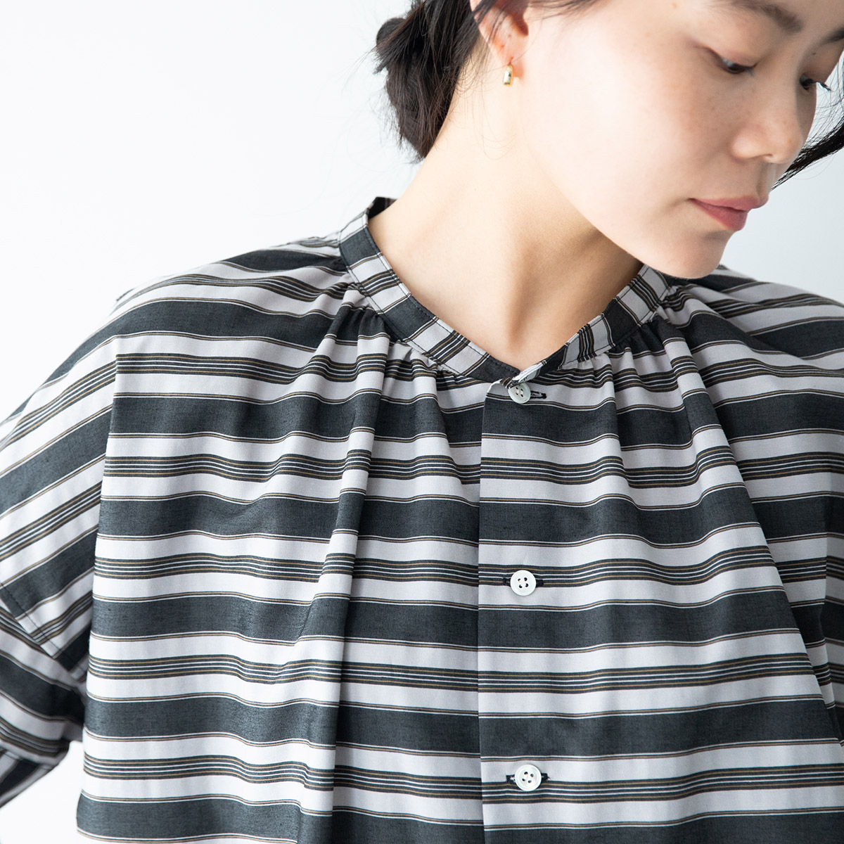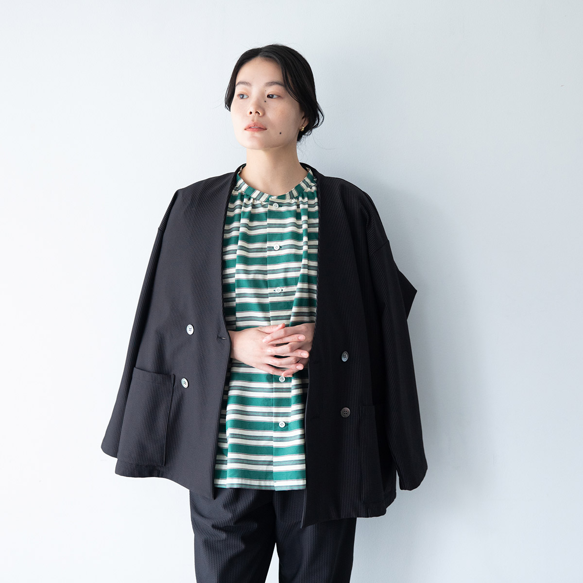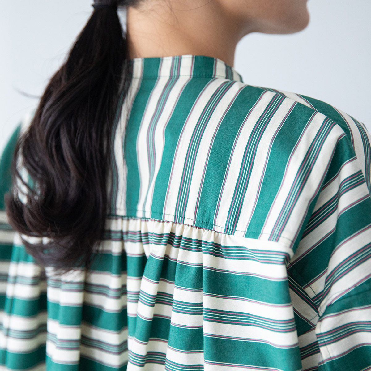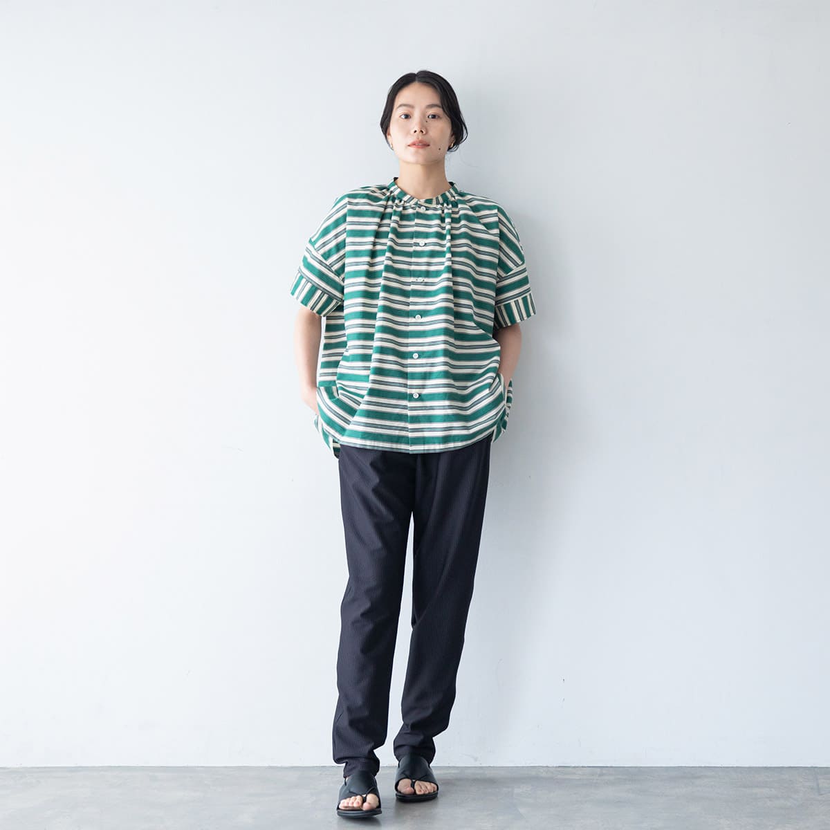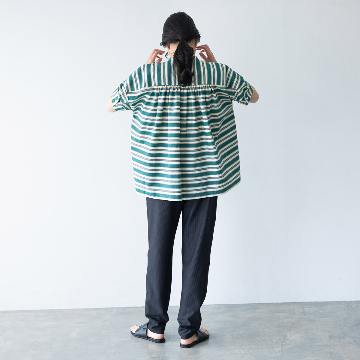 イタリアンボーダー半袖ブラウス(グリーン)/t.yamai paris