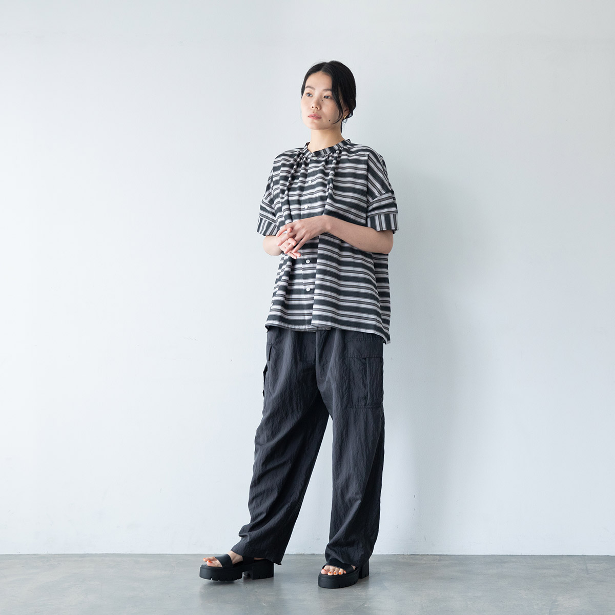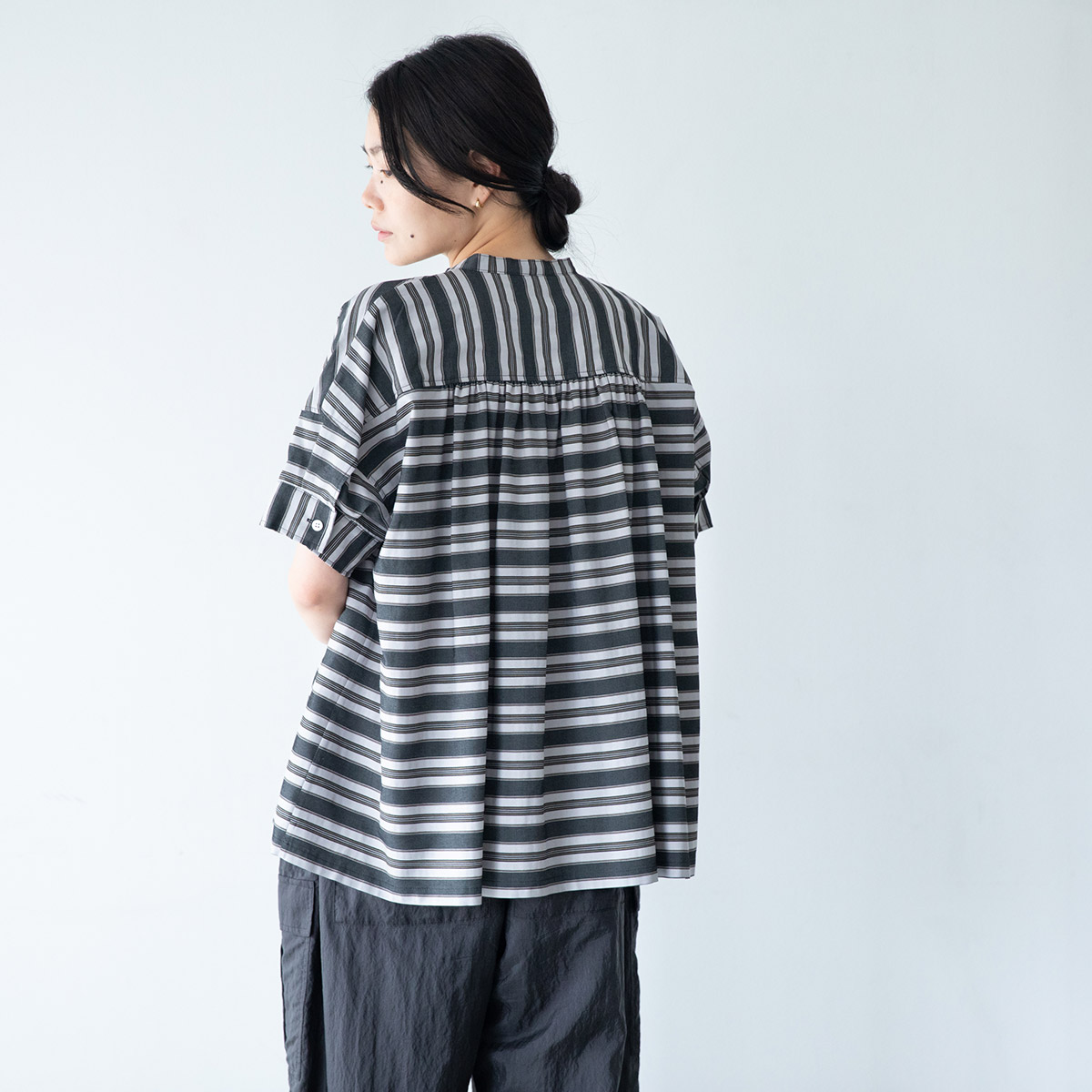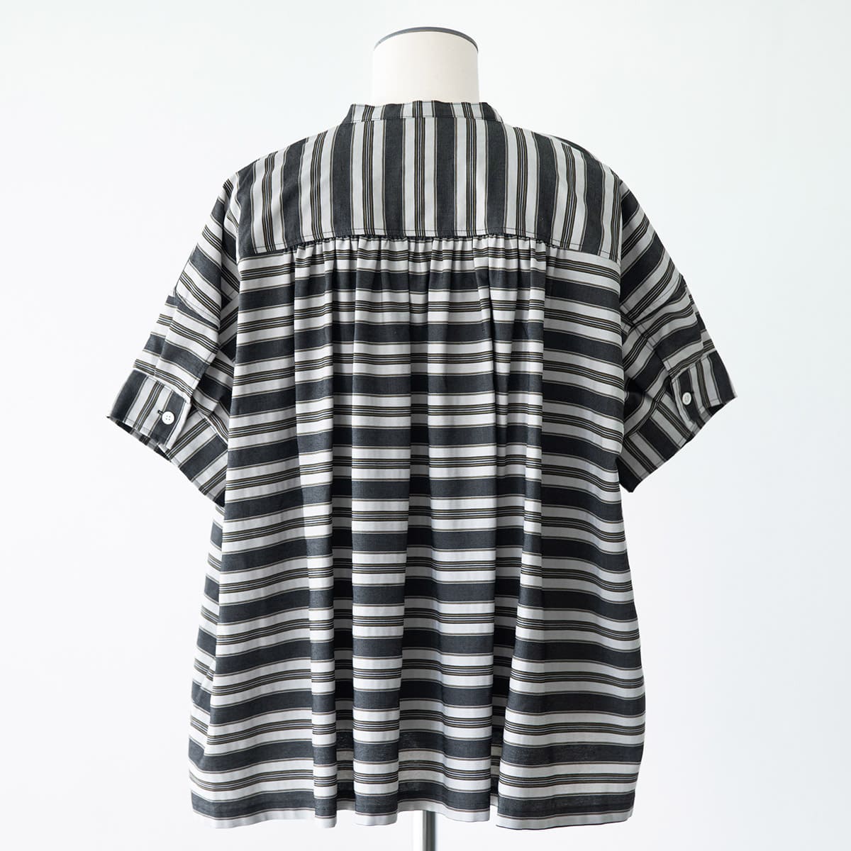 イタリアンボーダー半袖ブラウス(ブラック)/t.yamai paris