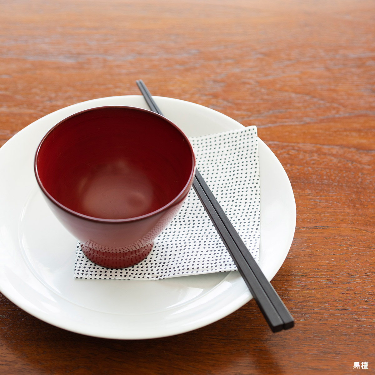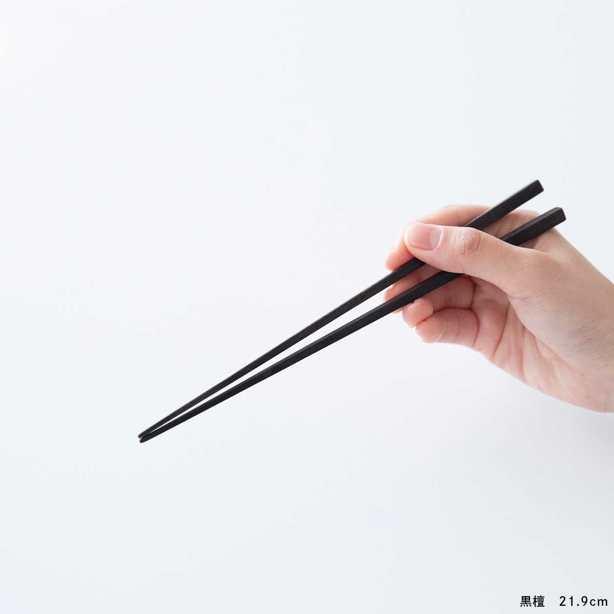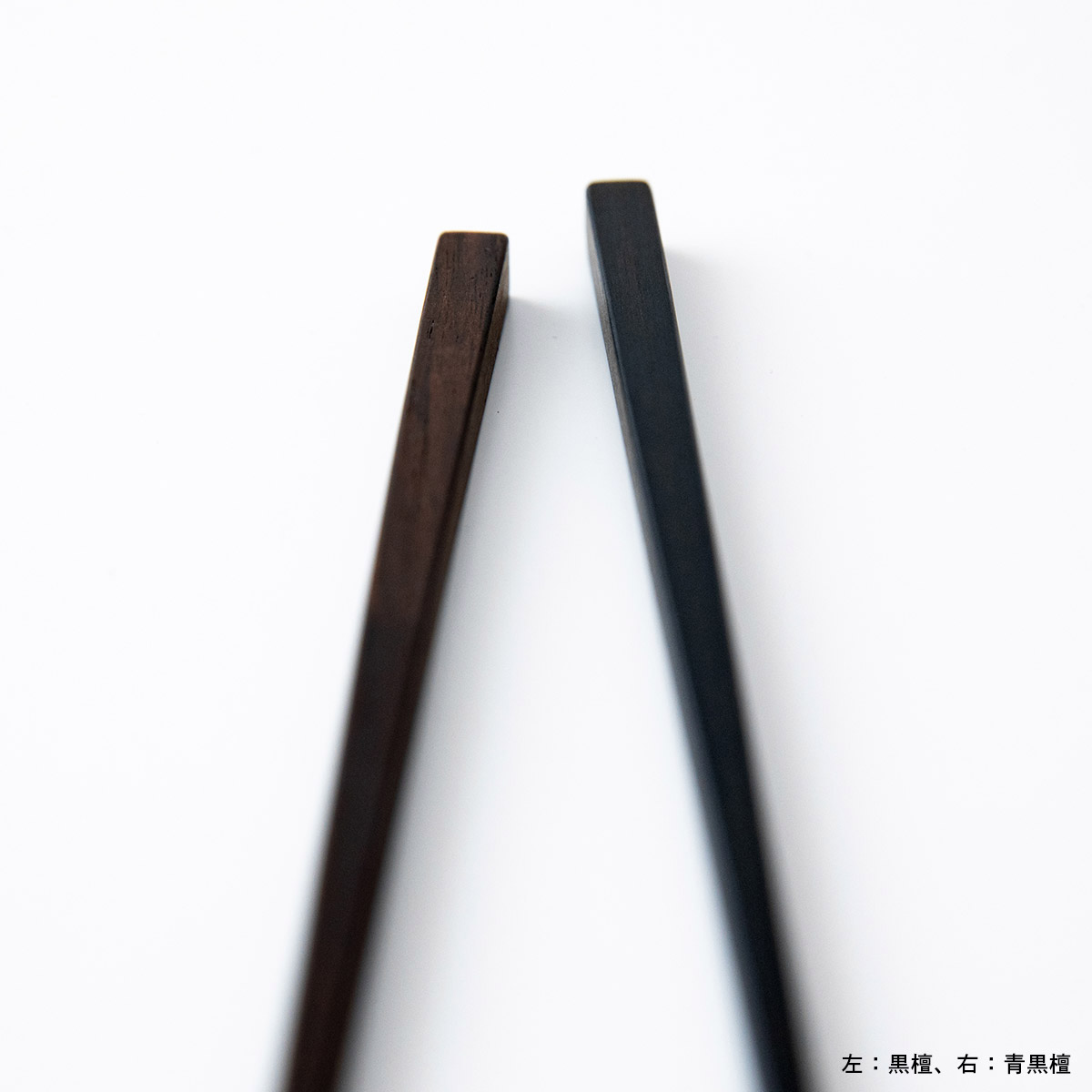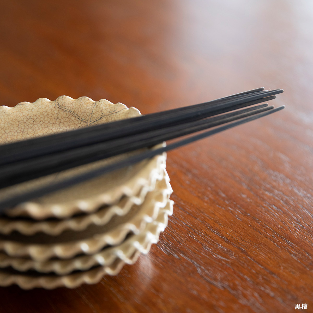 木工家・吉岡民男さんの手による黒檀の箸を、