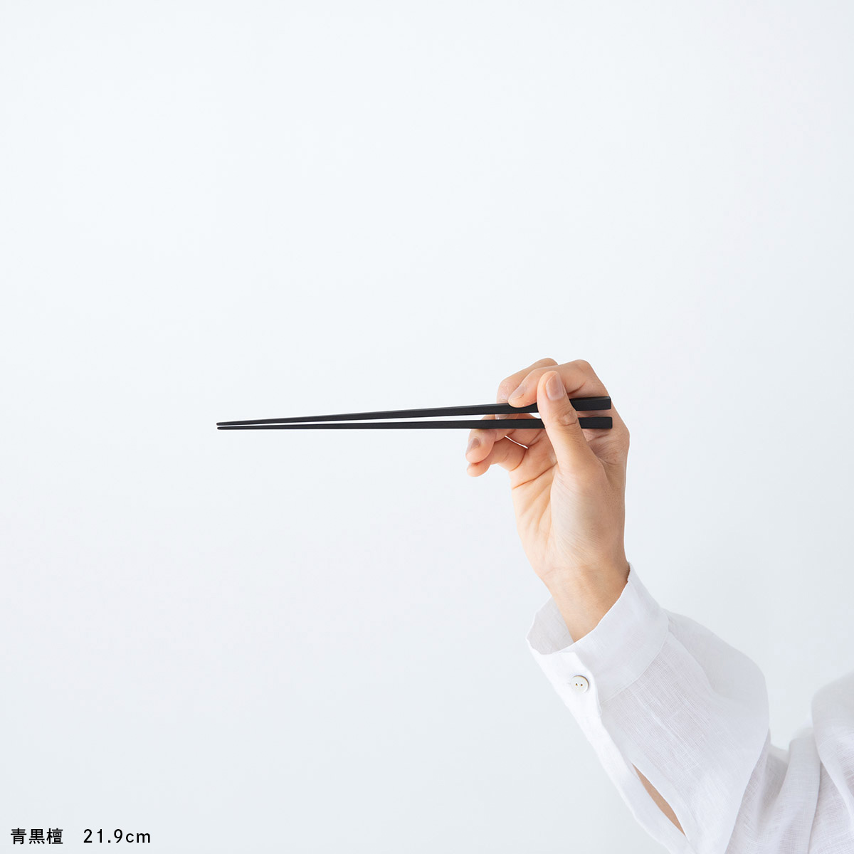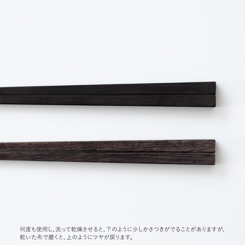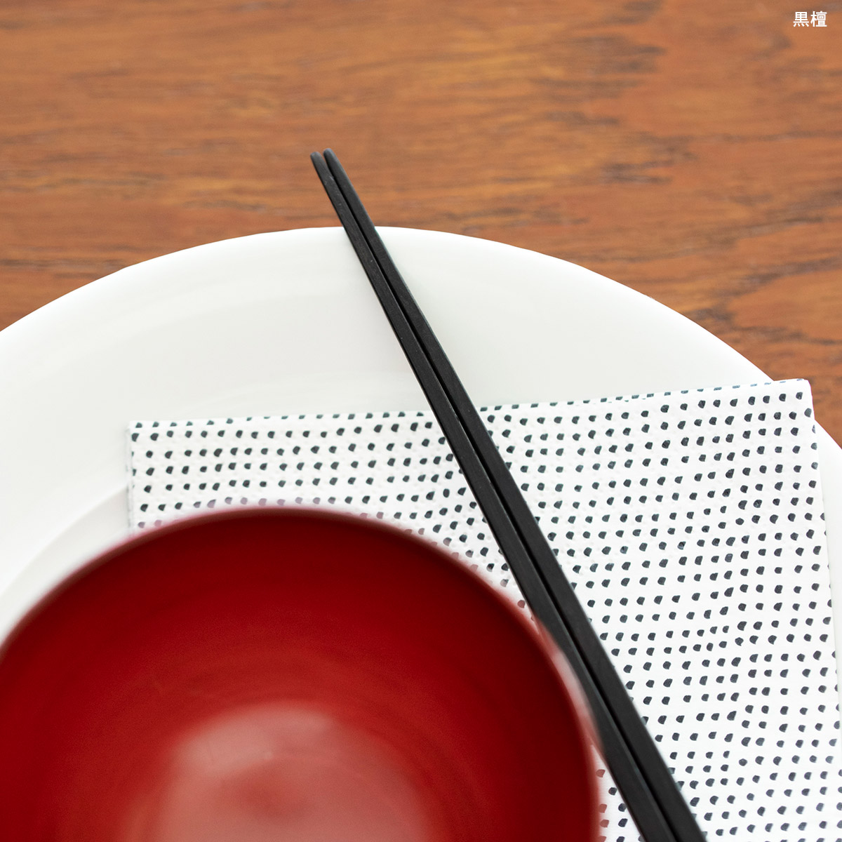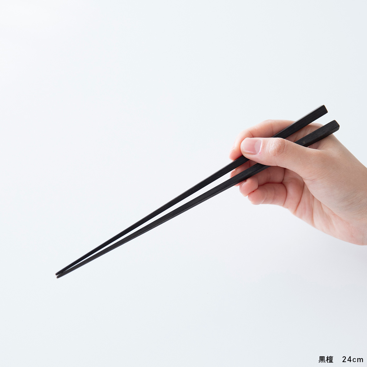 木工家・吉岡民男さんの手による黒檀の箸を、