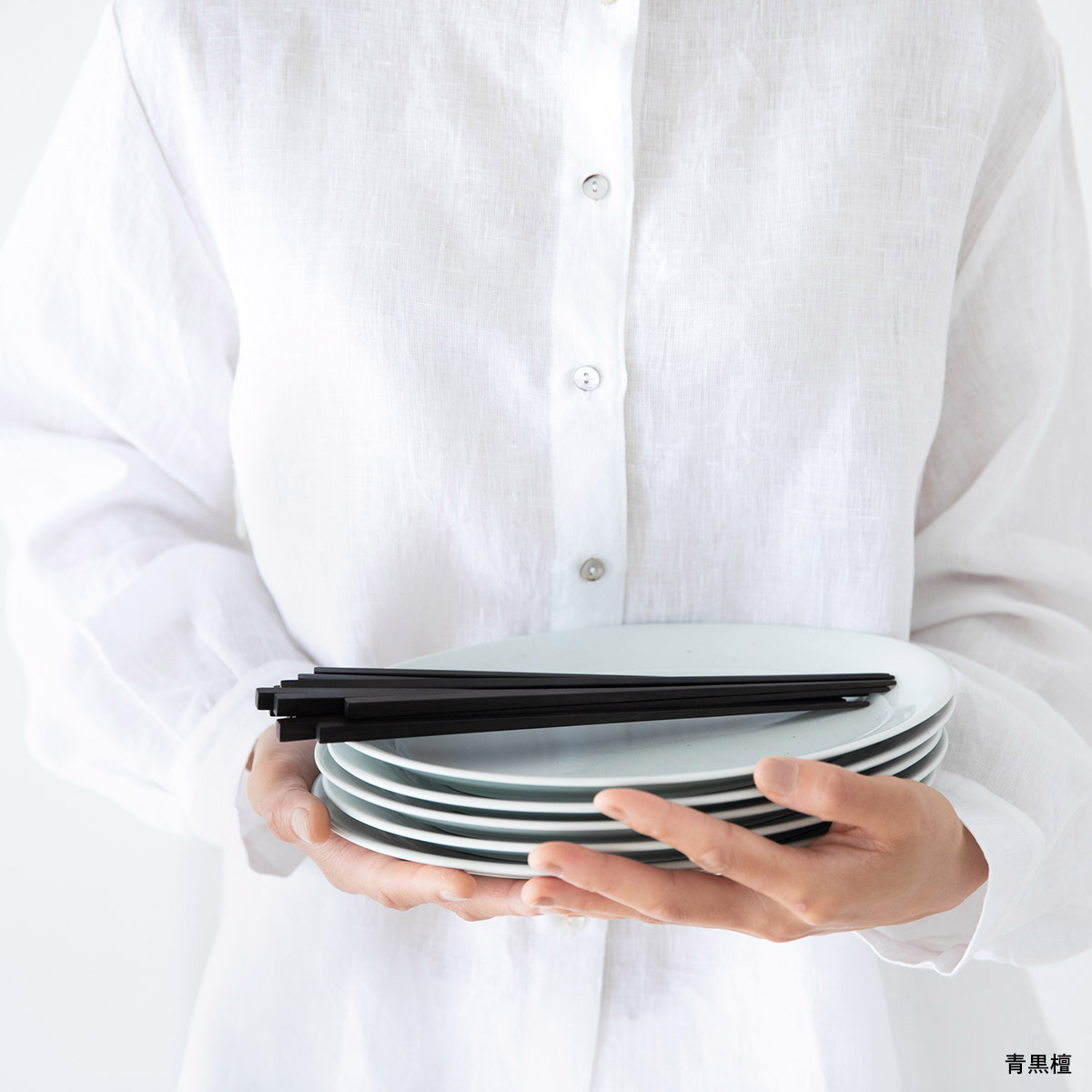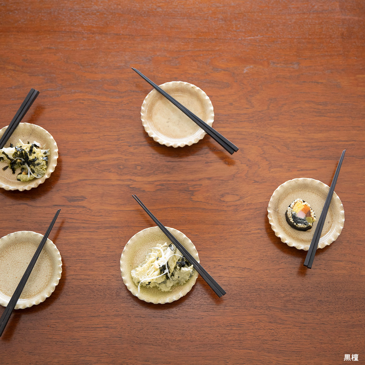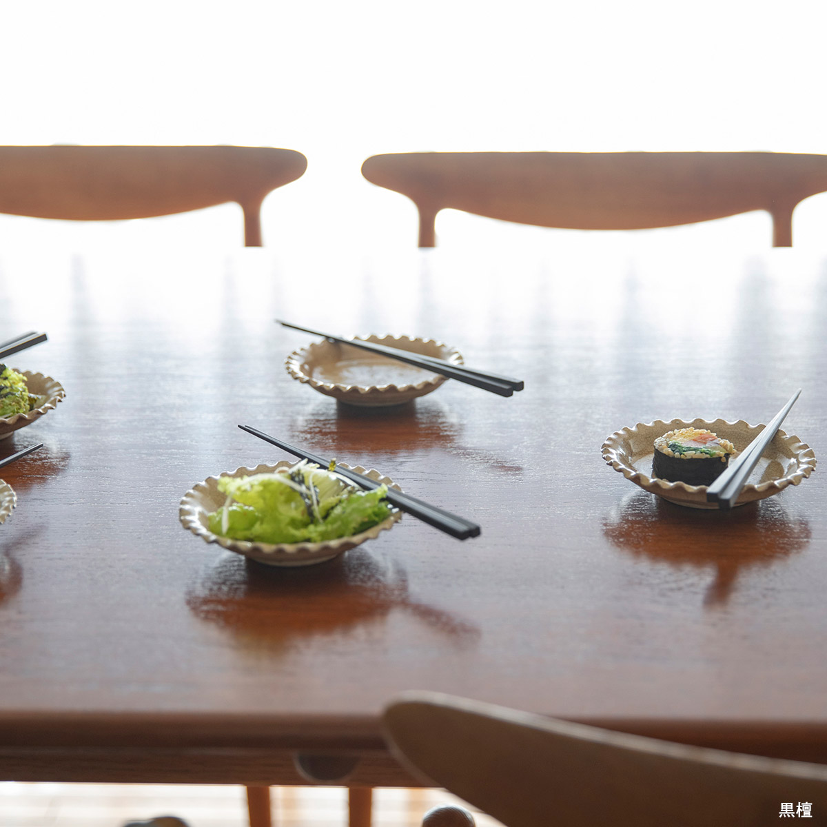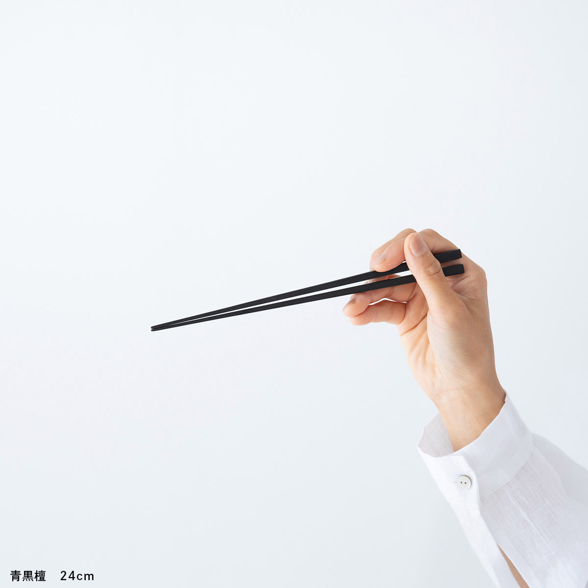 木工家・吉岡民男さんの手による黒檀の箸を、