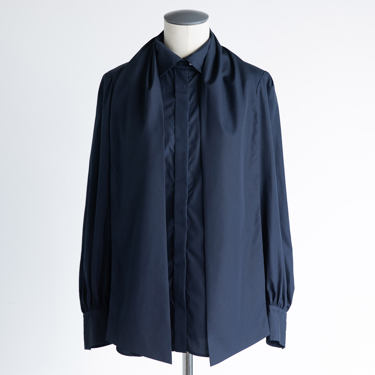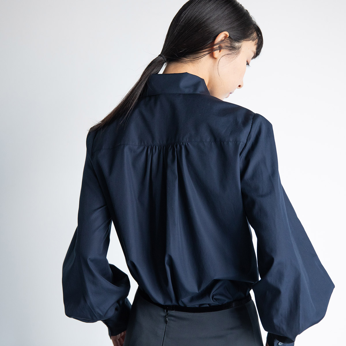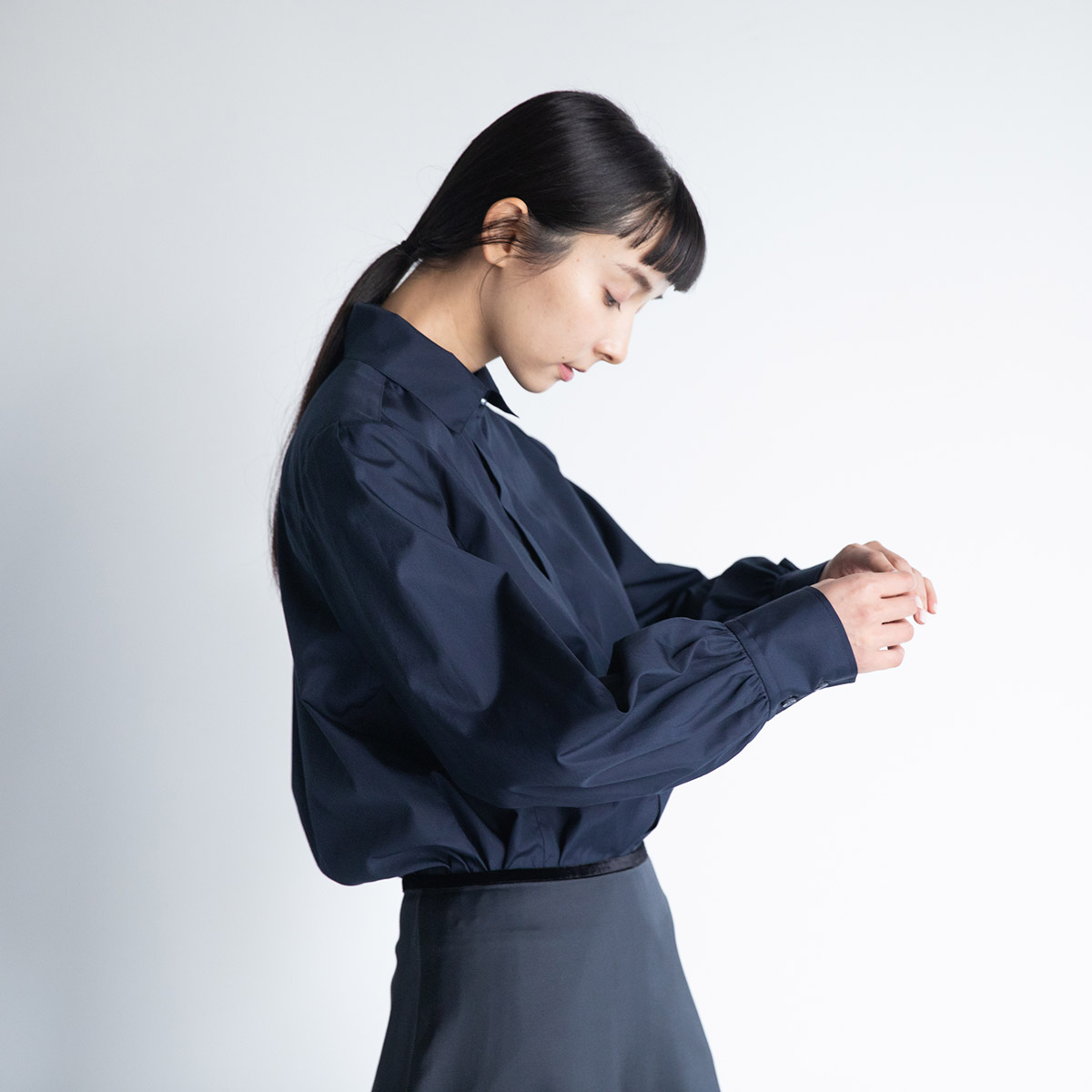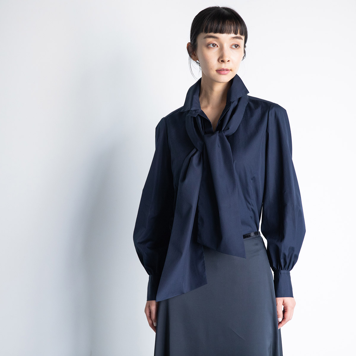 ボウ付きギャザーシャツ(ネイビー)/L'UNE
