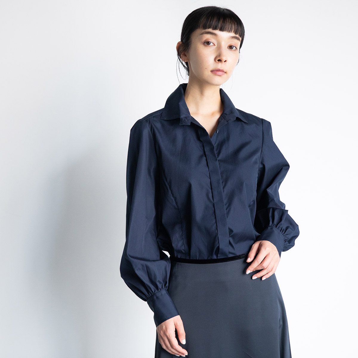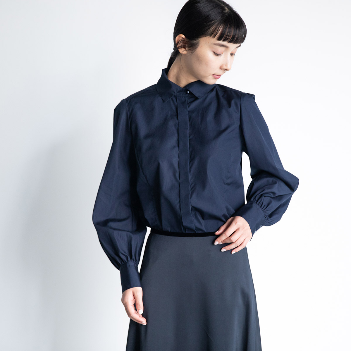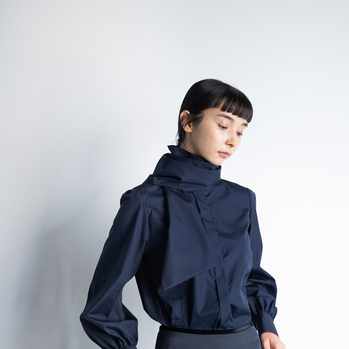 ボウ付きギャザーシャツ(ネイビー)/L'UNE