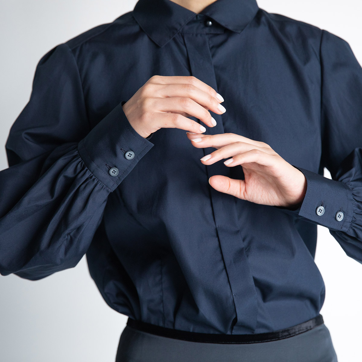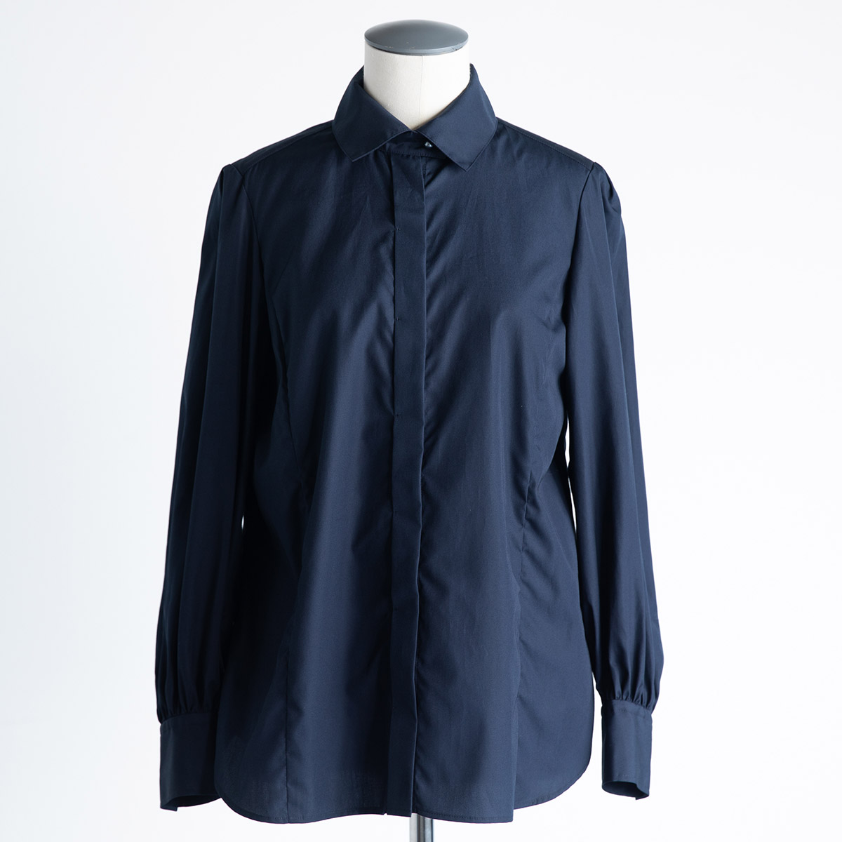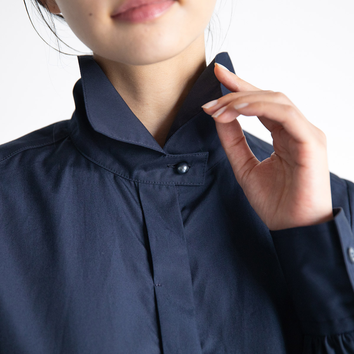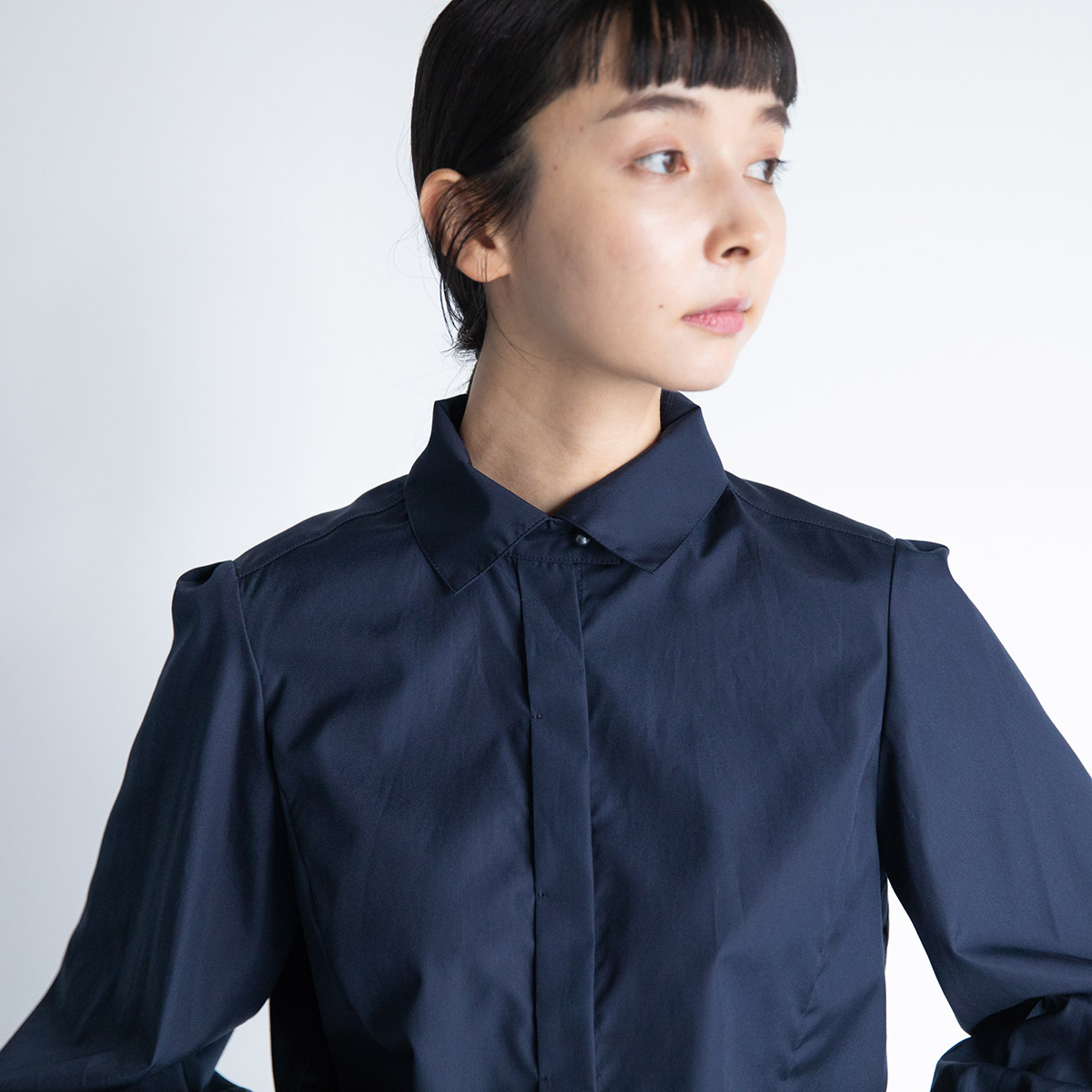 ボウ付きギャザーシャツ(ネイビー)/L'UNE