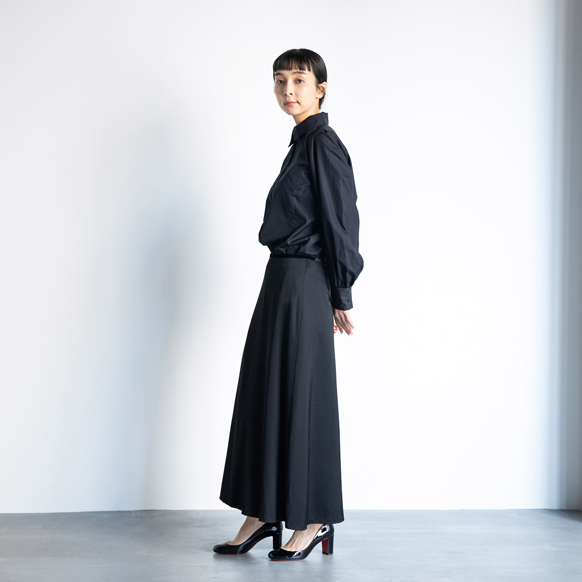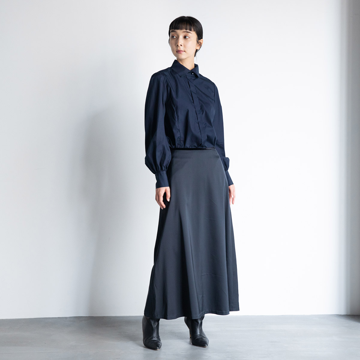セミフレアミモレスカート(ネイビー)/L'UNE
