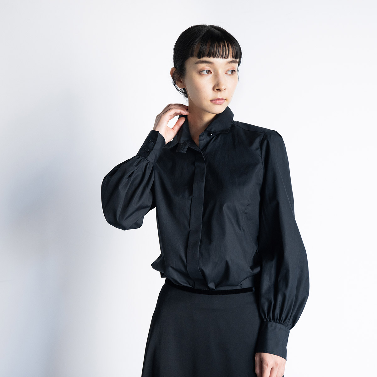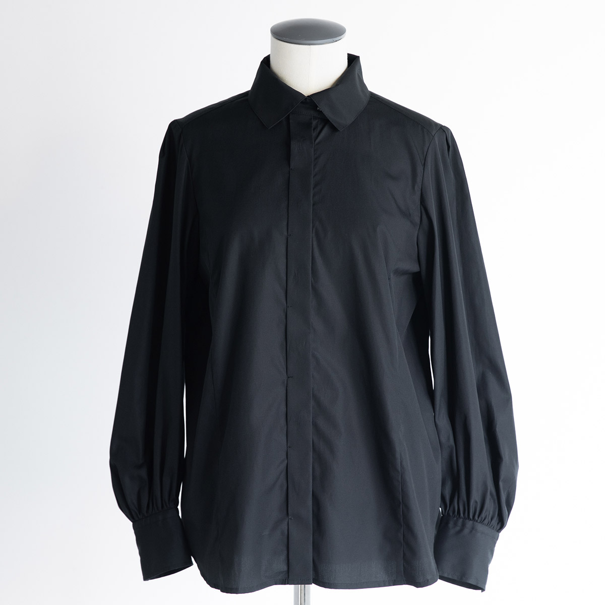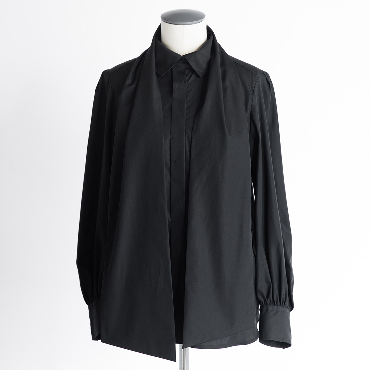 ボウ付きギャザーシャツ(ブラック)/L'UNE