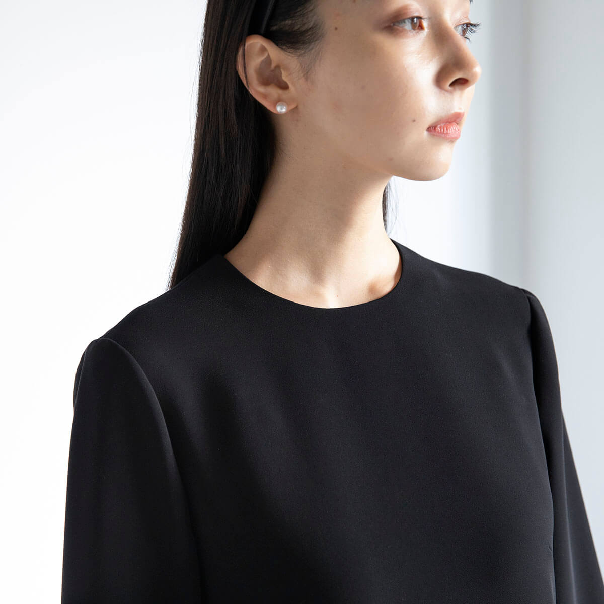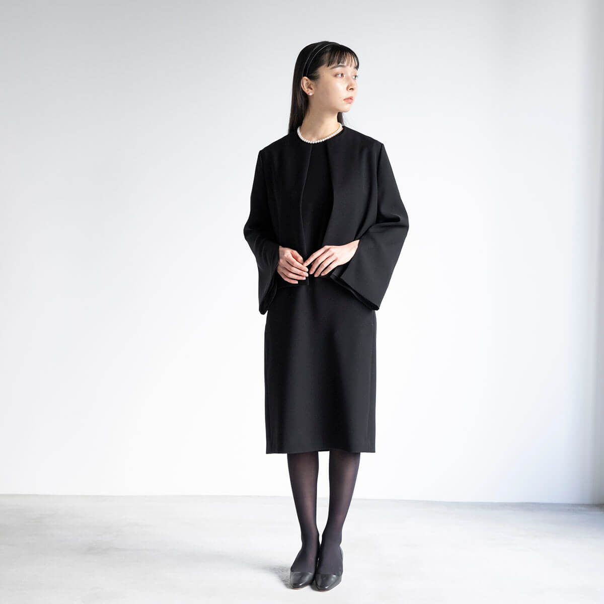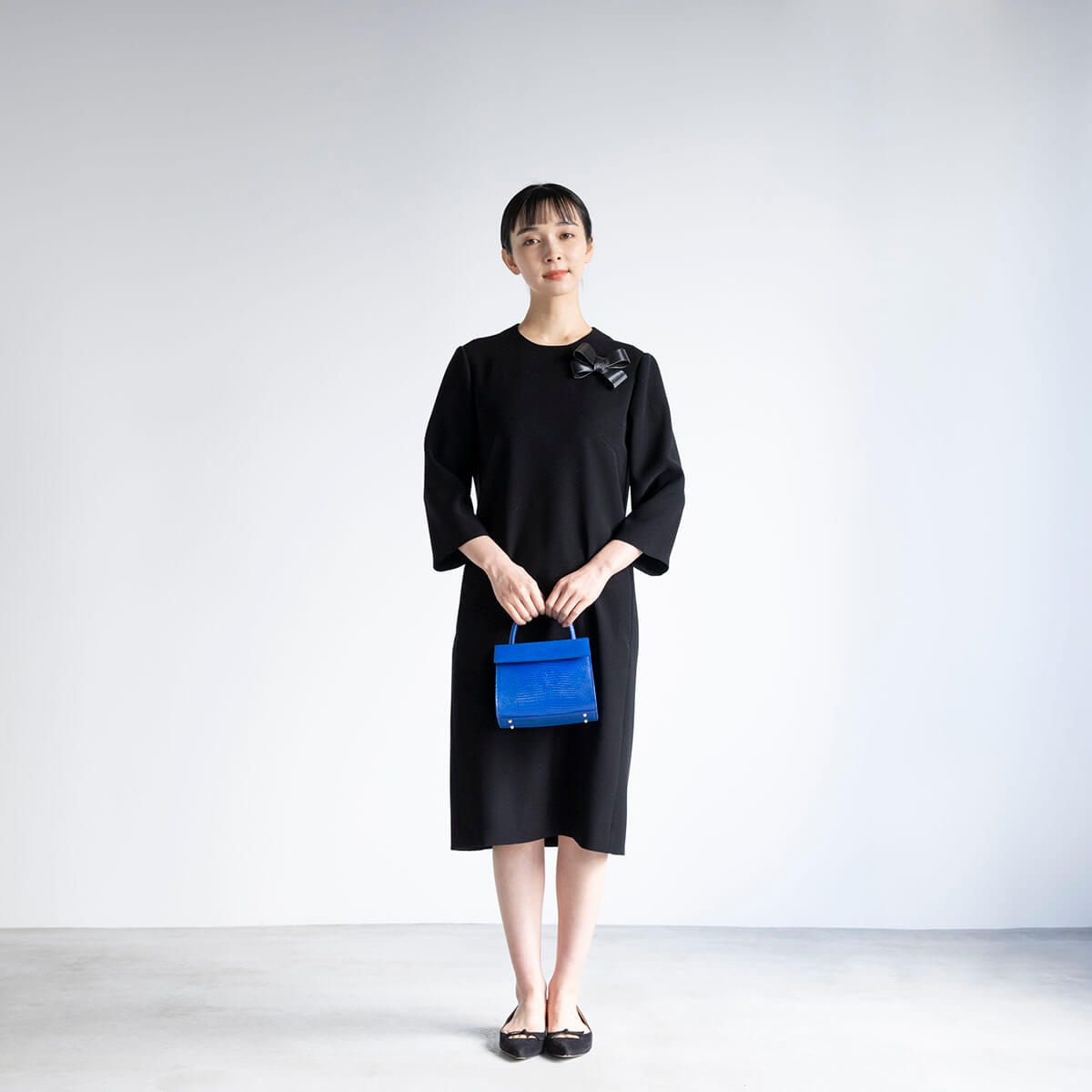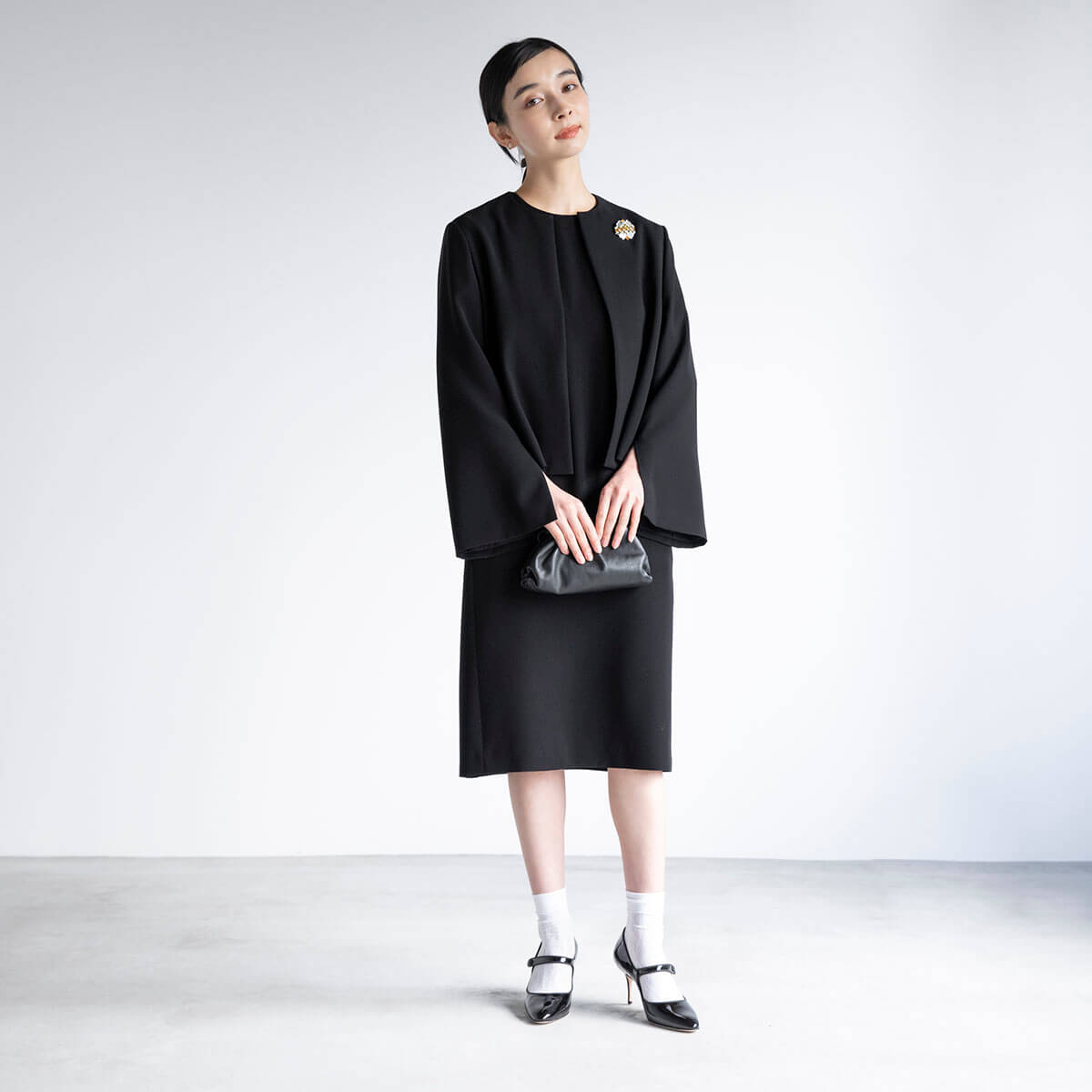 バッグやブローチなど小物使いで晴れの日の装いにも。