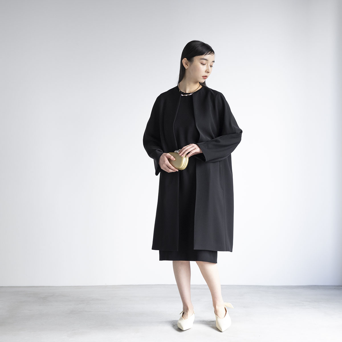 ノーカラー スリットスリーブ ジャケット(ブラック・38)/saqui