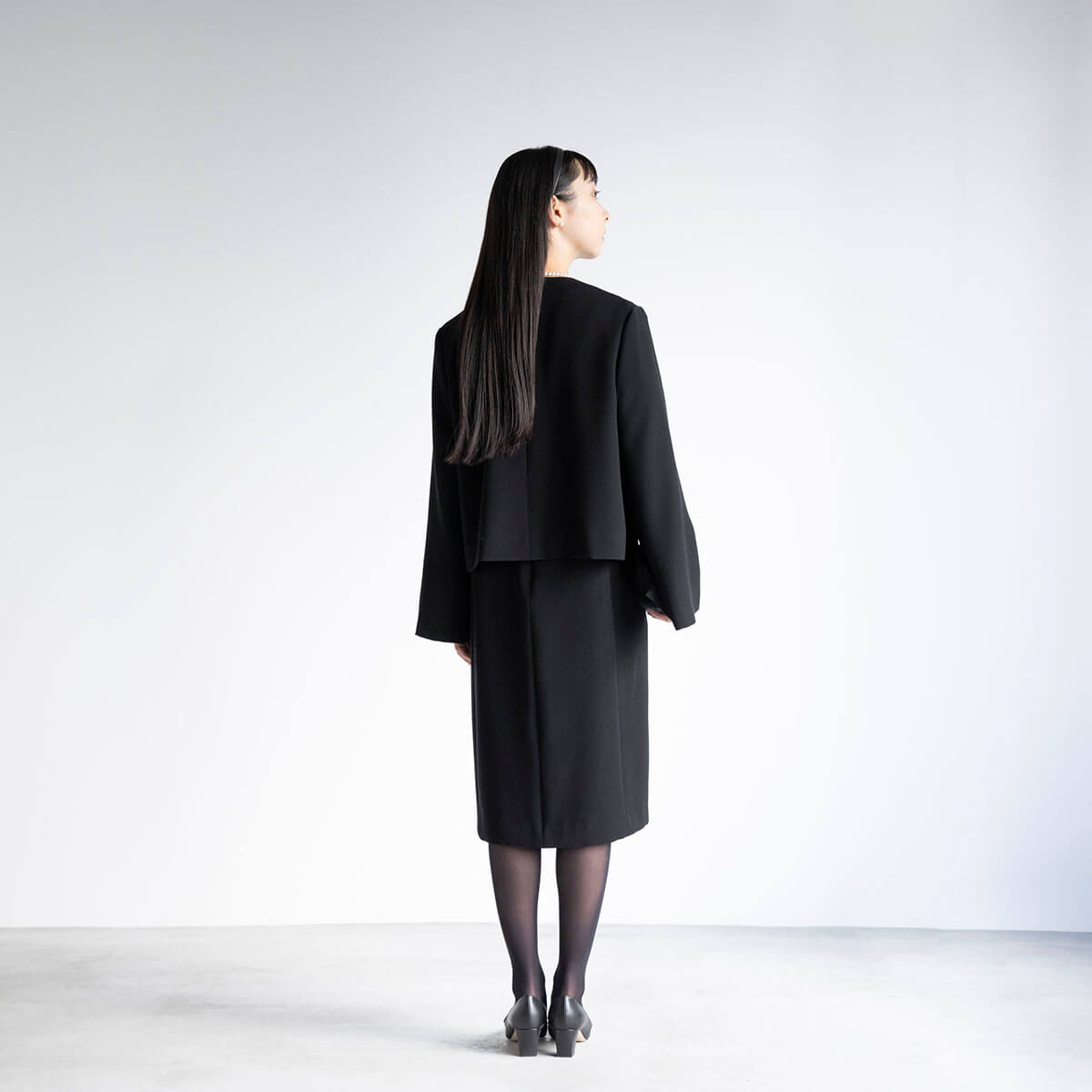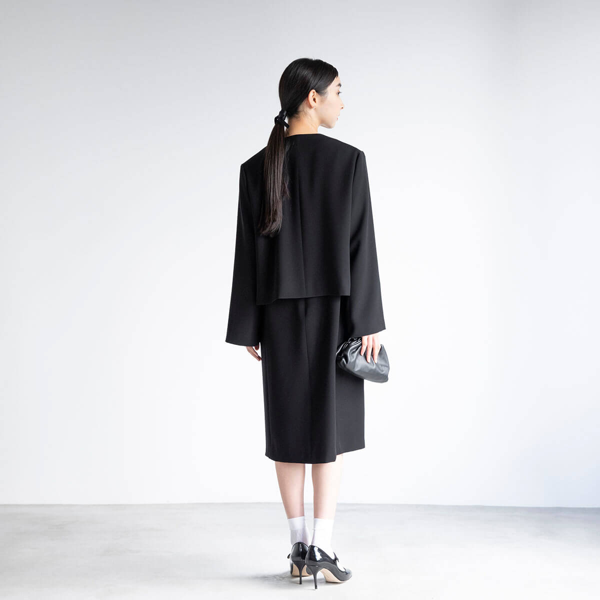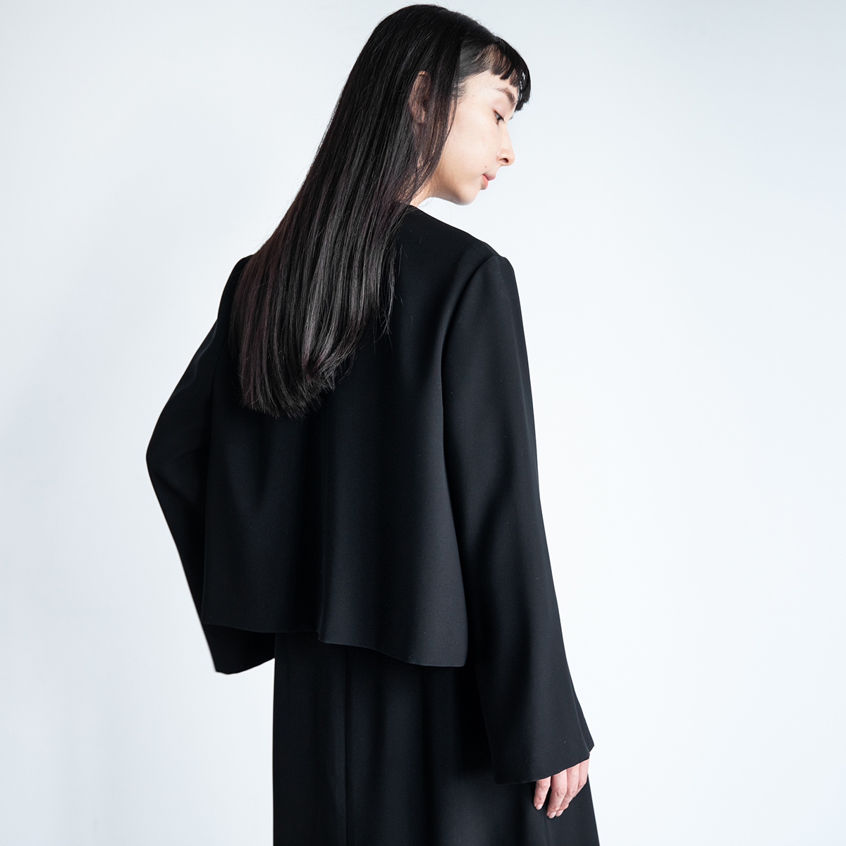 ノーカラー スリットスリーブ ジャケット(ブラック・38)/saqui