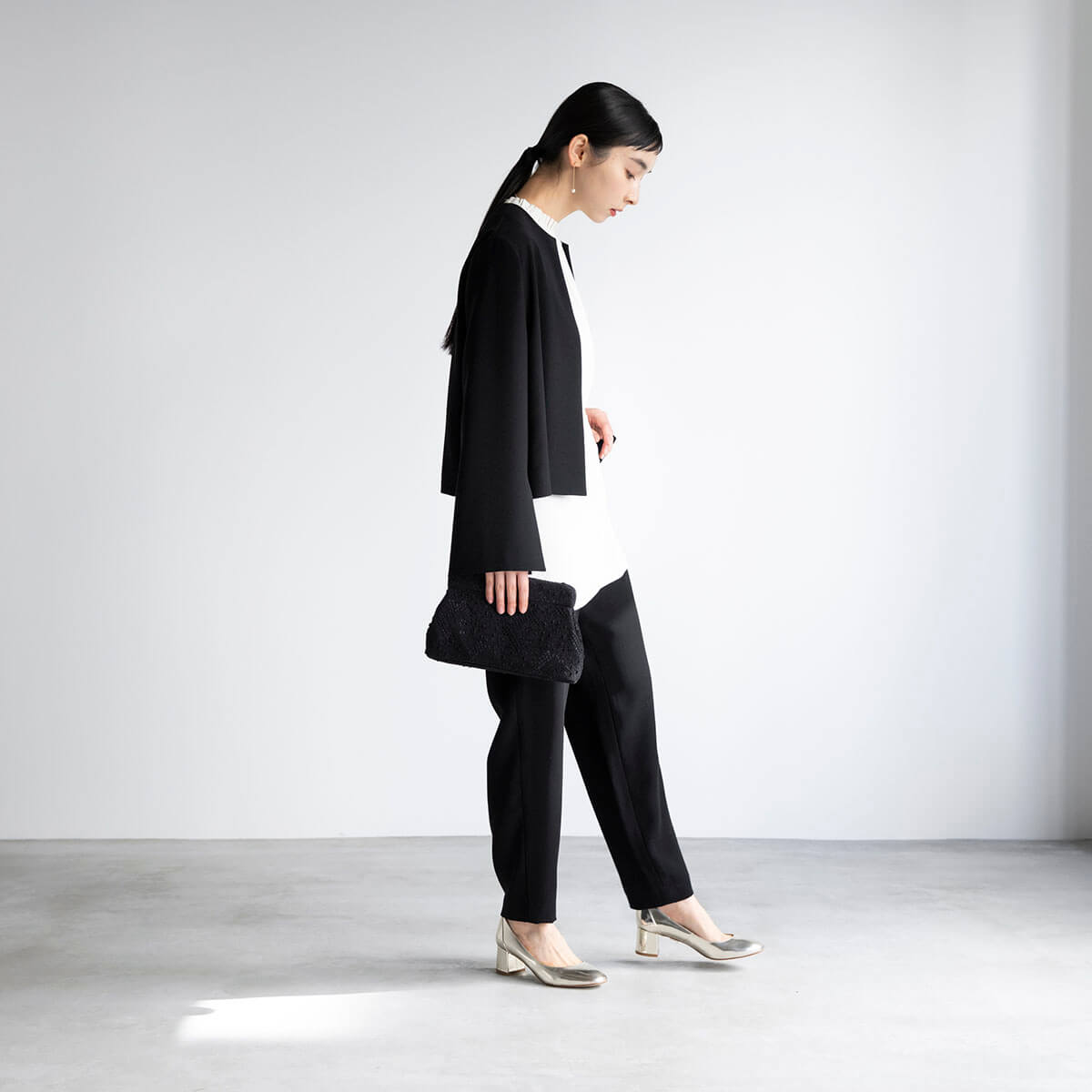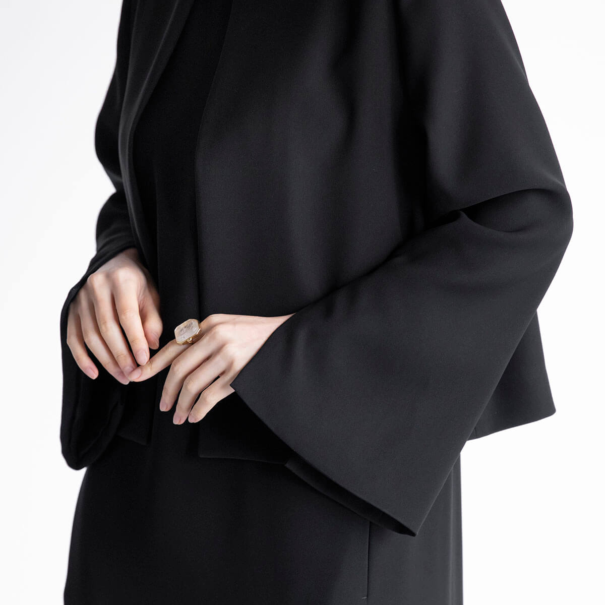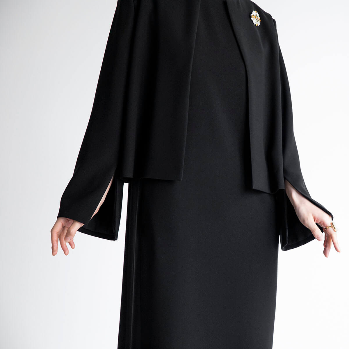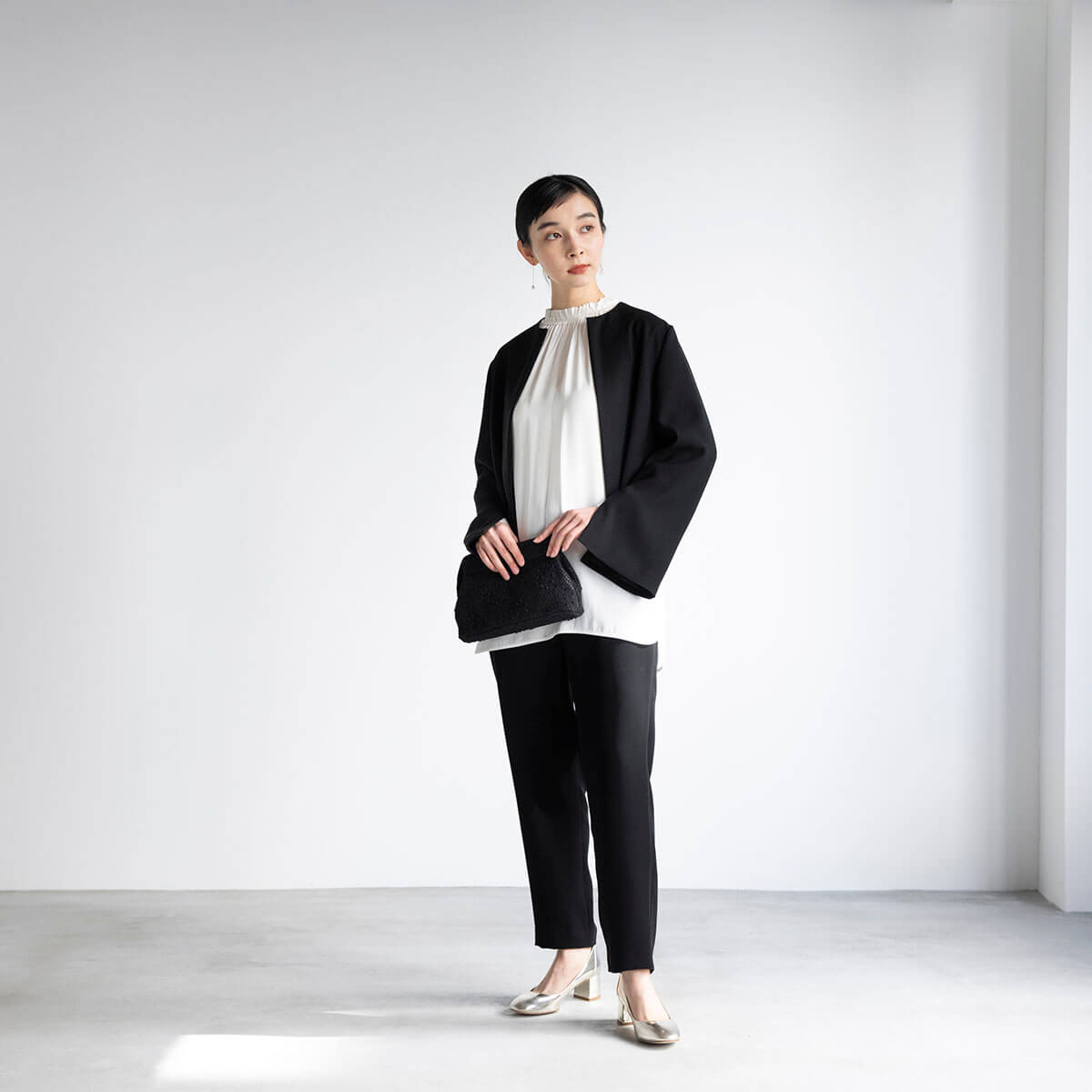 ノーカラー スリットスリーブ ジャケット(ブラック・38)/saqui