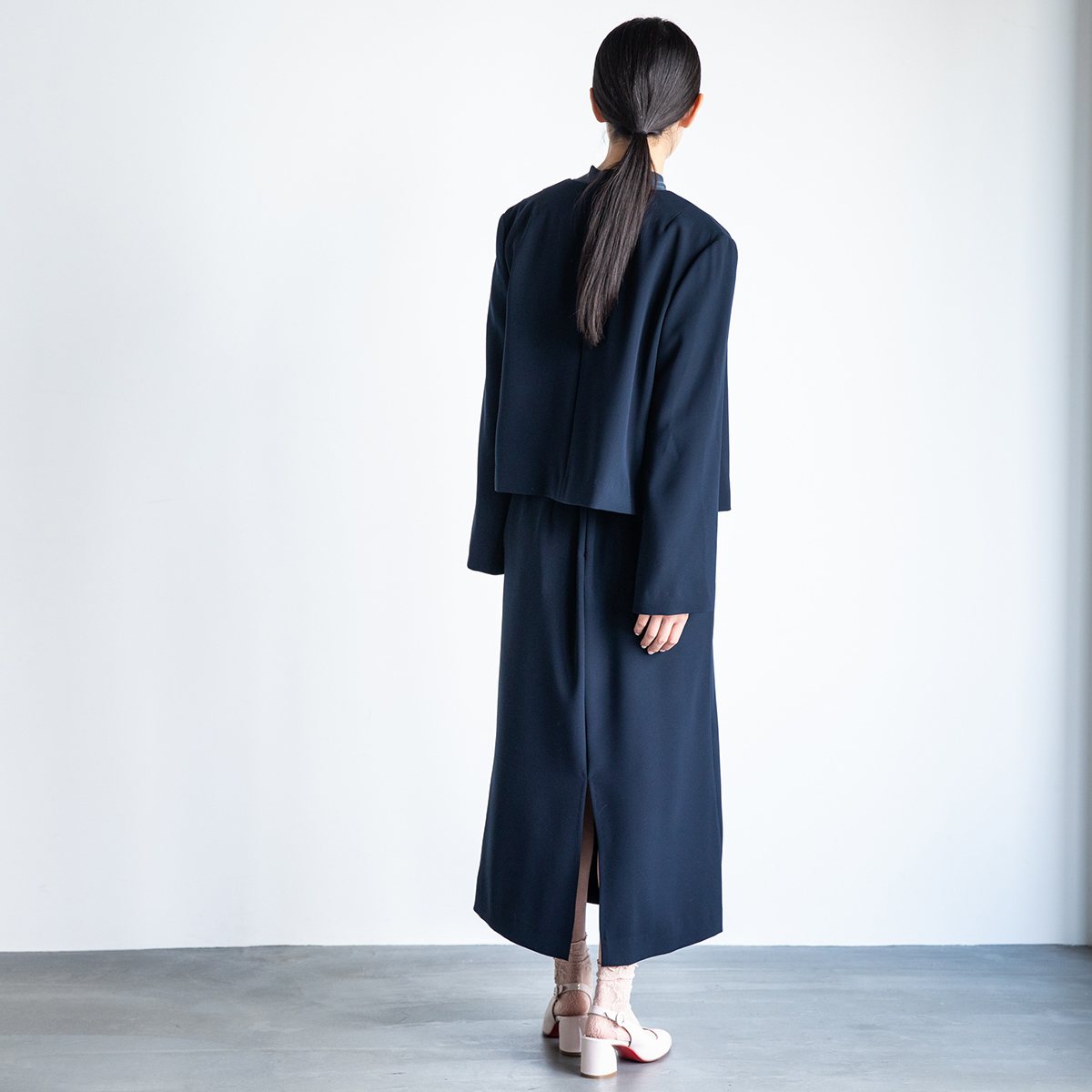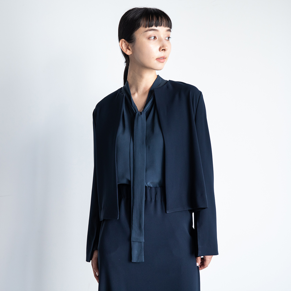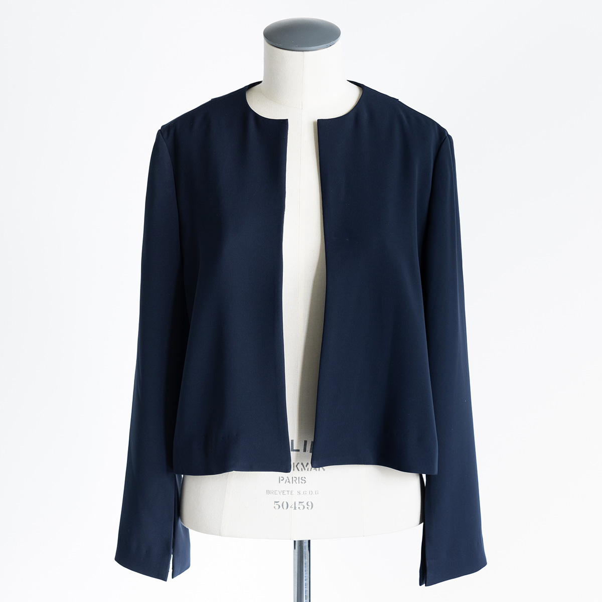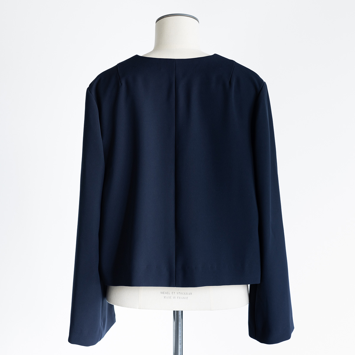ノーカラー スリットスリーブ ジャケット(ネイビー・38)/saqui