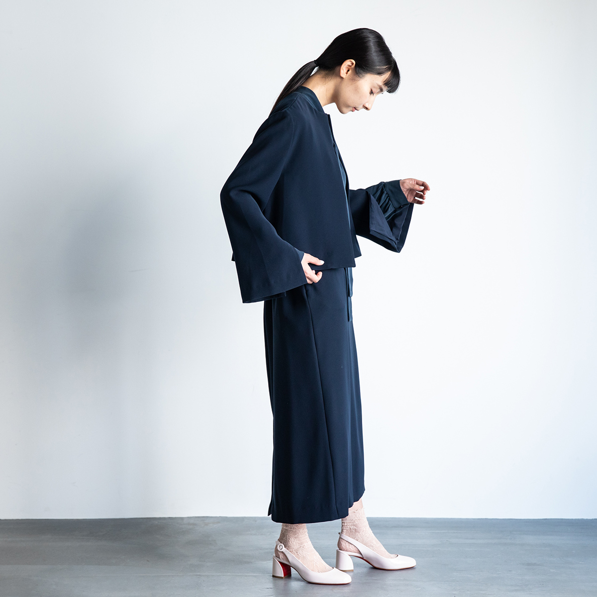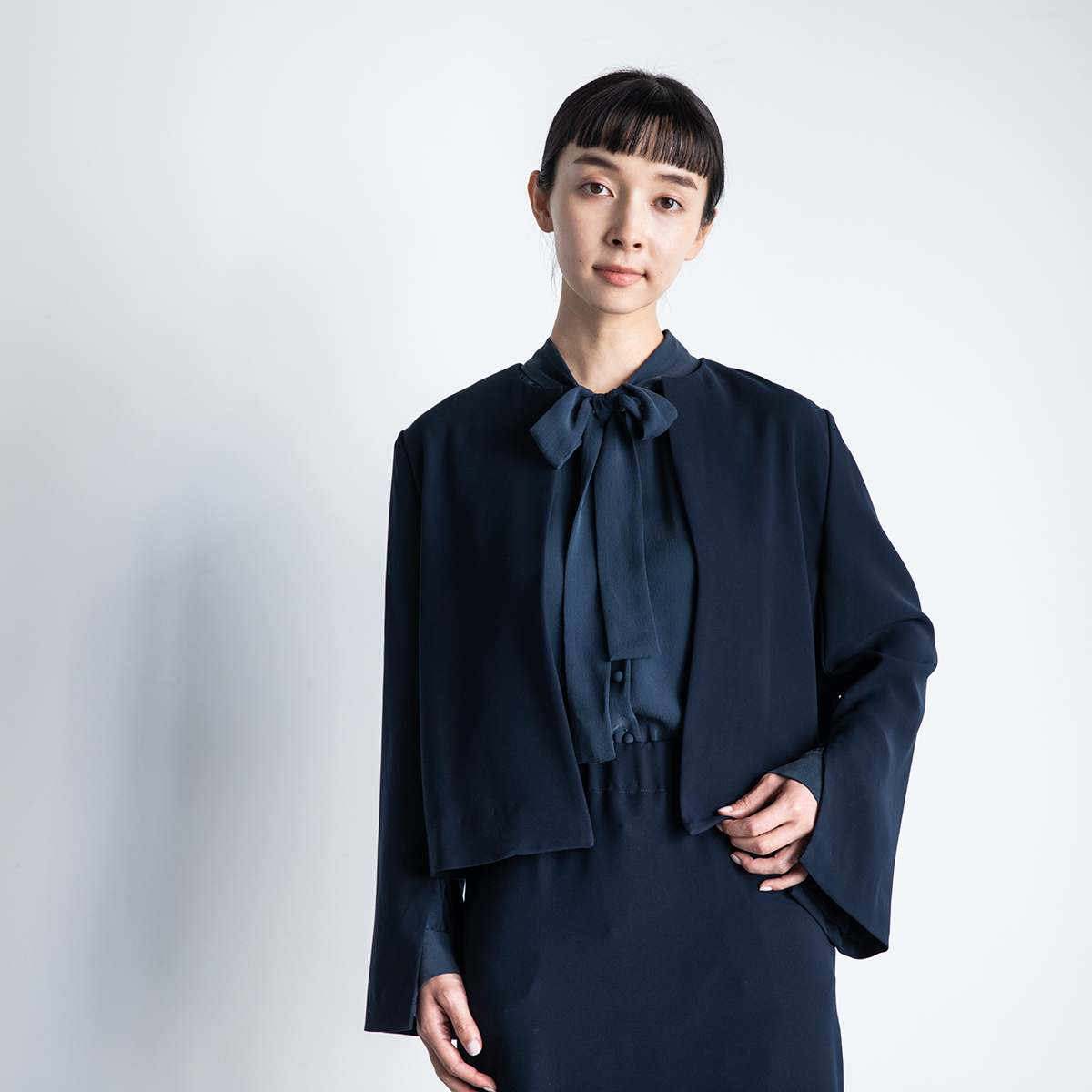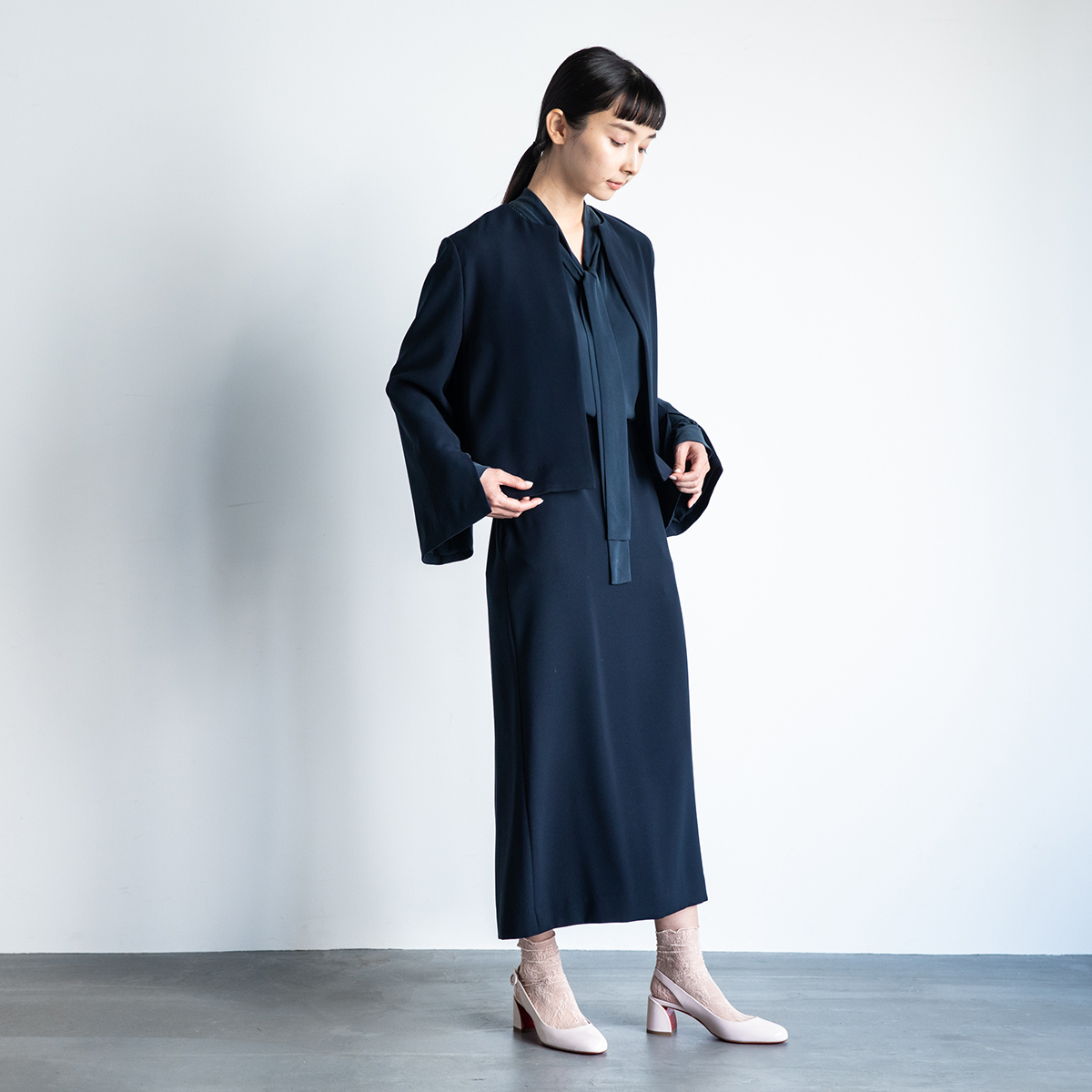 ノーカラー スリットスリーブ ジャケット(ネイビー・38)/saqui