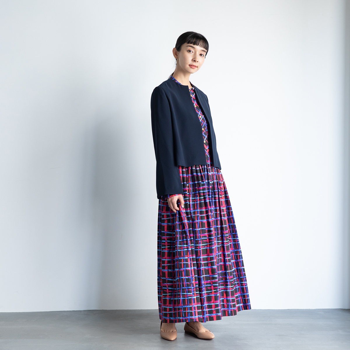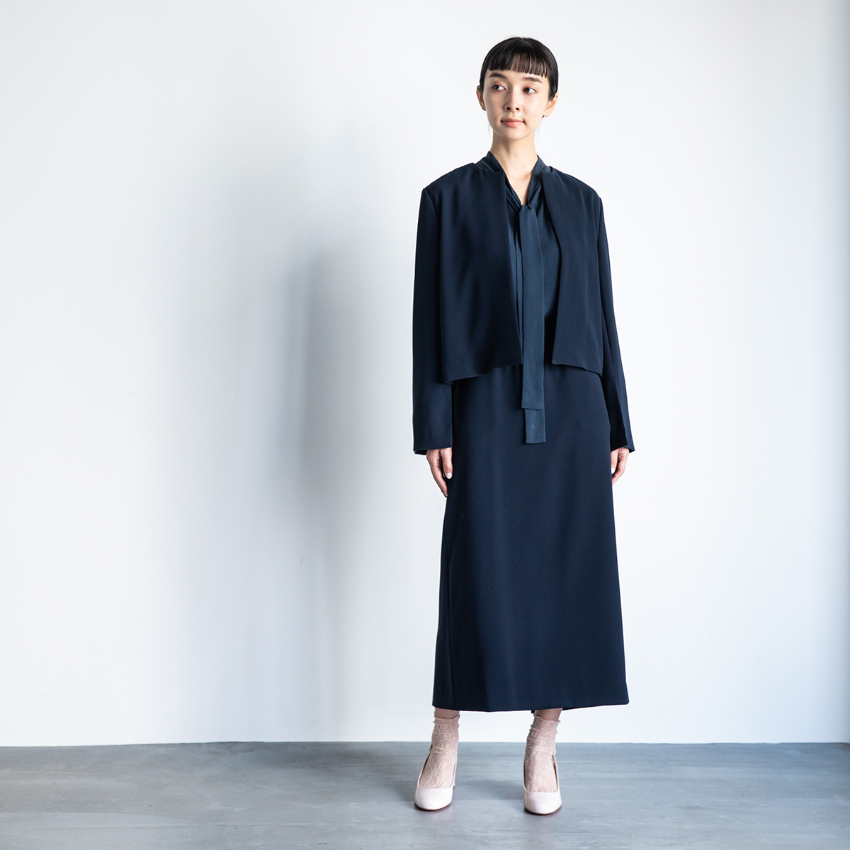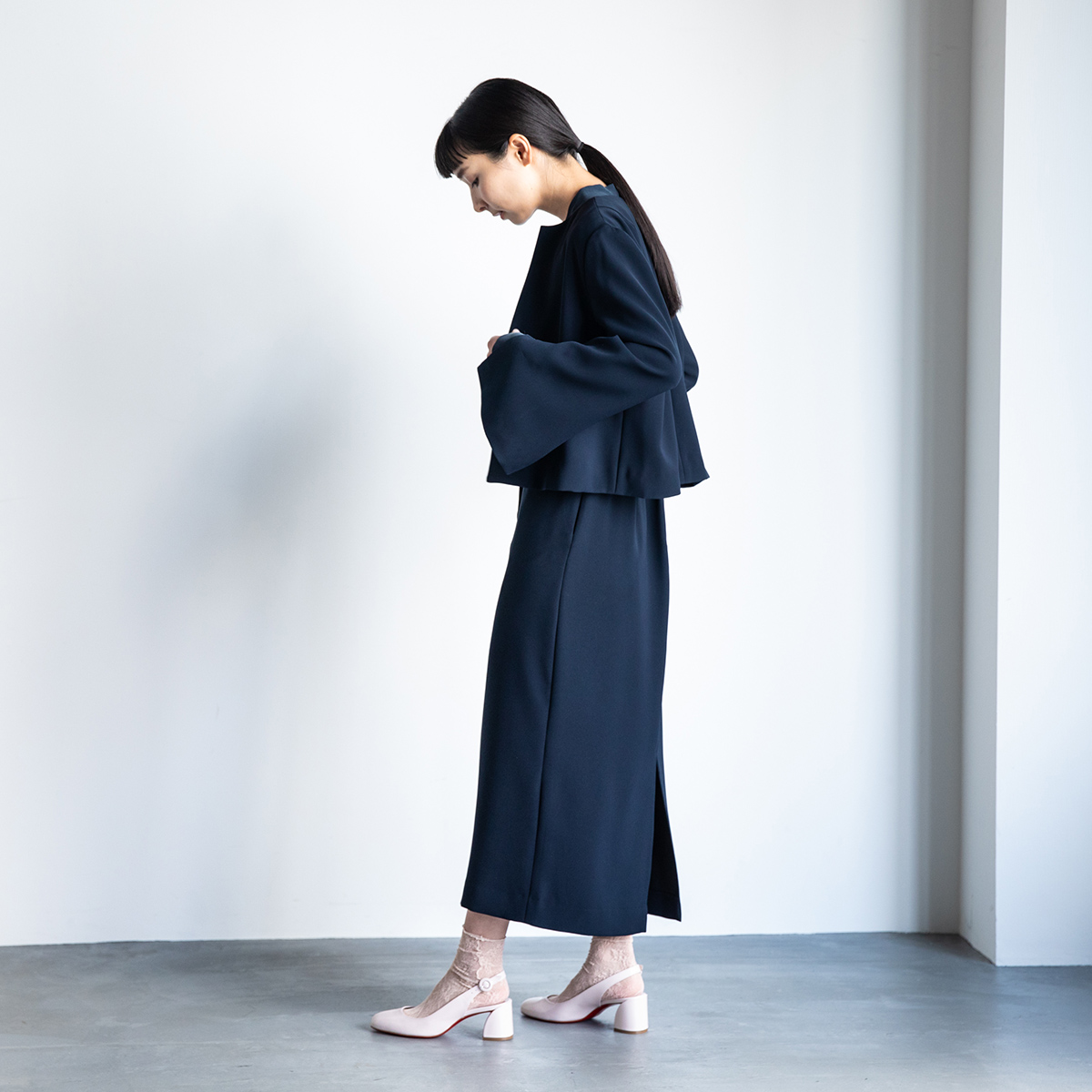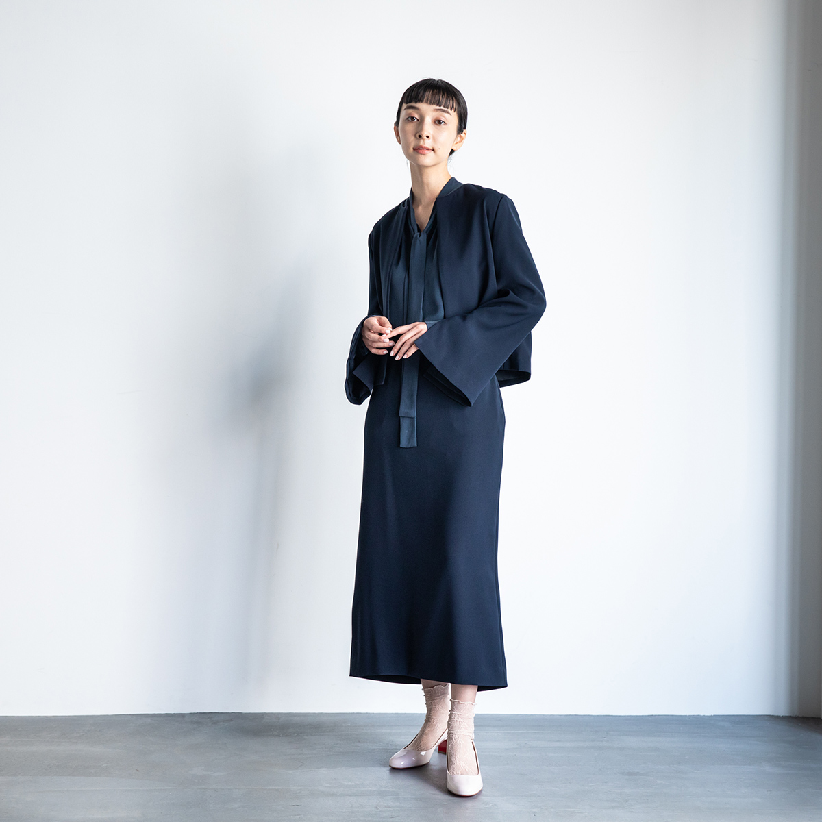 ノーカラー スリットスリーブ ジャケット(ネイビー・38)/saqui