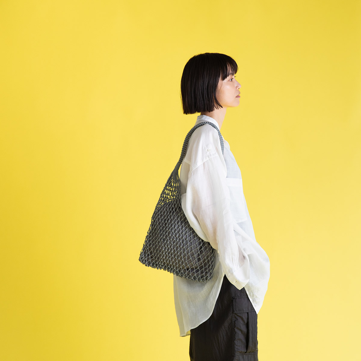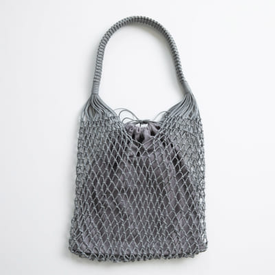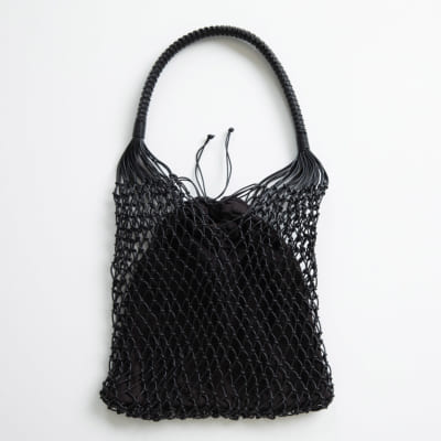 編んでいるというレザーバッグ。