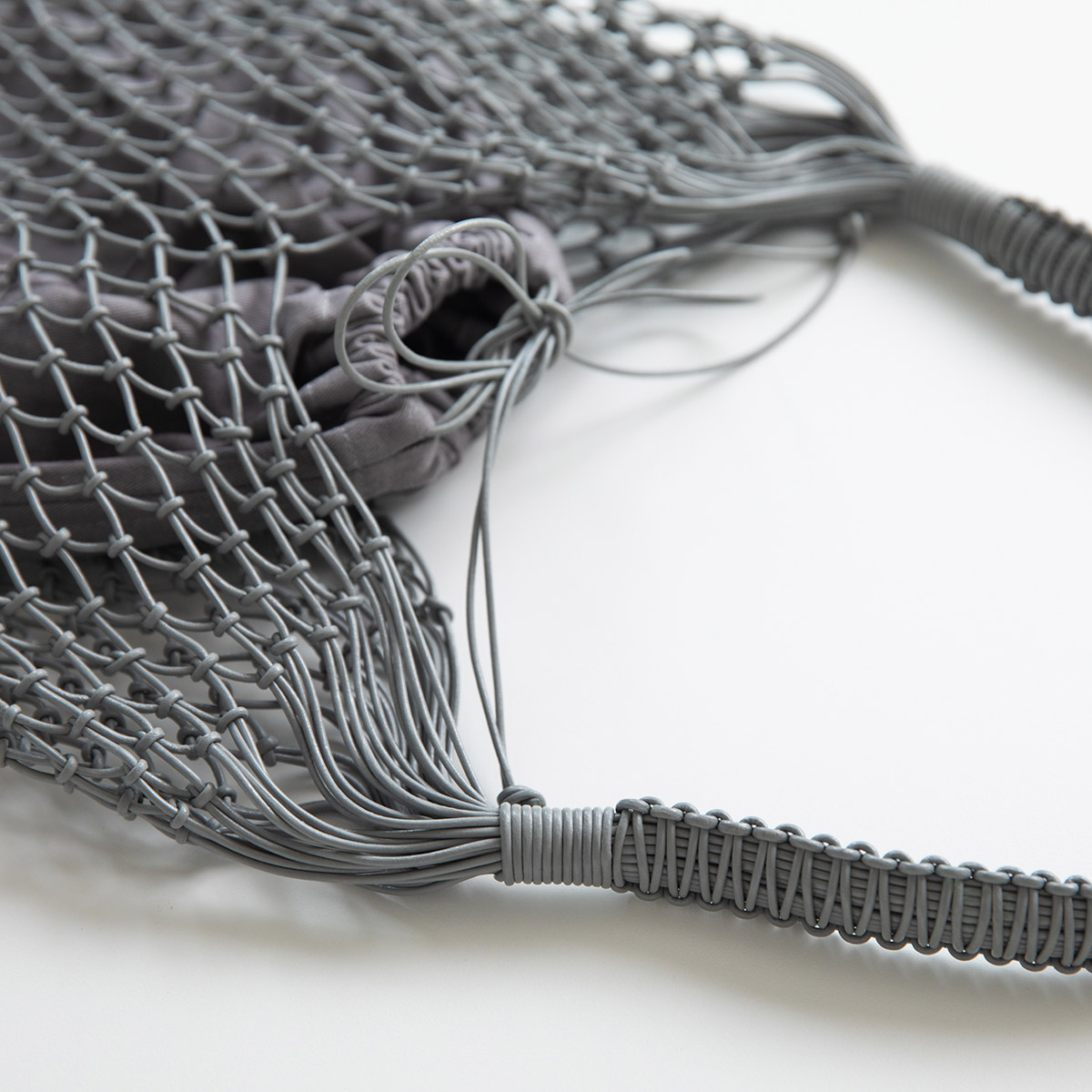 1点1点手で結び目を作った革の編みバッグは、