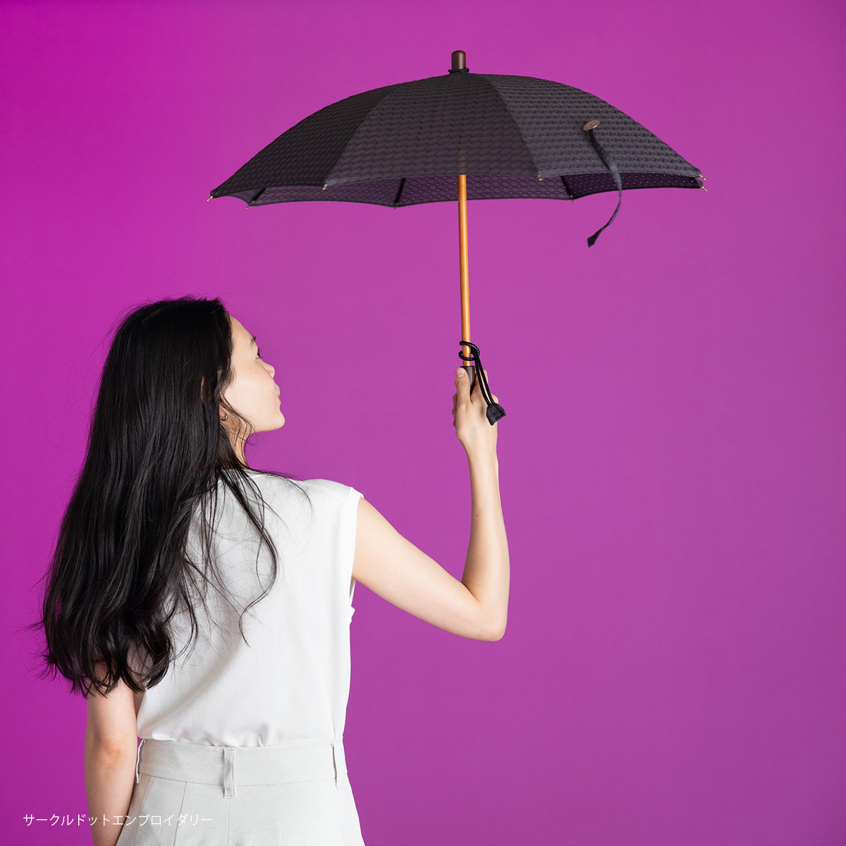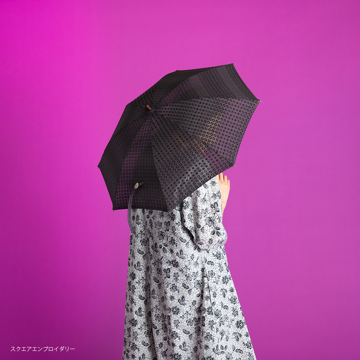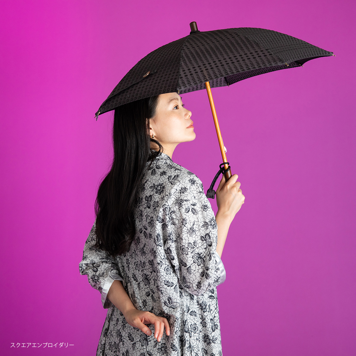 以前も販売したスクエア刺繍の陰影が美しい日傘。