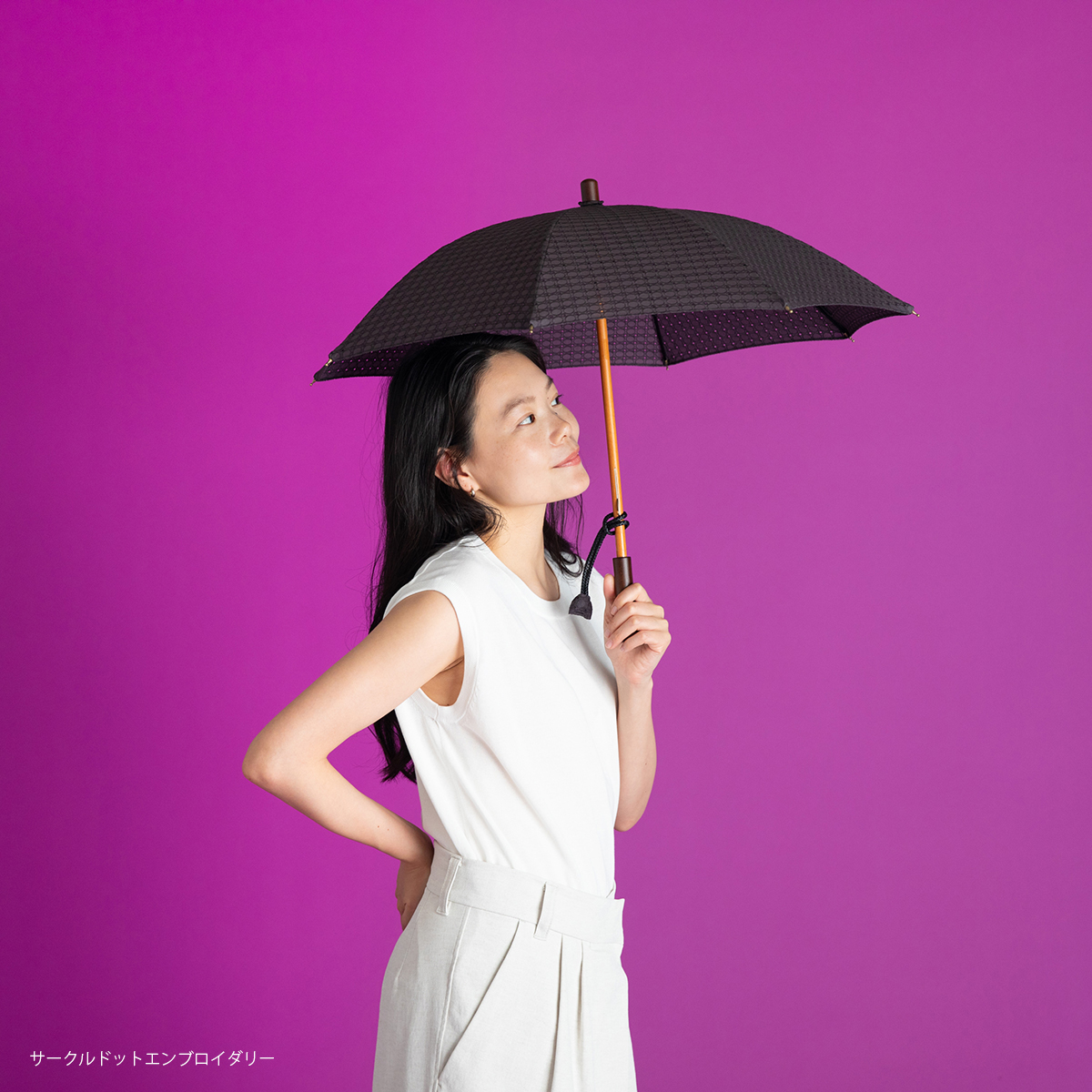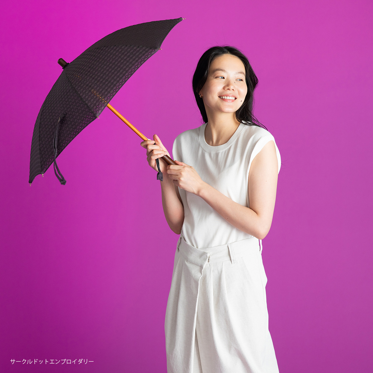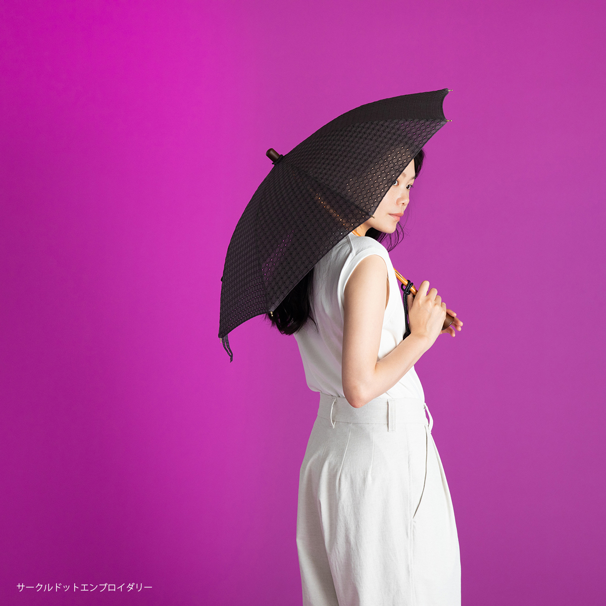 以前も販売したスクエア刺繍の陰影が美しい日傘。