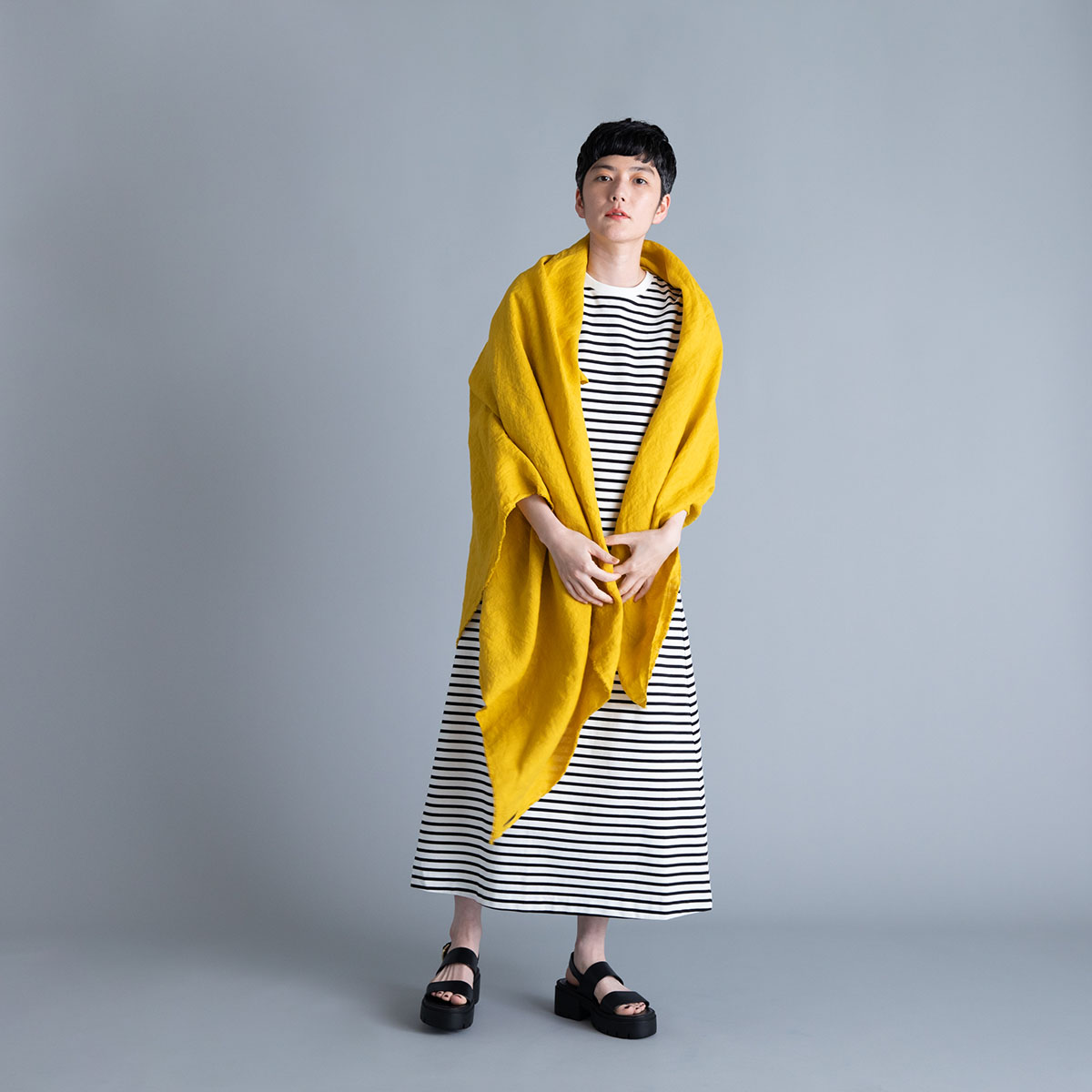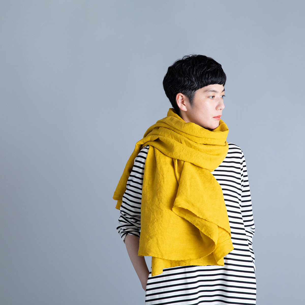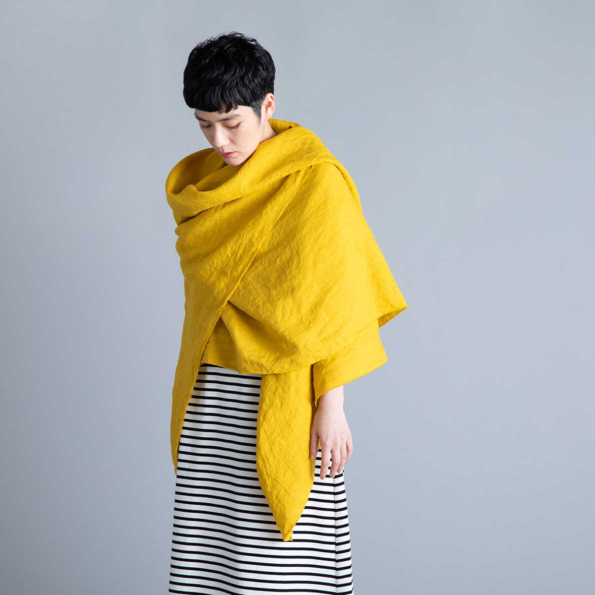 Wide Stole_Overdyed Irish Linen(Mustard)/Honnete