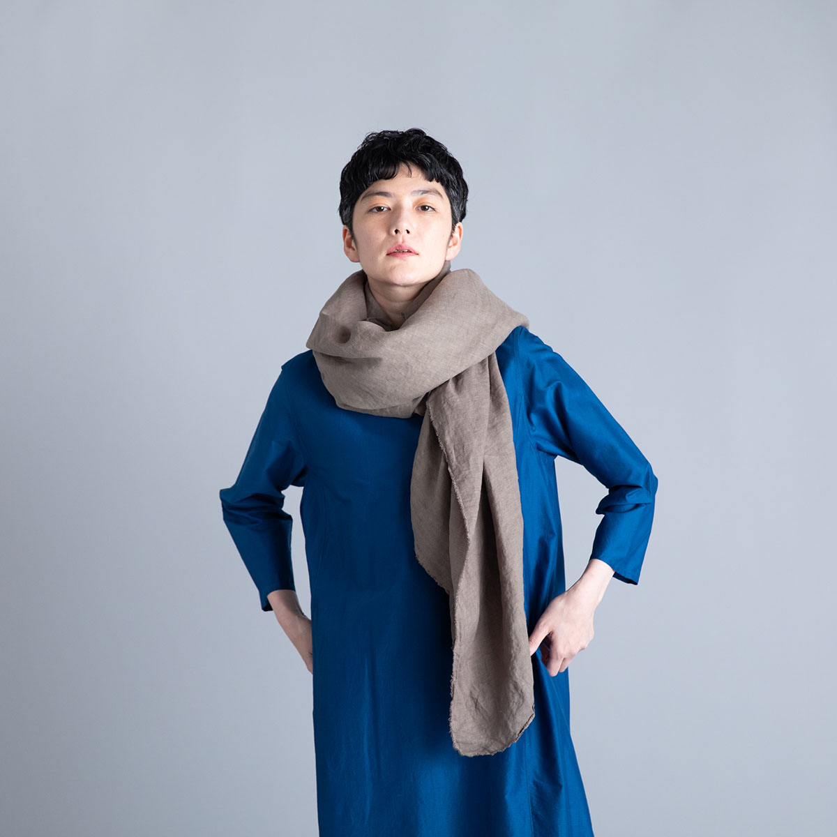 Wide Stole_Overdyed Irish Linen(Khaki)/Honnete