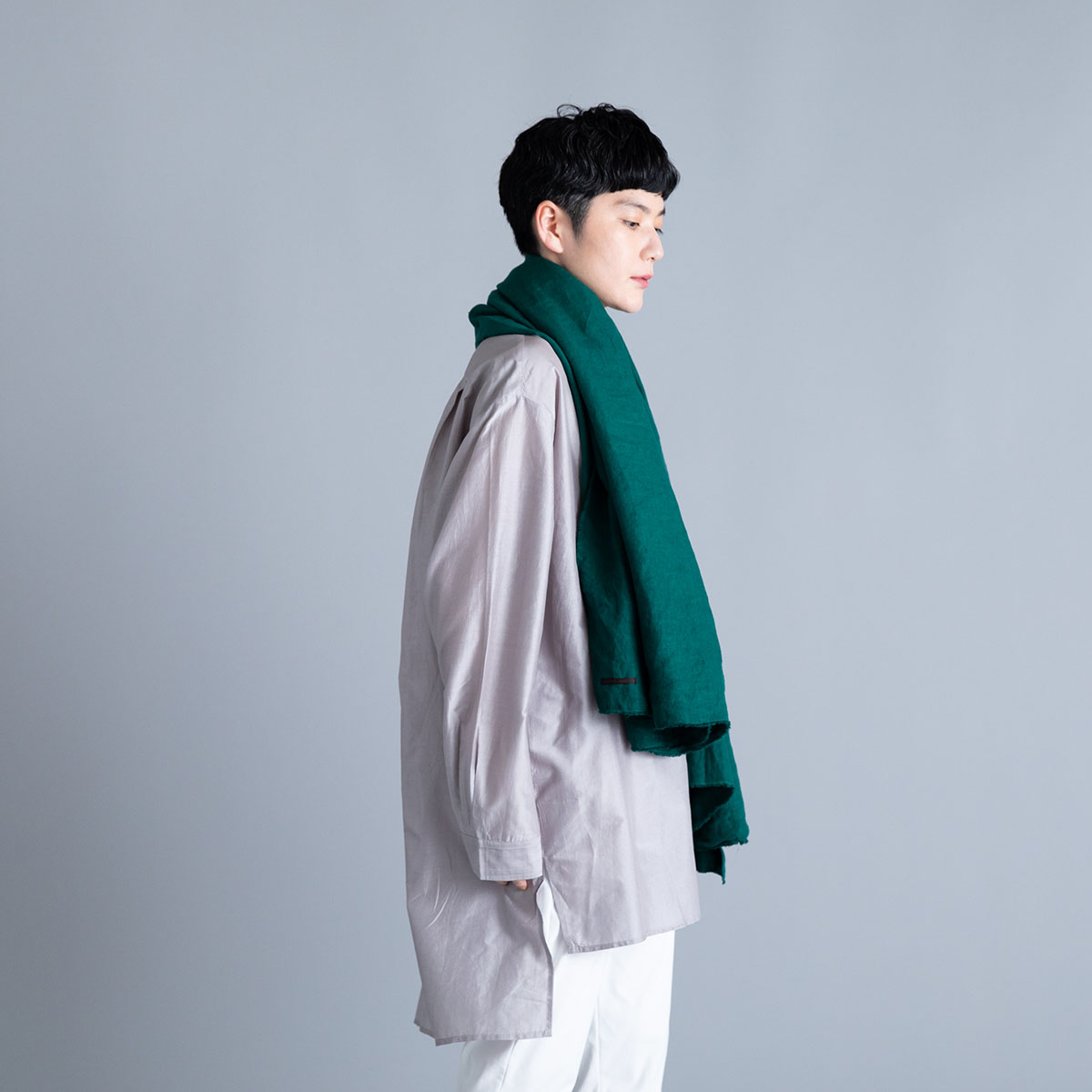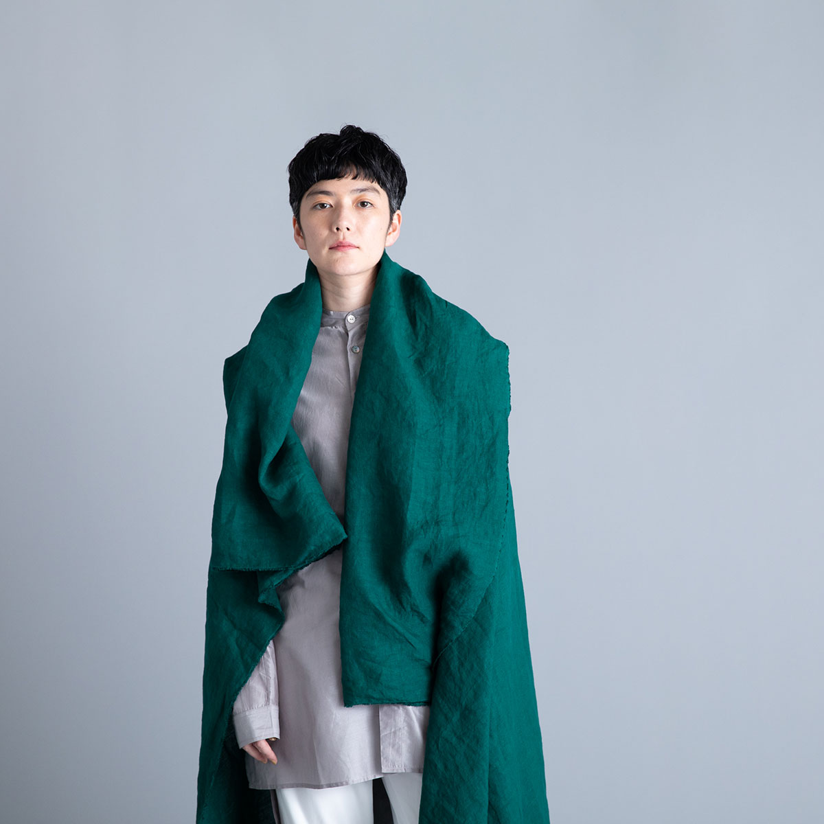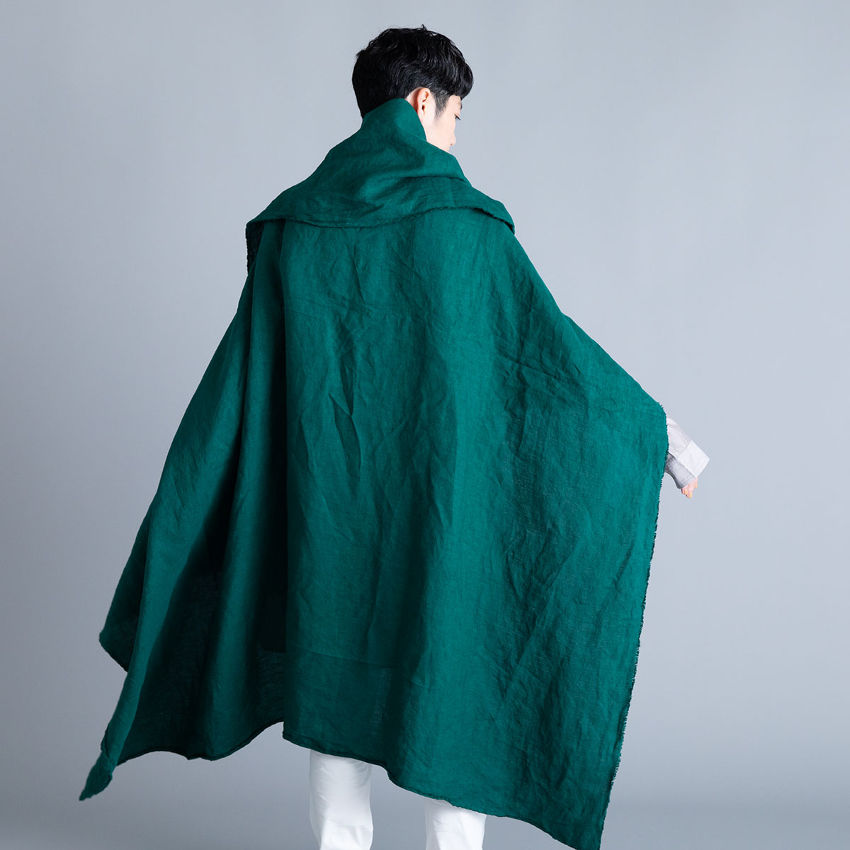 Wide Stole_Overdyed Irish Linen(Rich Green)/Honnete