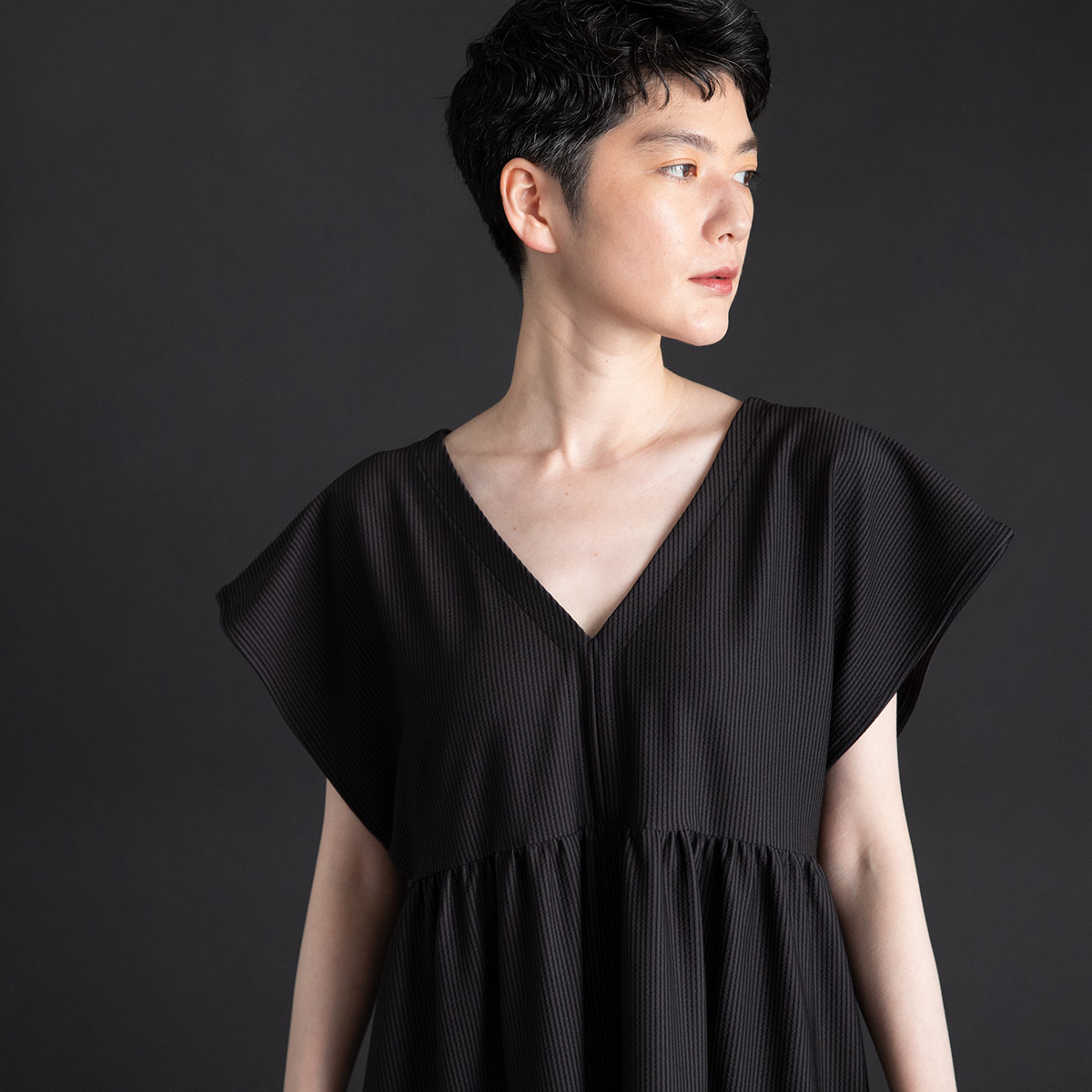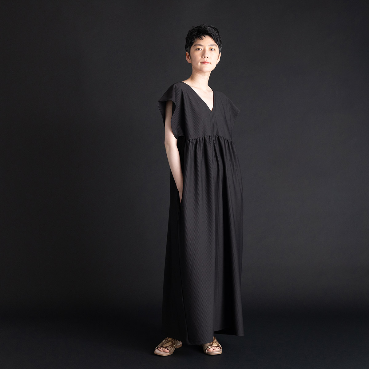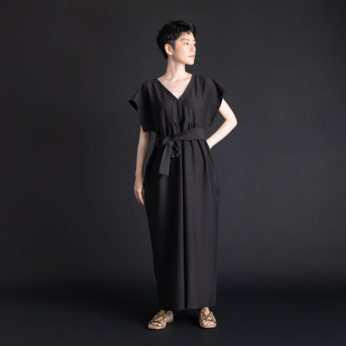 トリコットサッカーロングワンピース(ブラック)/t.yamai paris