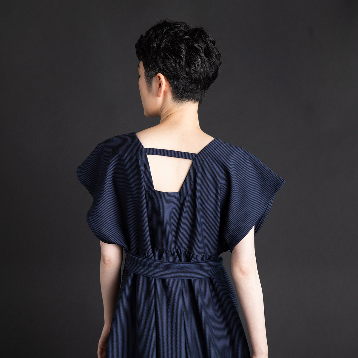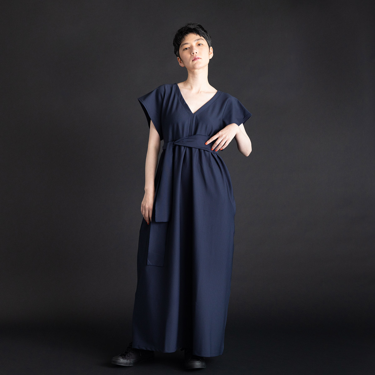 トリコットサッカーロングワンピース(ネイビー)/t.yamai paris