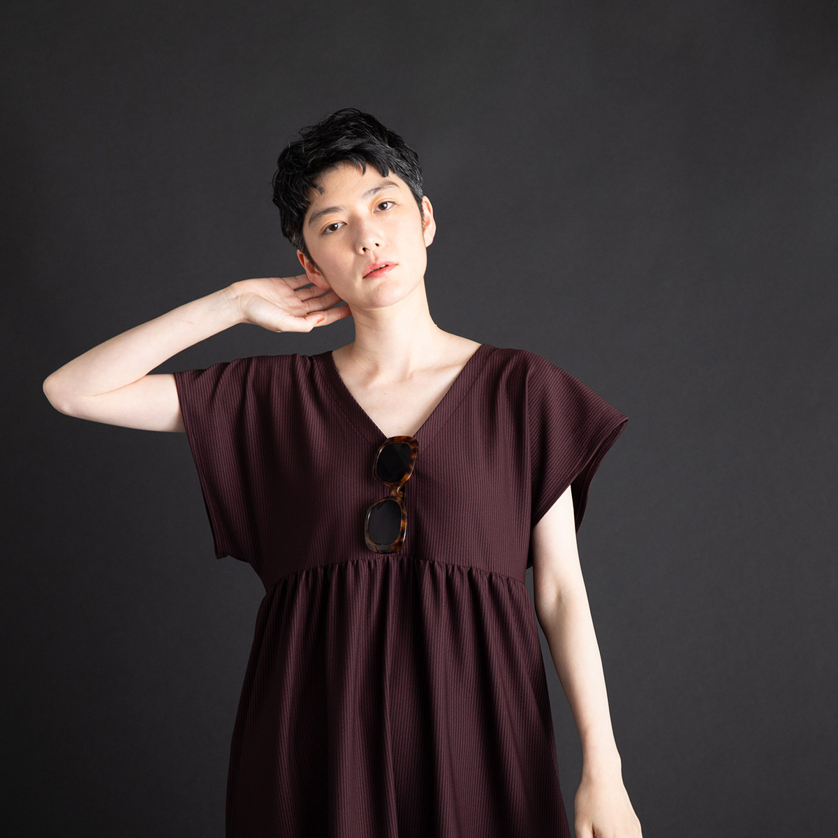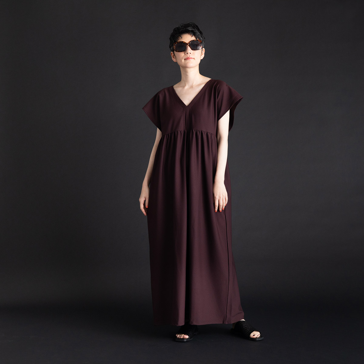 トリコットサッカーロングワンピース(ブラウン)/t.yamai paris