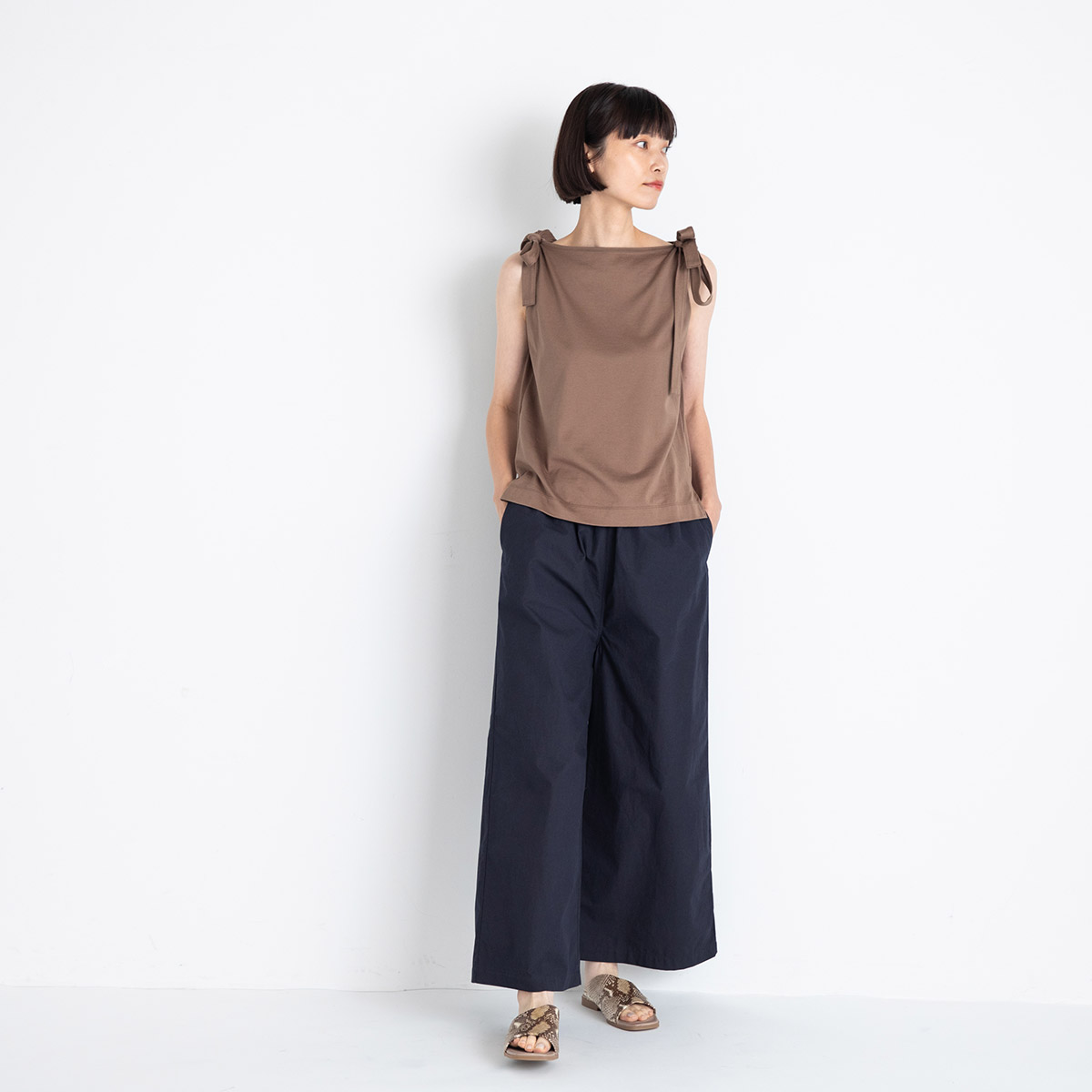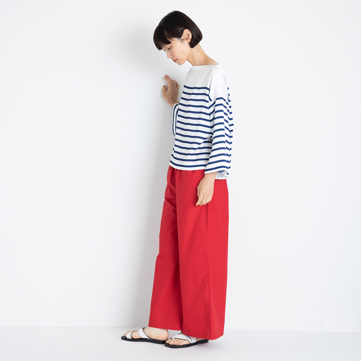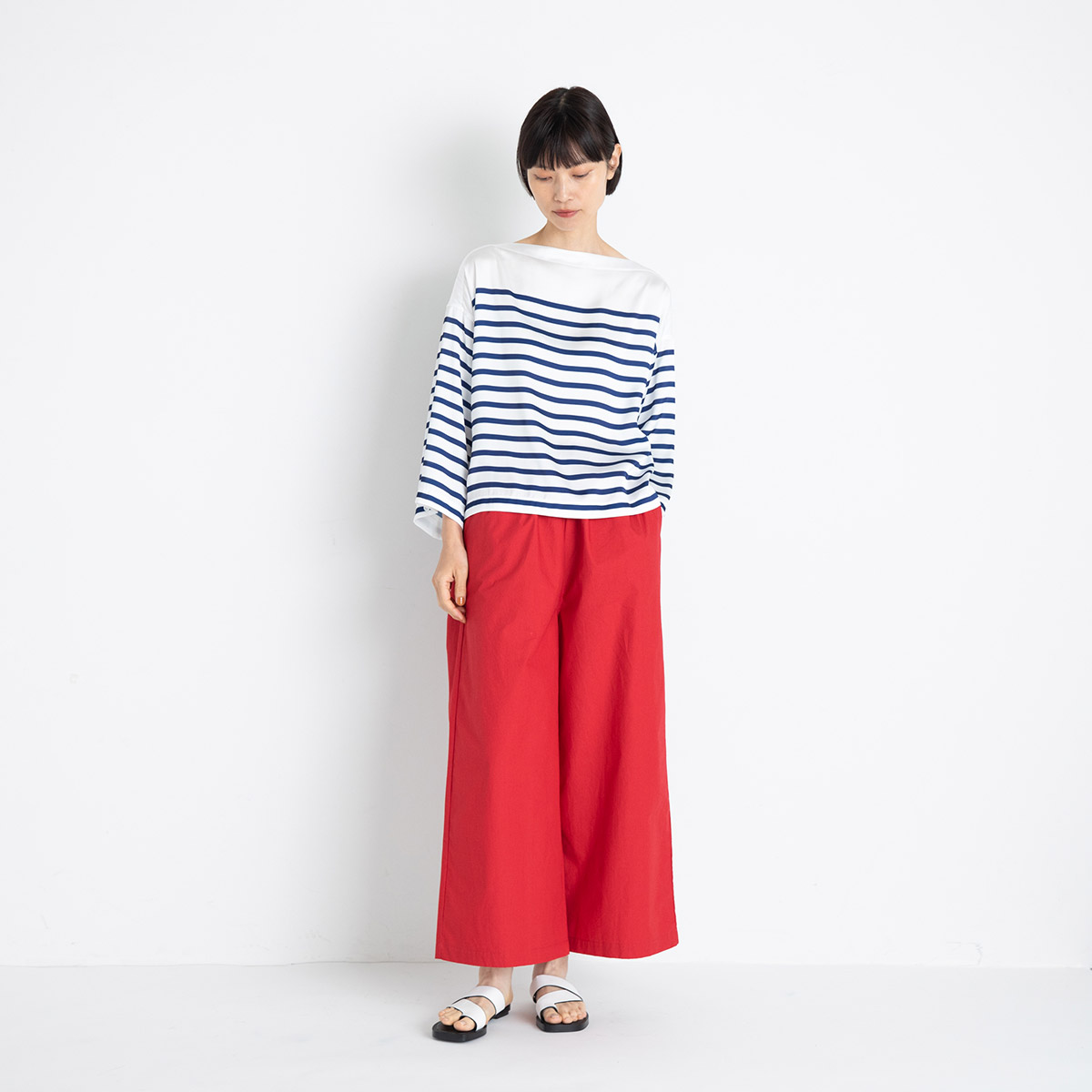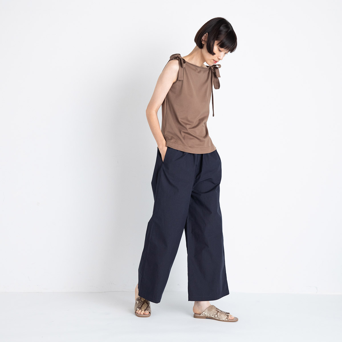ワイドパンツのシルエットをきれいに見せてくれます。