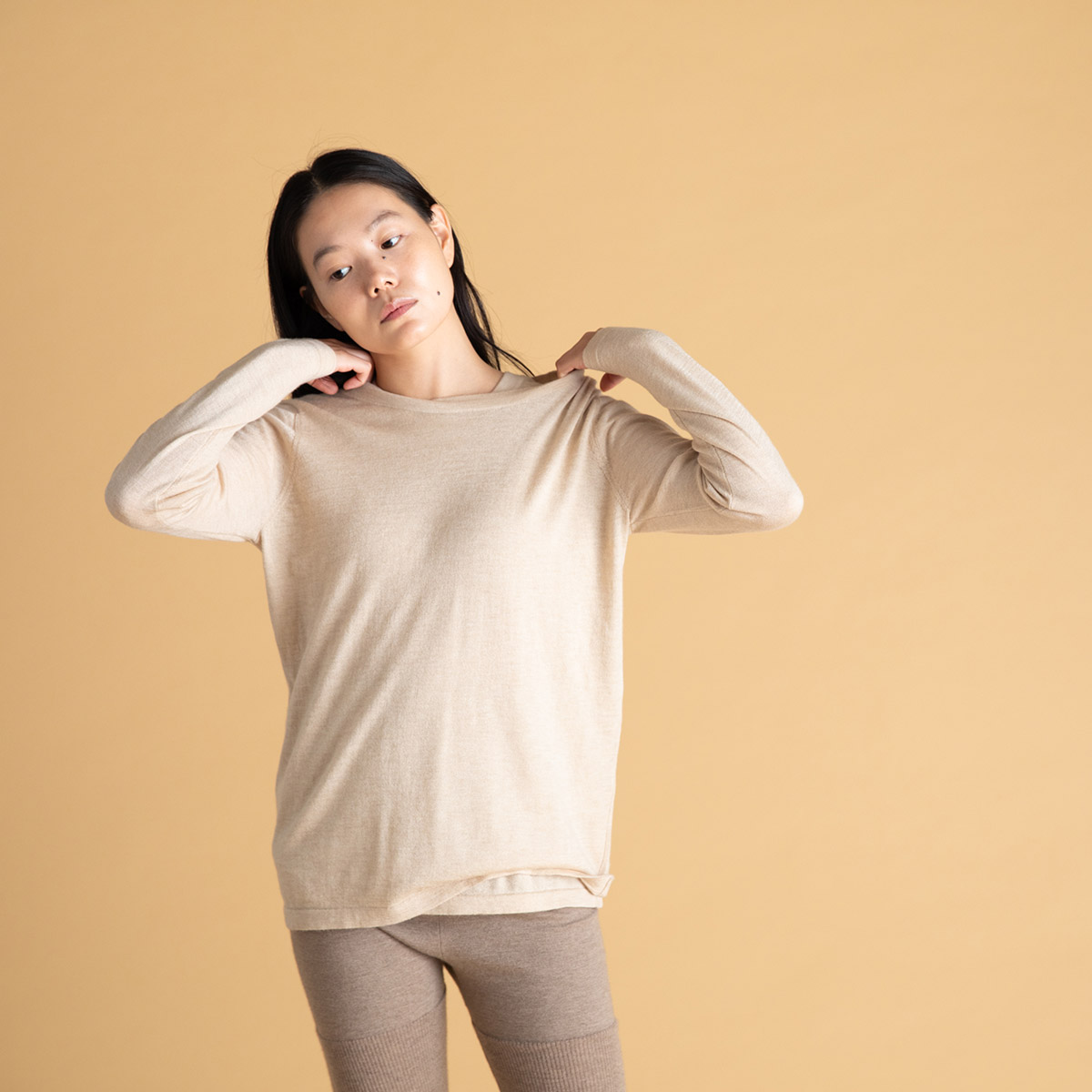 カシミヤのロングスリーブ(ベージュ)/cohan