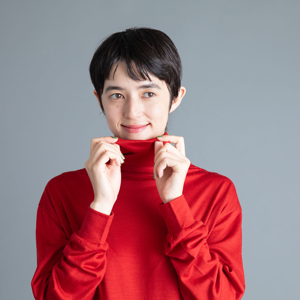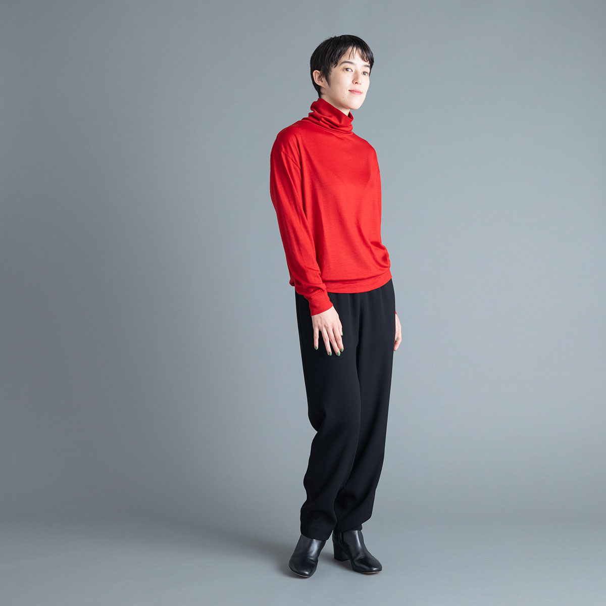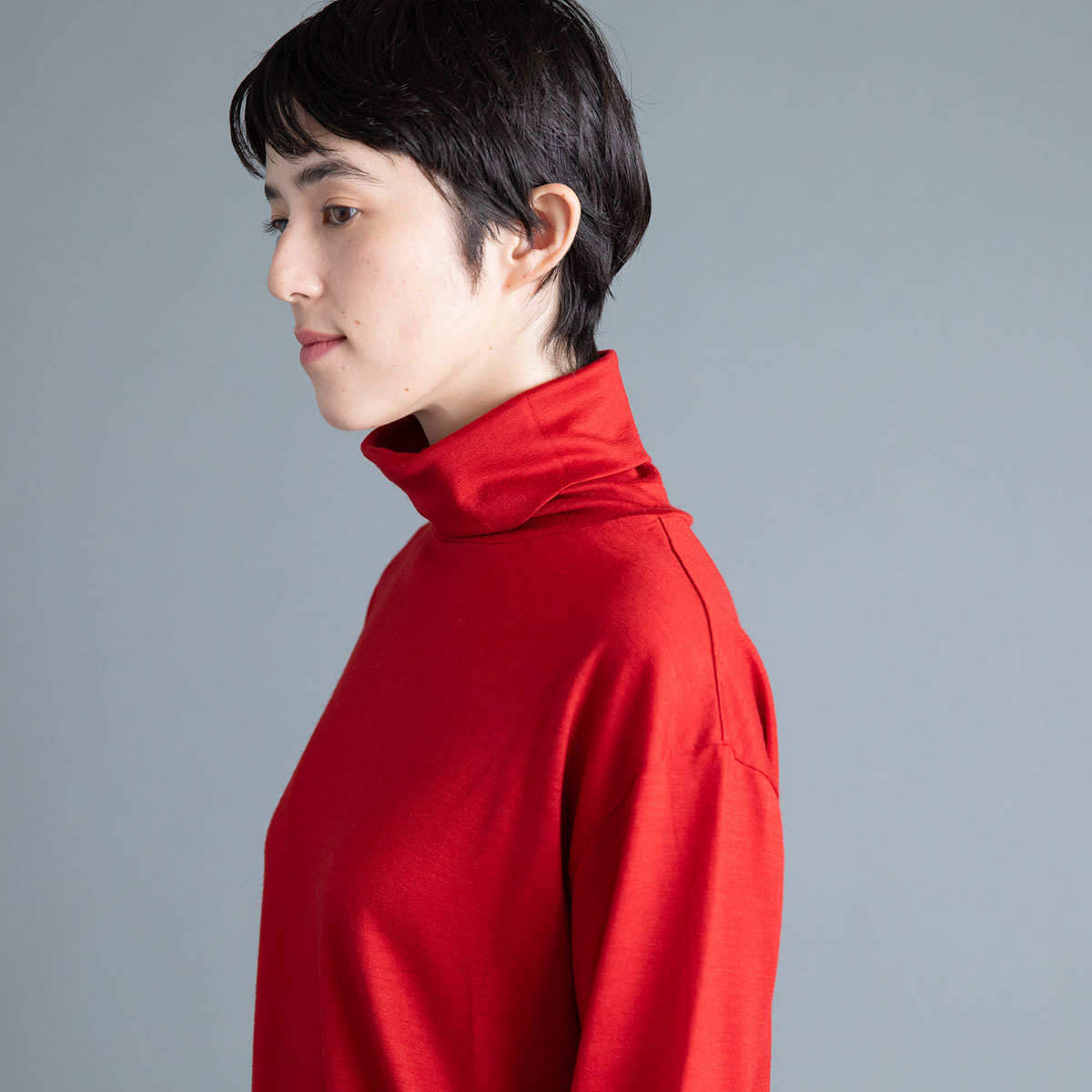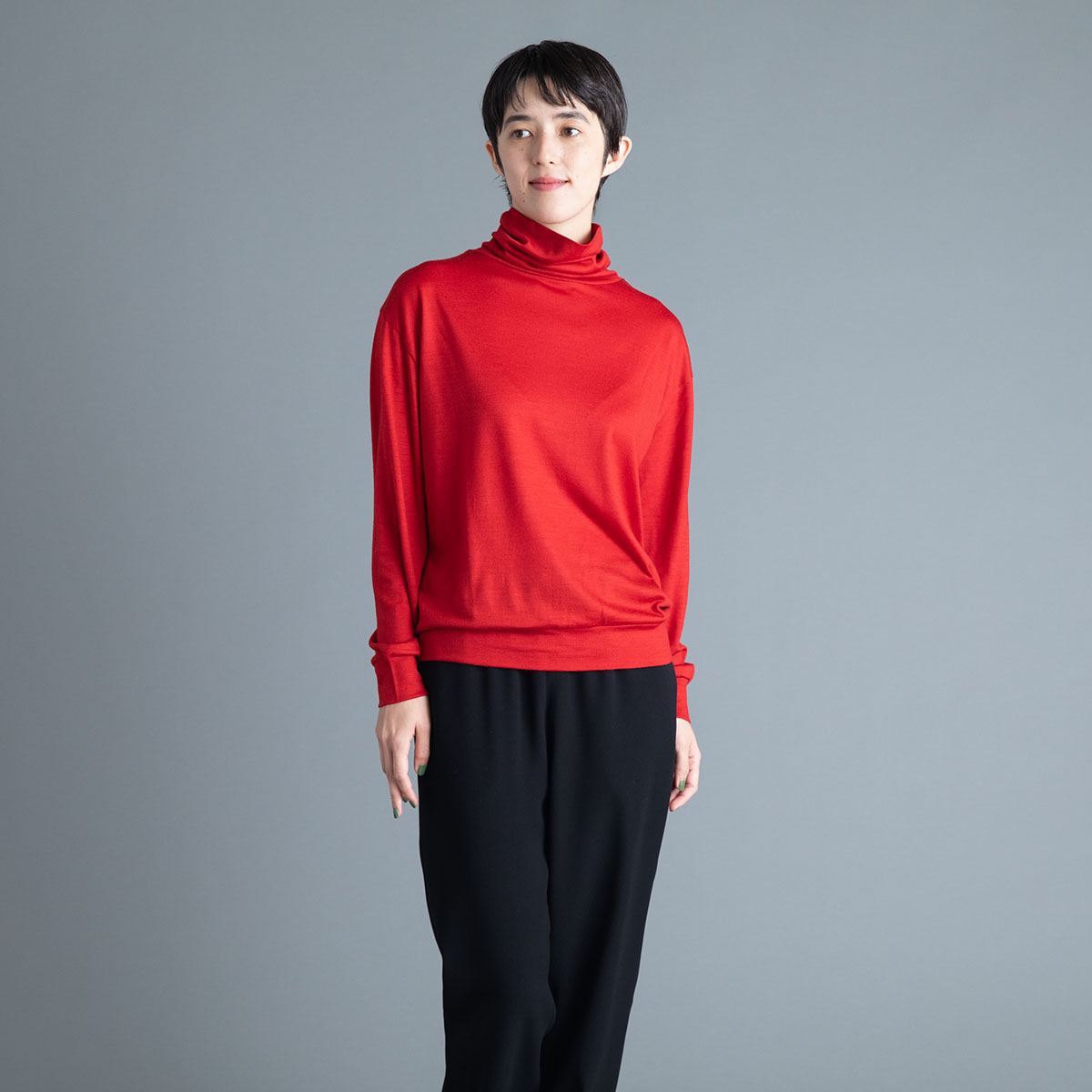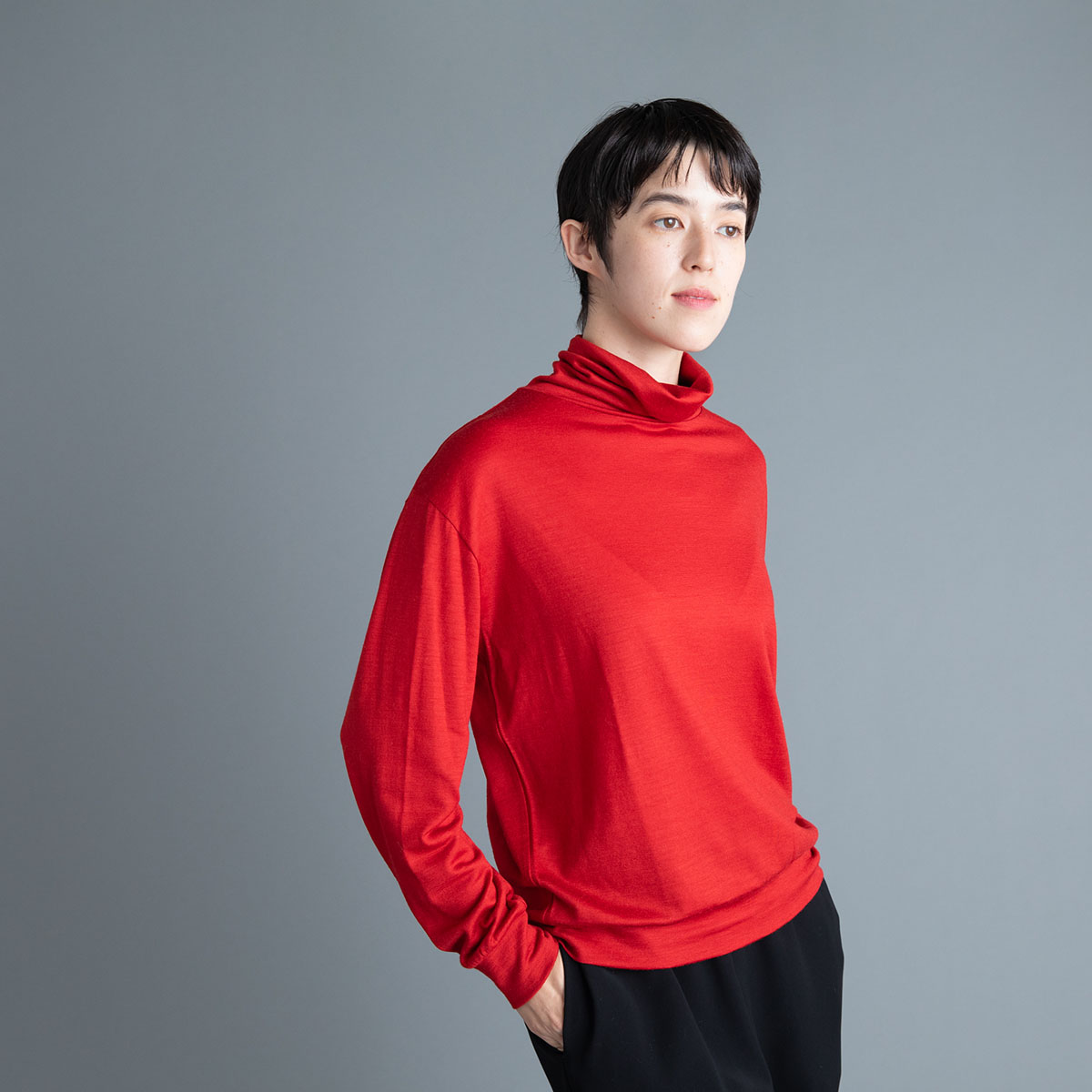 ウール天竺 タートルネック長袖Tシャツ(レッド)/SLOANE