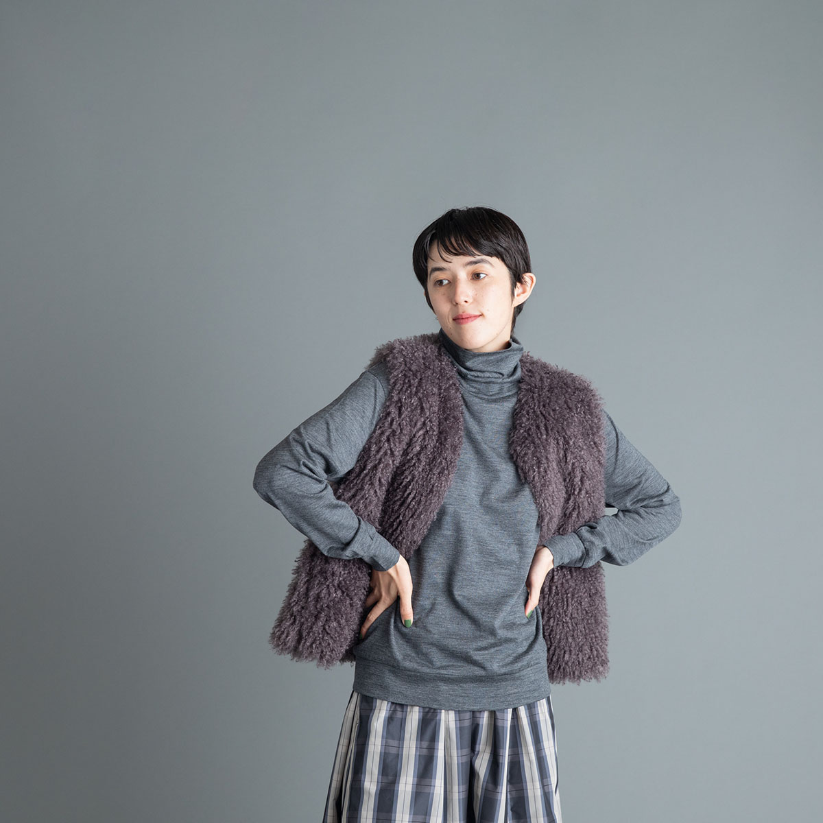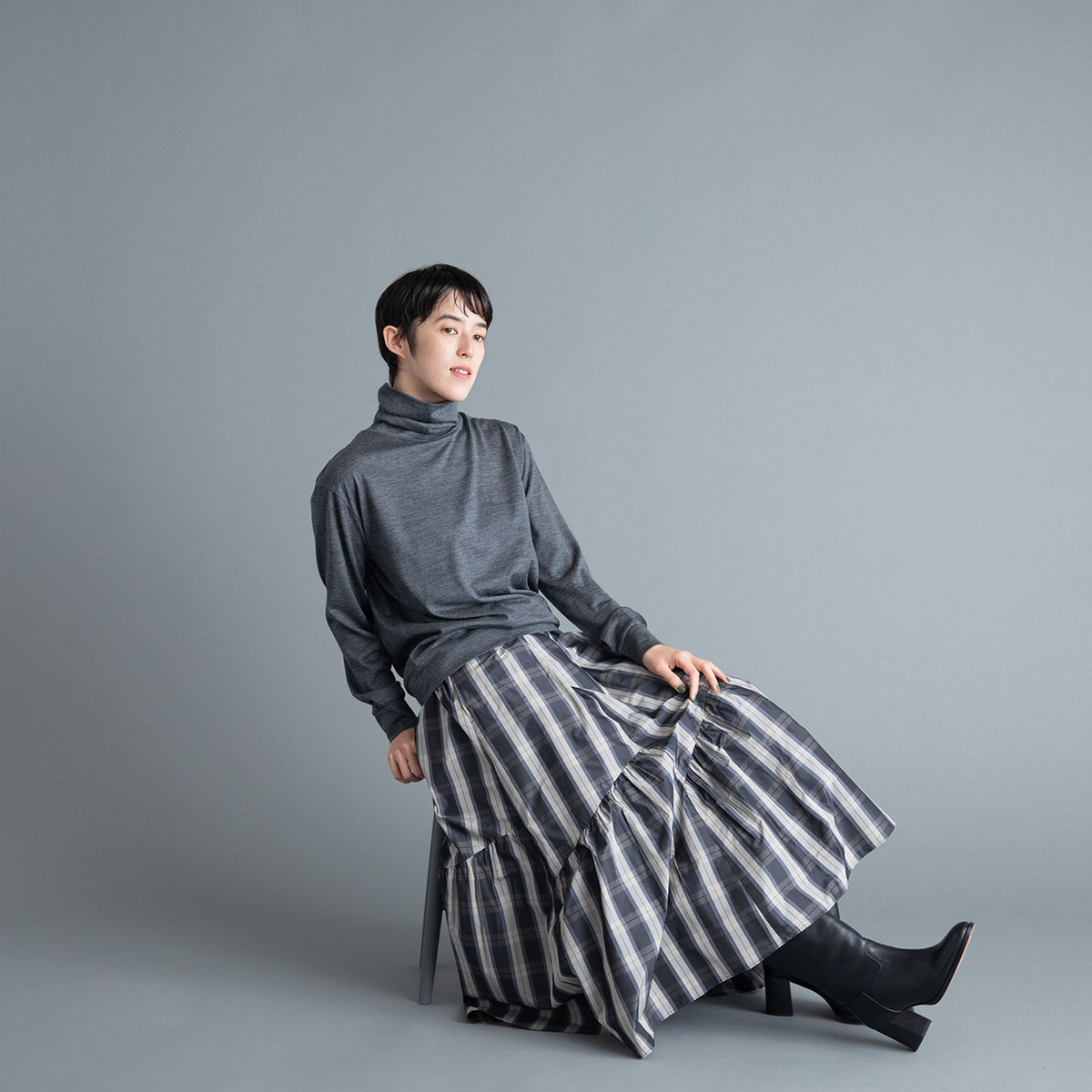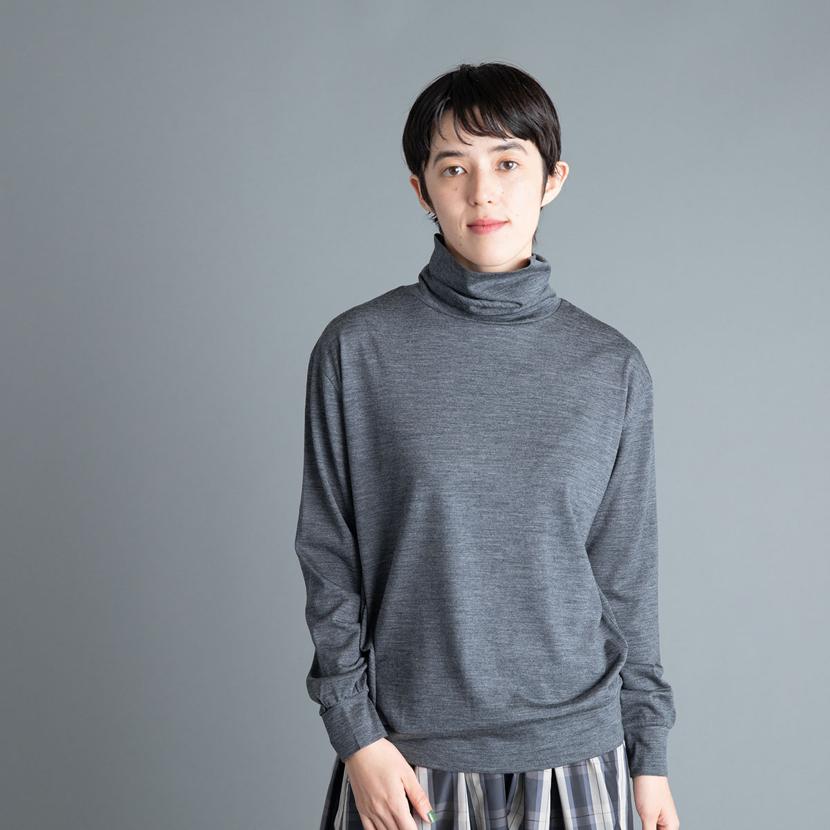 ウール天竺 タートルネック長袖Tシャツ(ミディアムグレー)/SLOANE