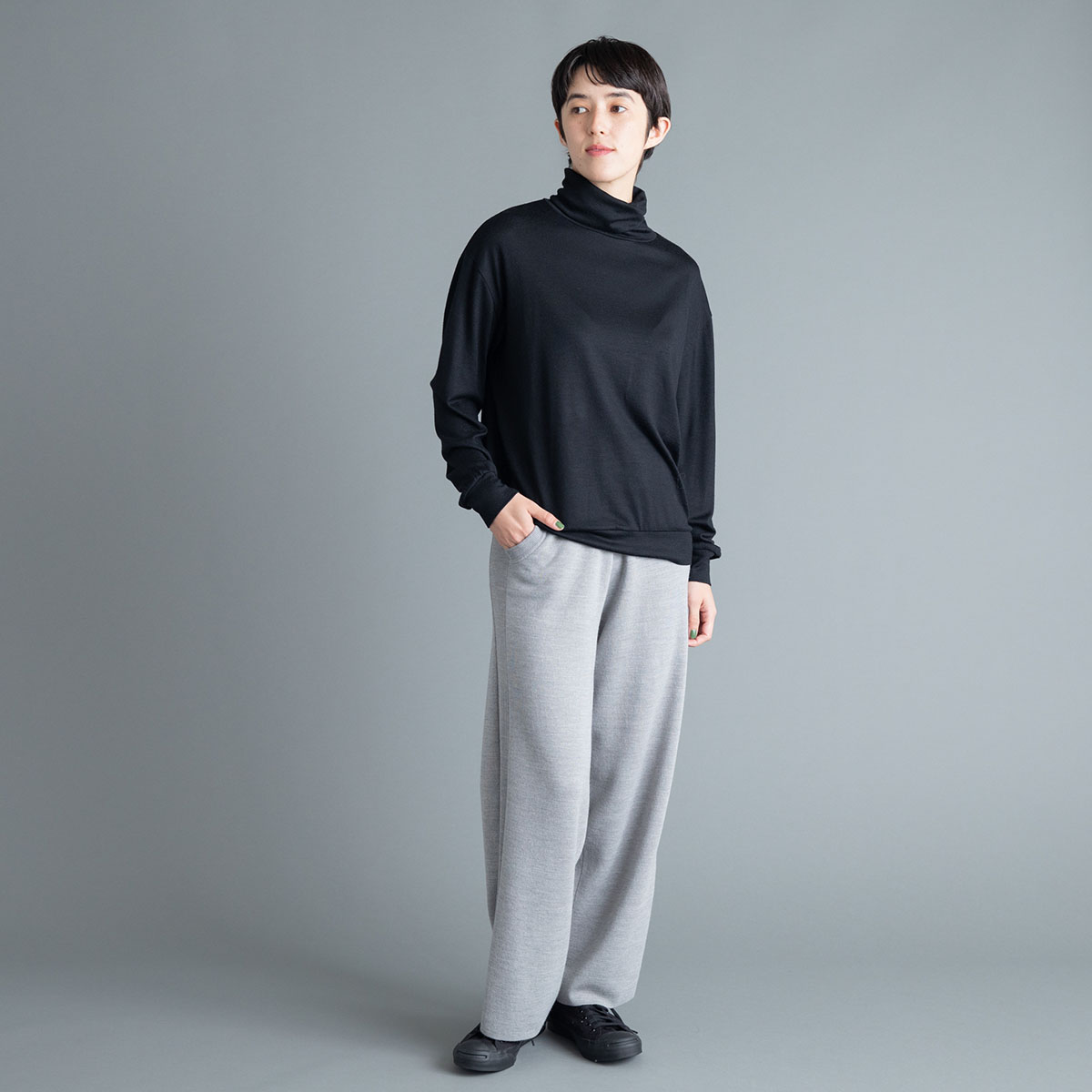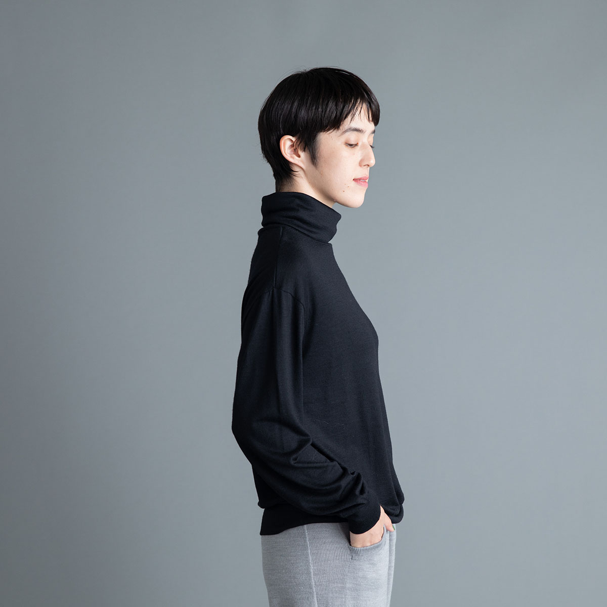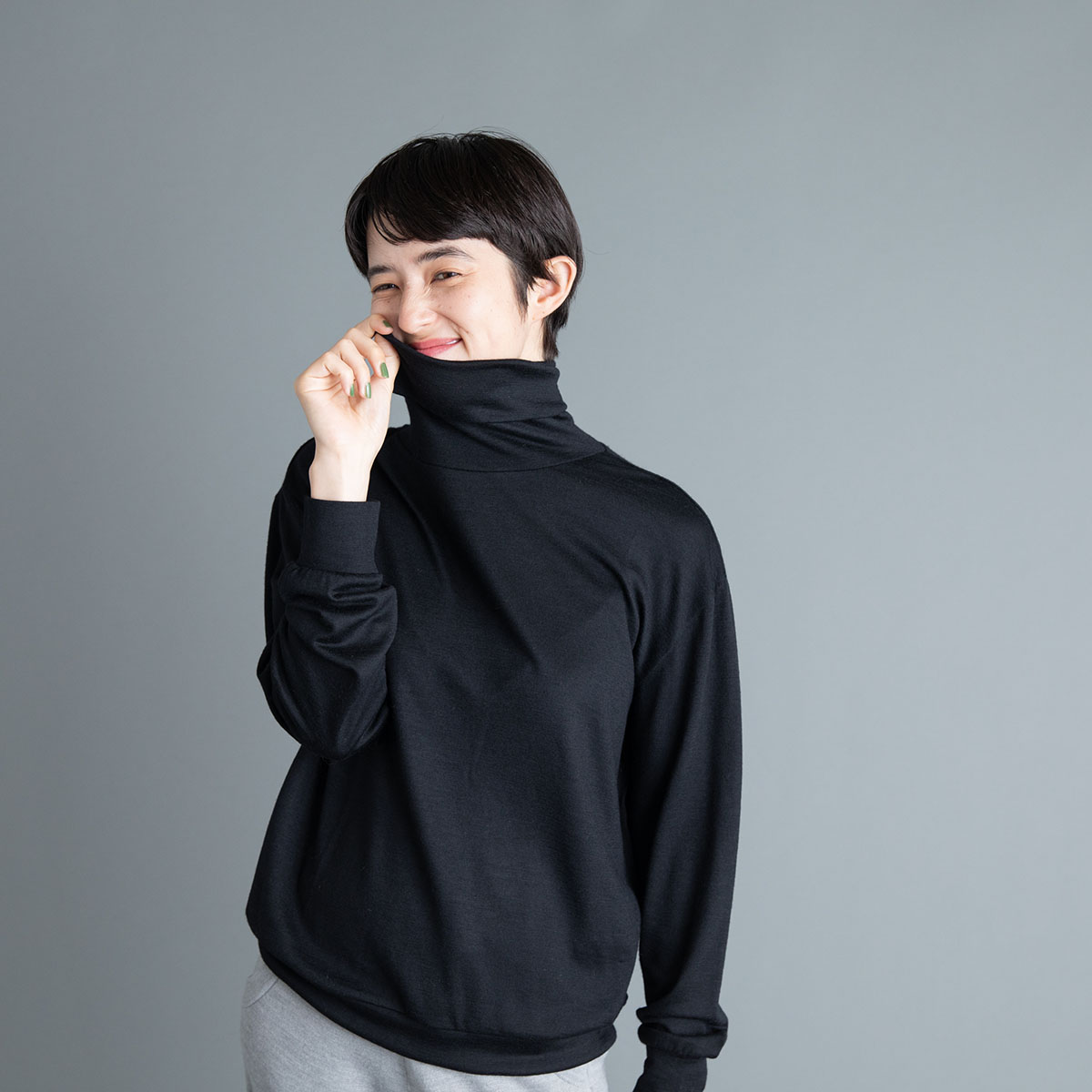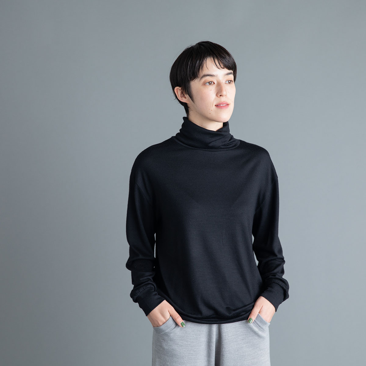 ウール天竺 タートルネック長袖Tシャツ(ブラック)/SLOANE