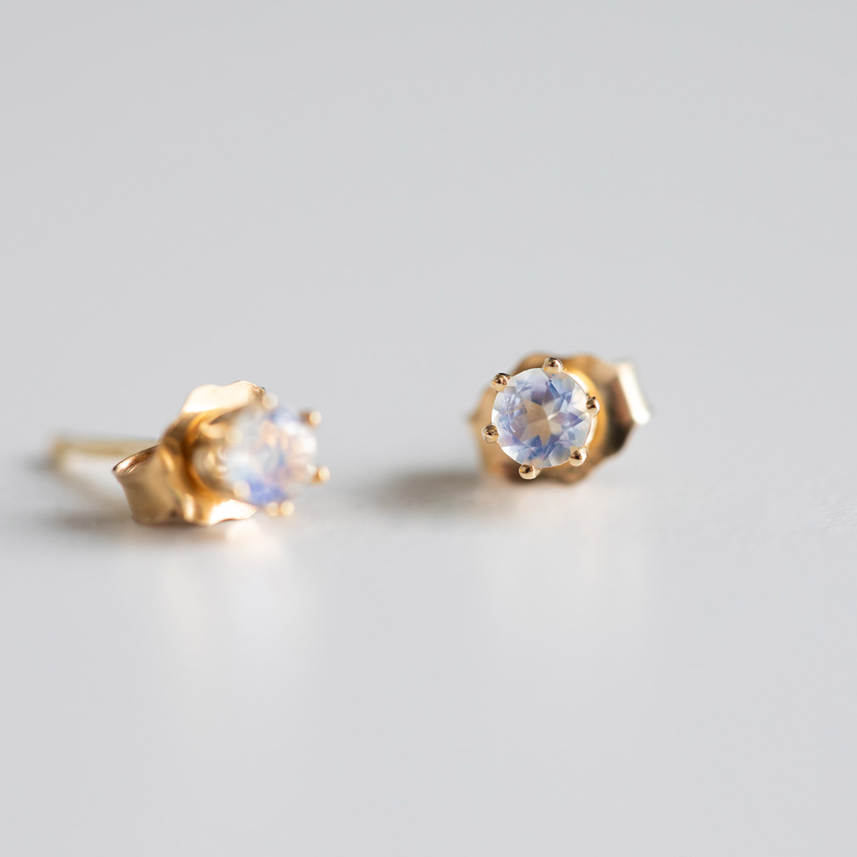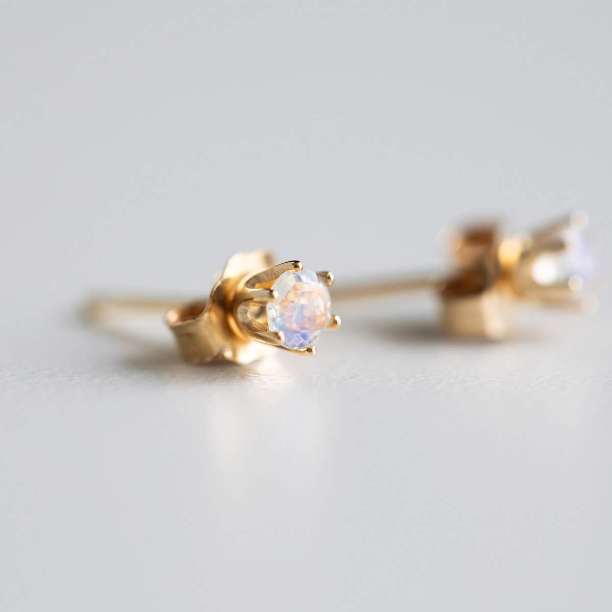 小さなレインボームーンストーンのピアス。