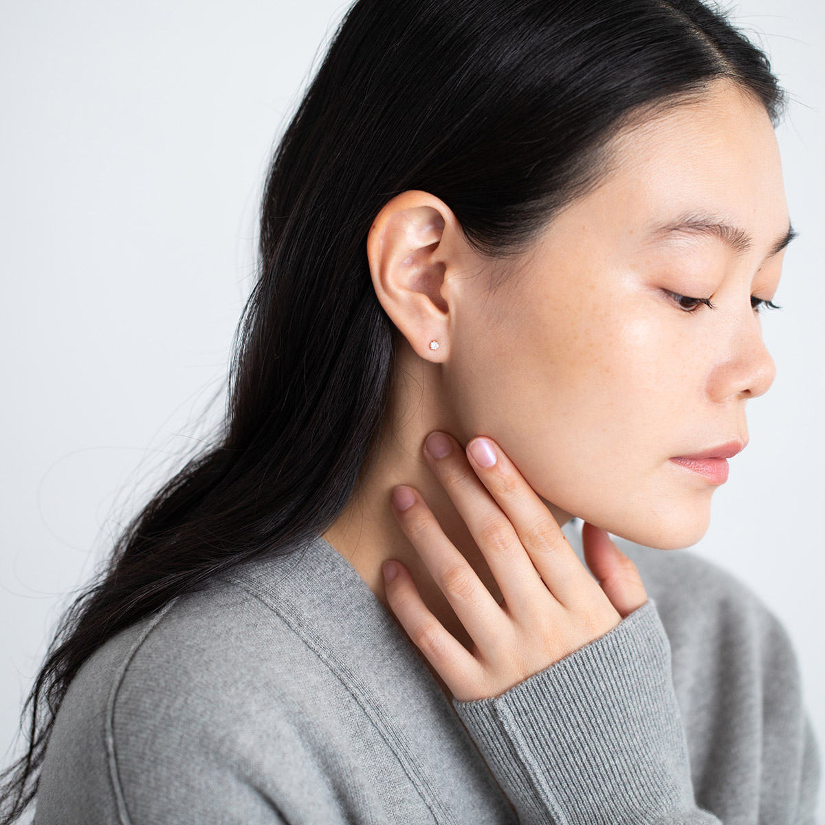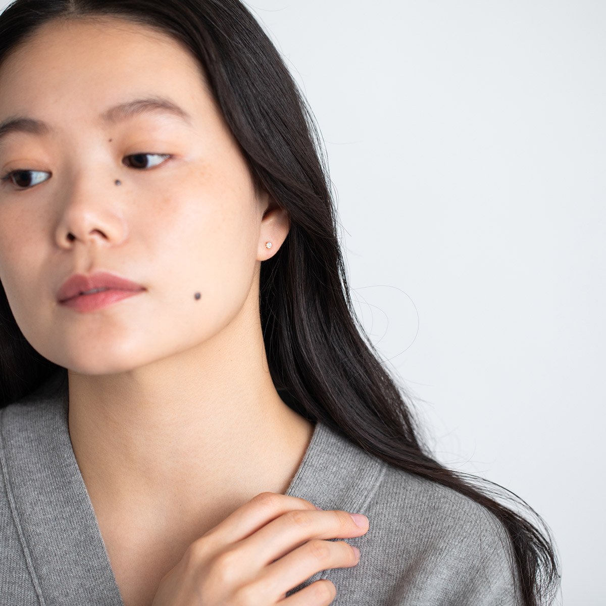 耳元に輝きがひとつあるだけで
