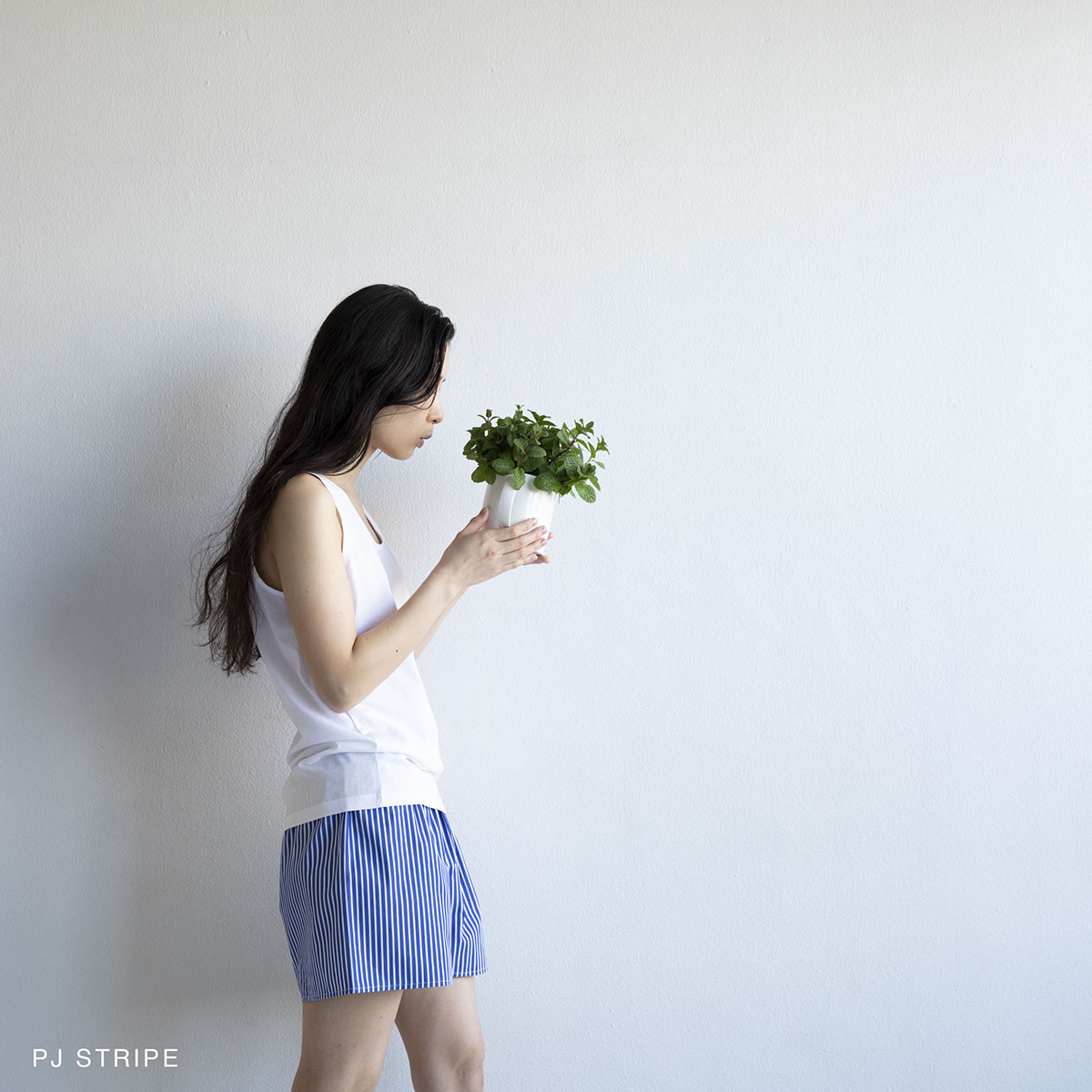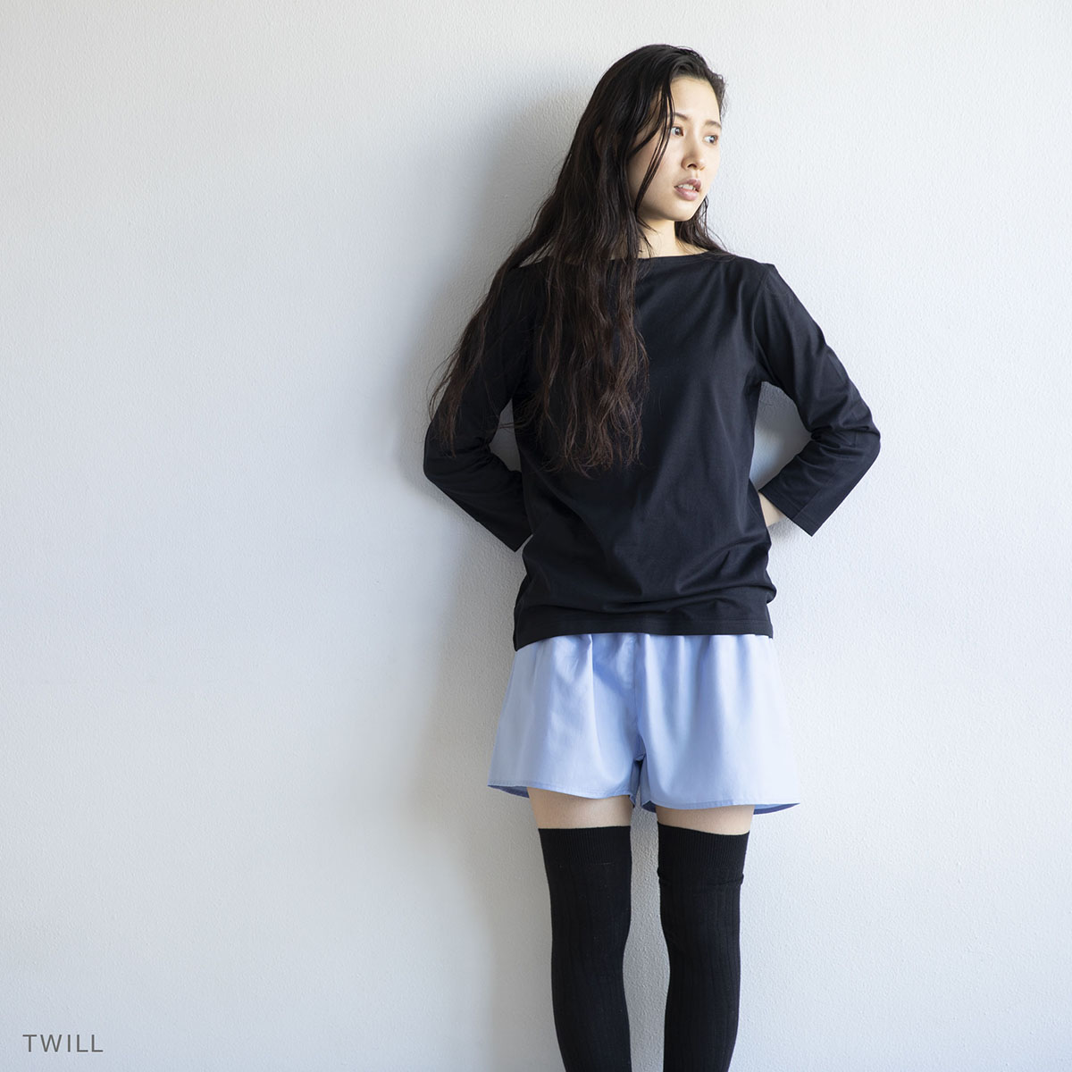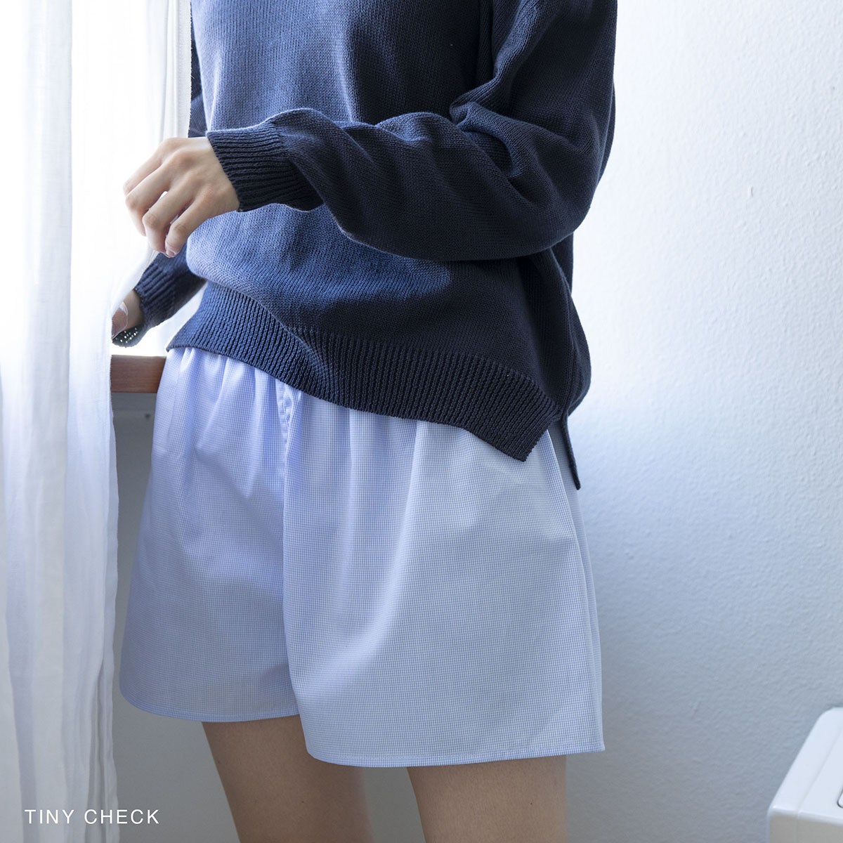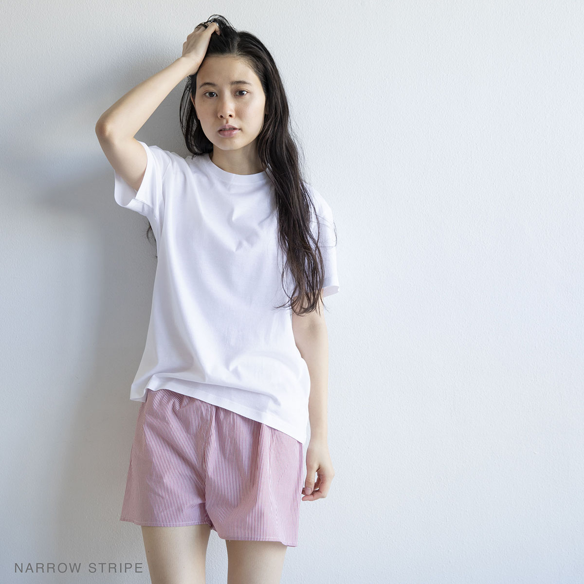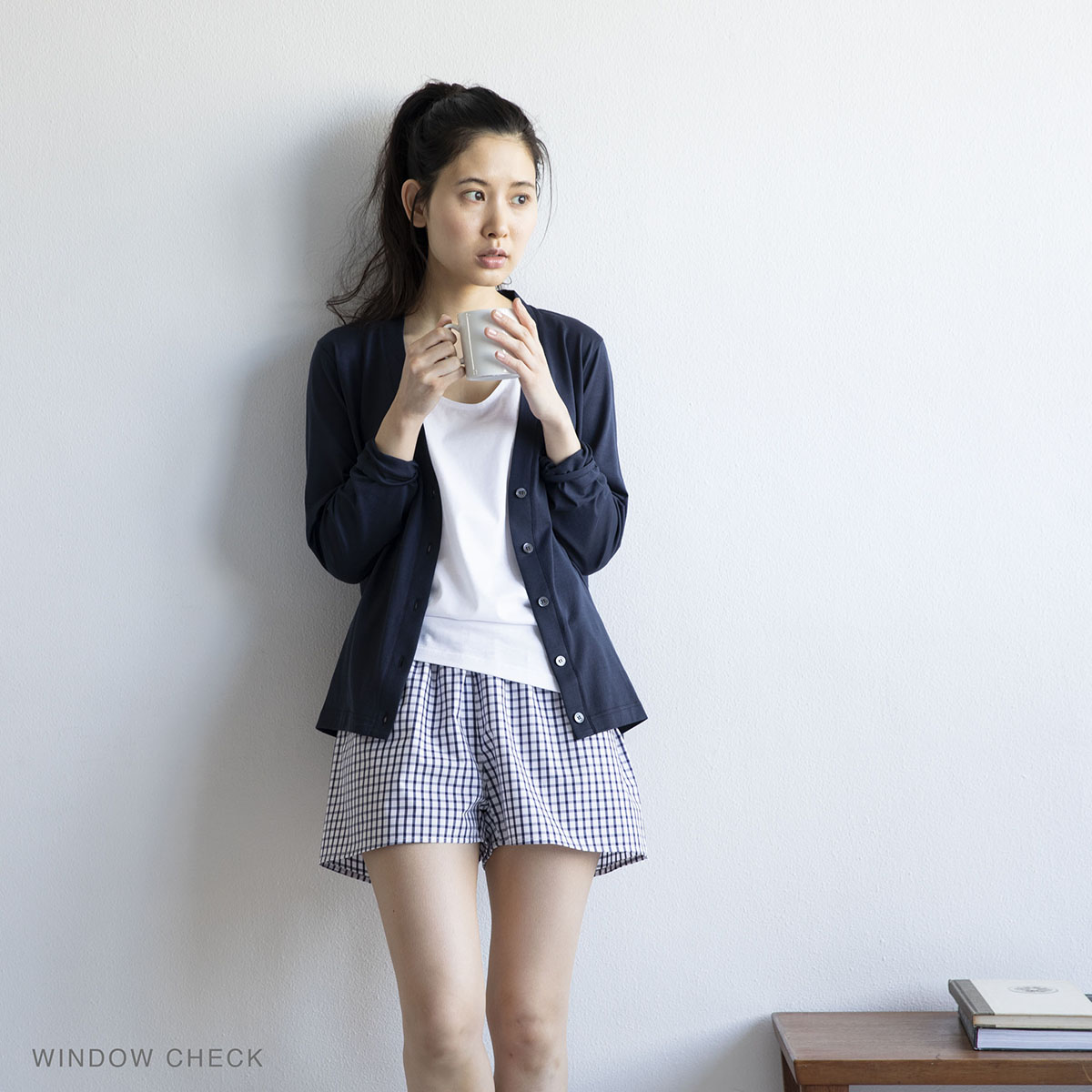 肌ざわりのよいコットンを使った部屋で履くパンツ、