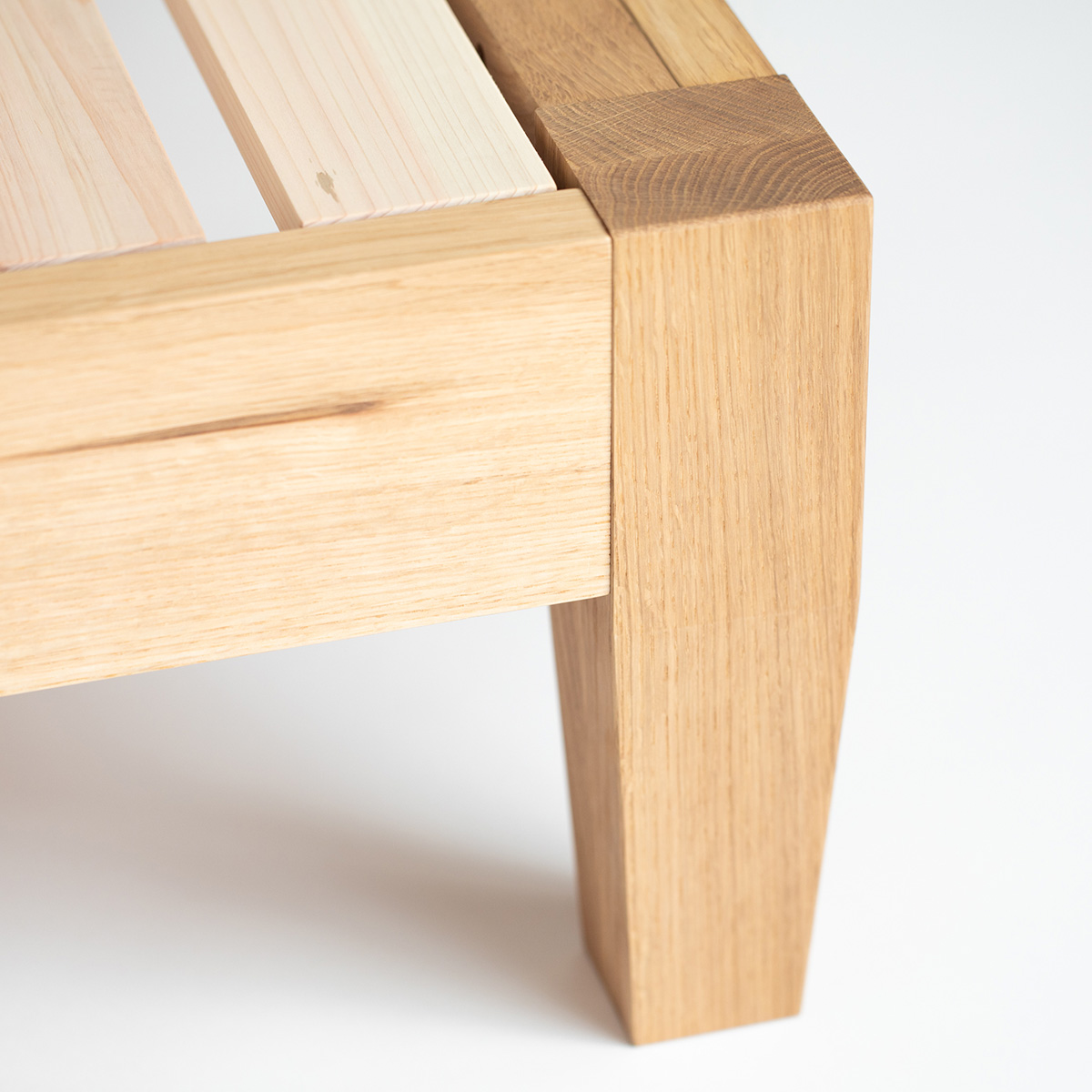 「杉工場」に依頼してつくったベッドフレームです。