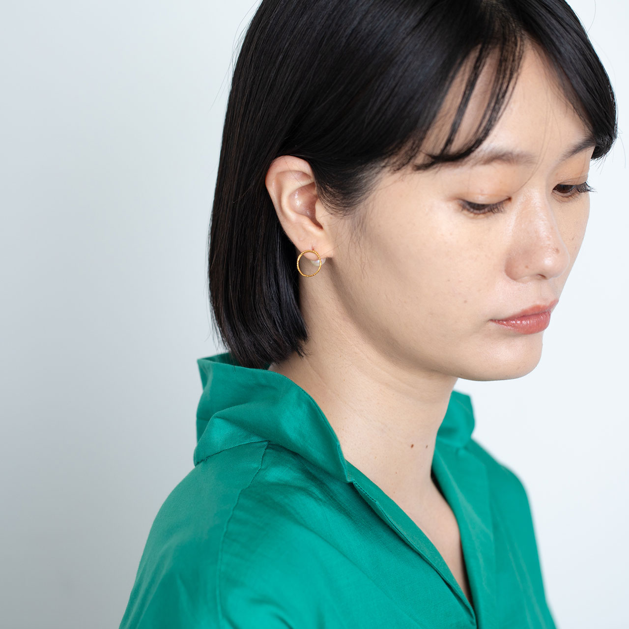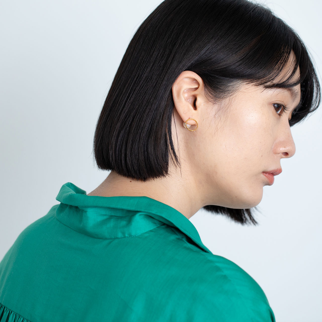 ダイヤやゴールドなど、お手持ちのピアスと合わせても。