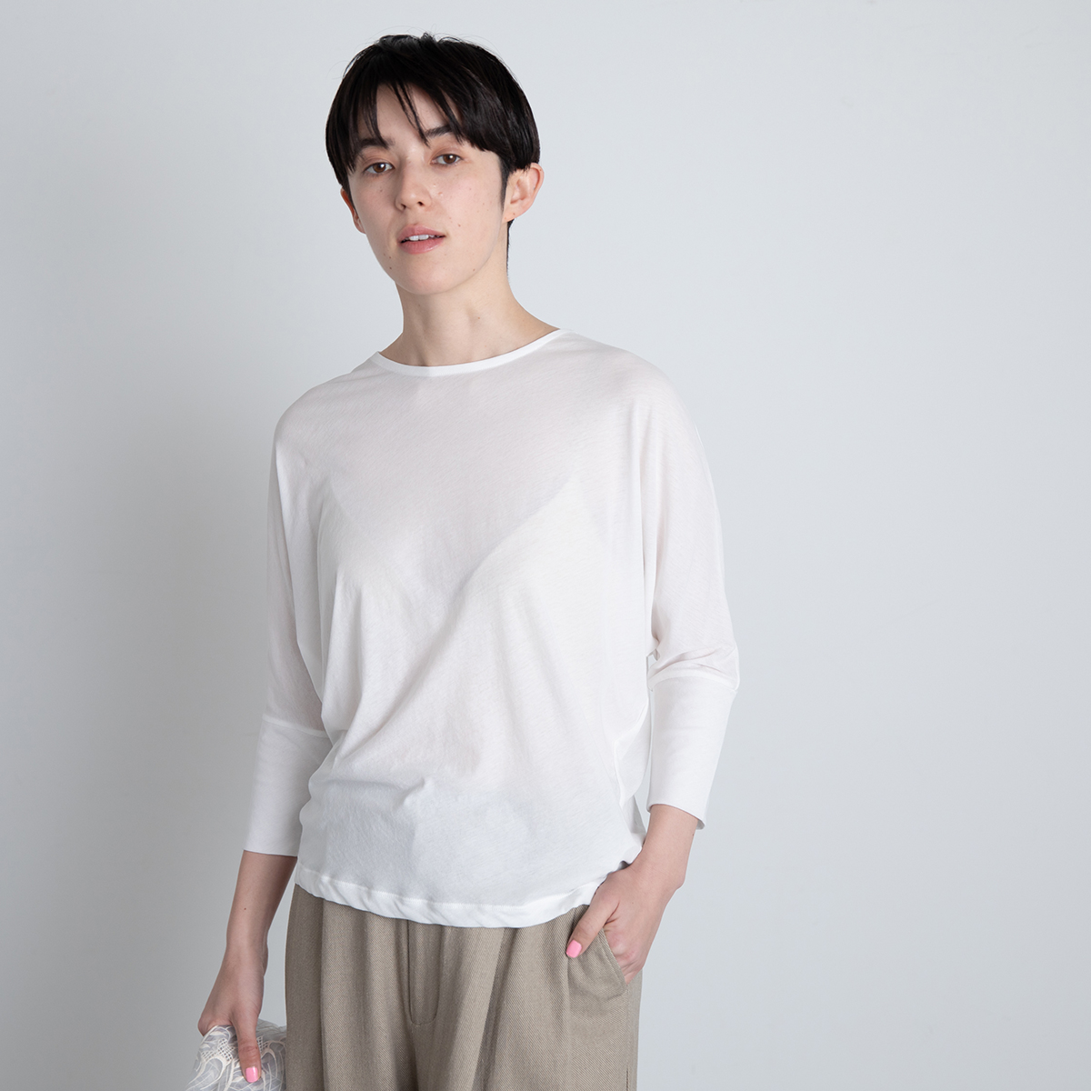一枚で着るのはもちろん、薄手なので重ね着もたのしめる、