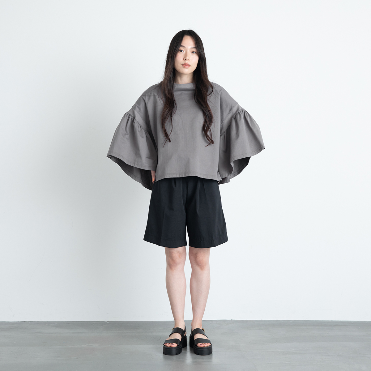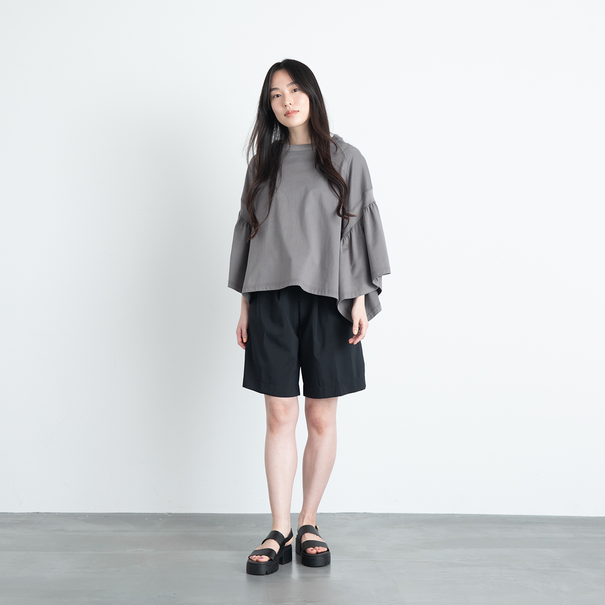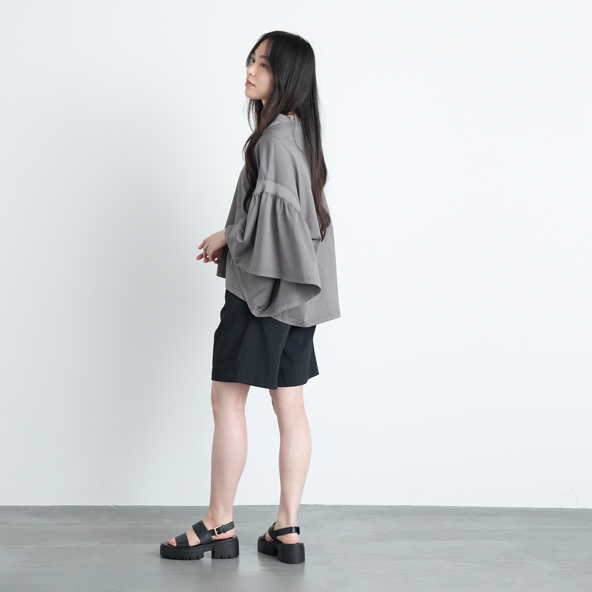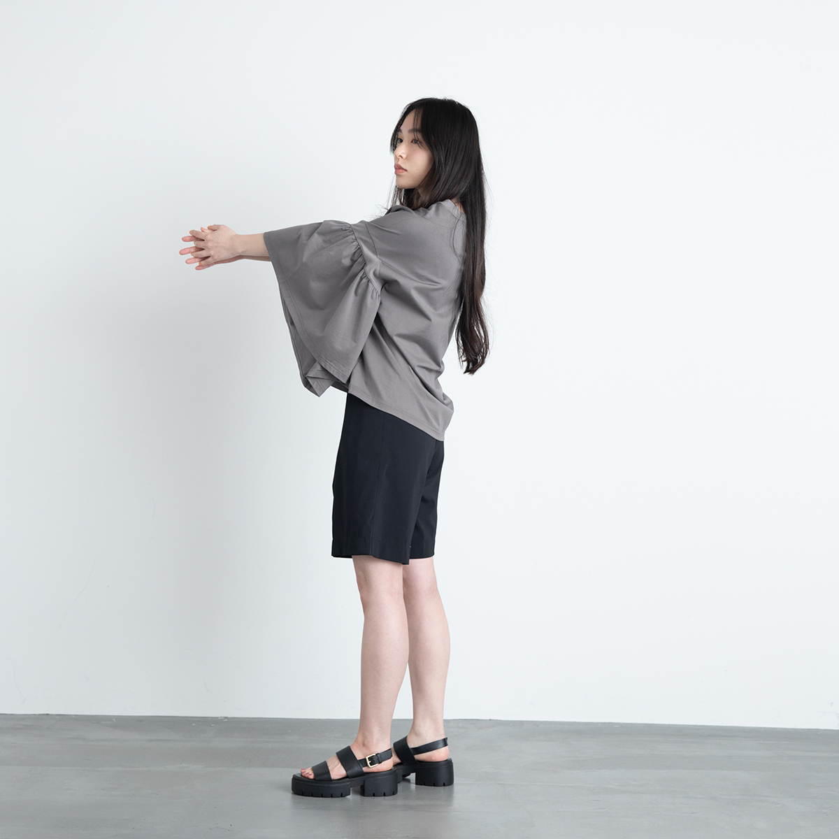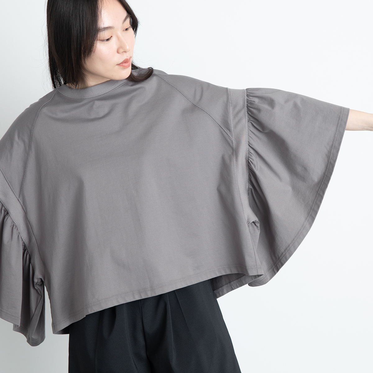 LAURA GATHERED SLV TOP(ASH GREY)/COGTHEBIGSMOKE