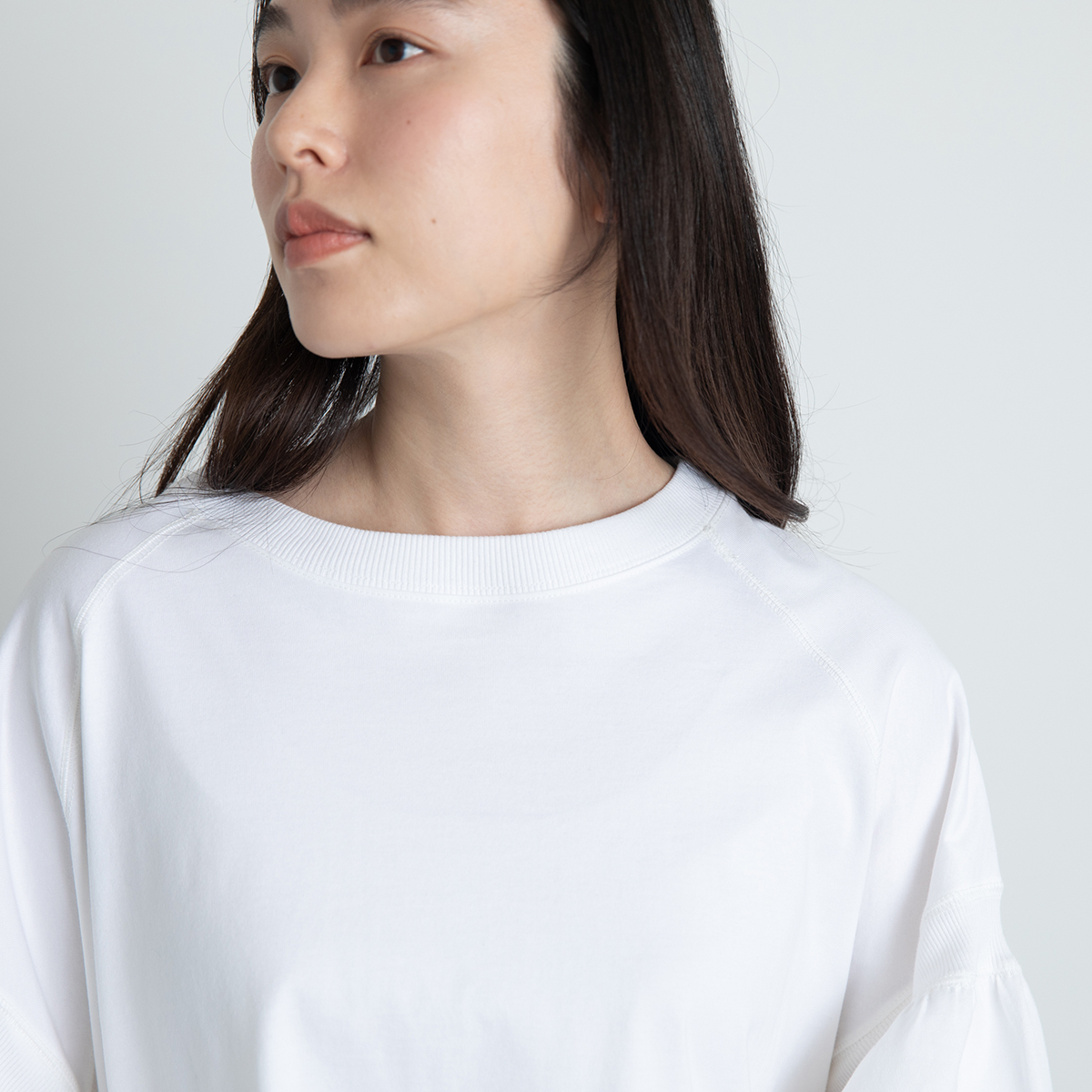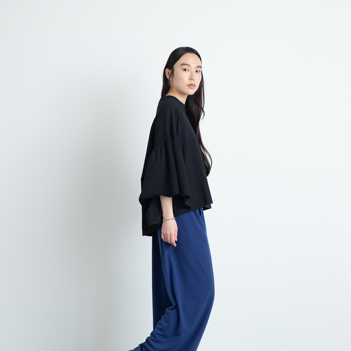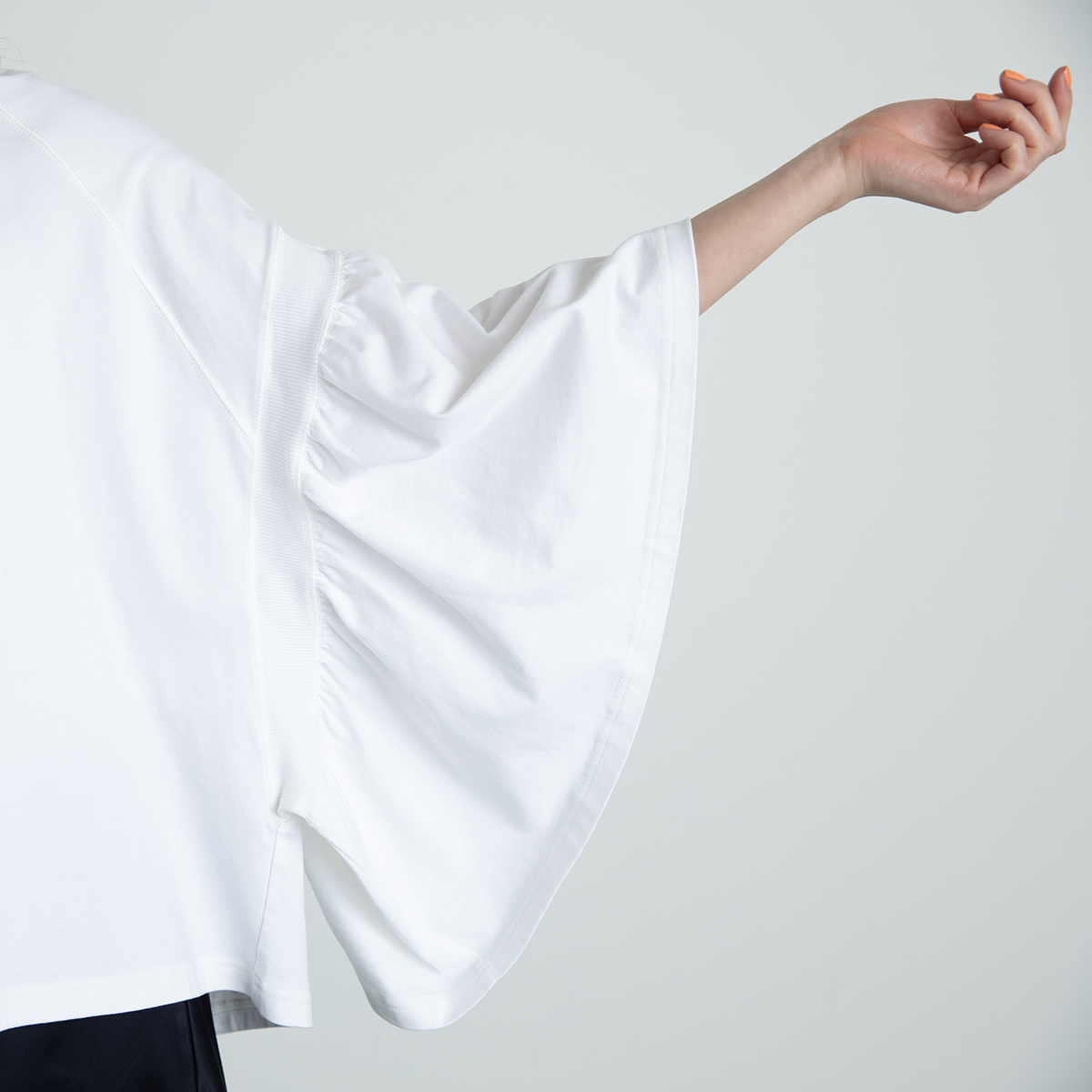 ギャザースリーブのショートTシャツをお届けします。