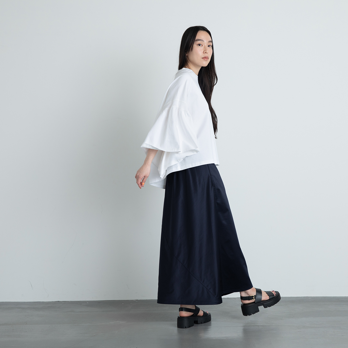 少しモードっぽい印象を与えます。