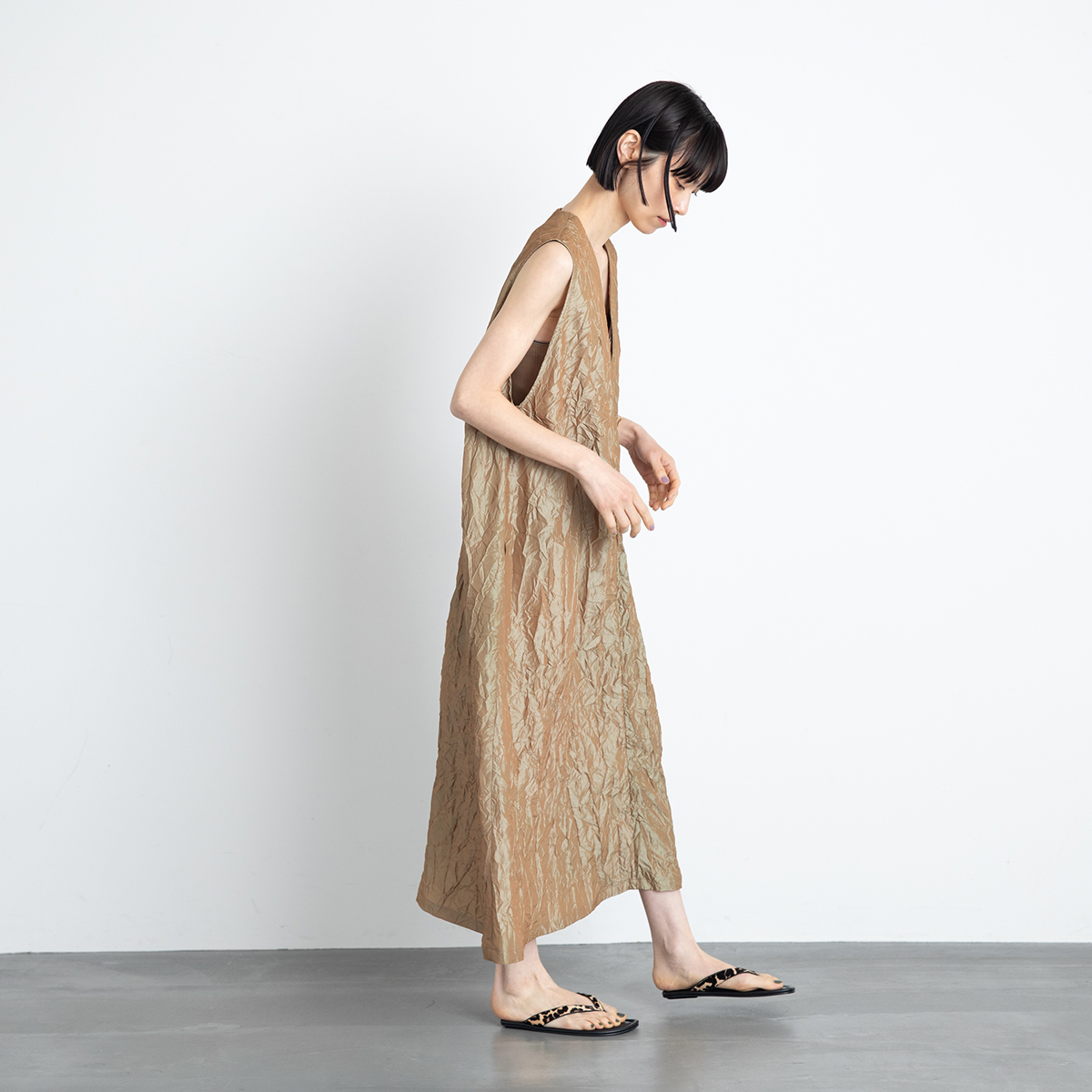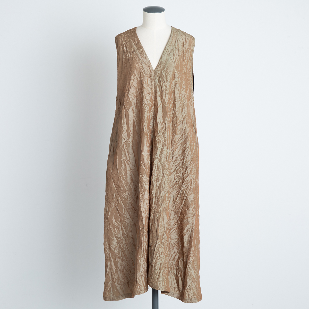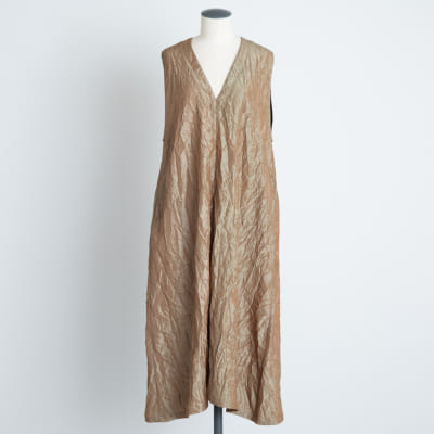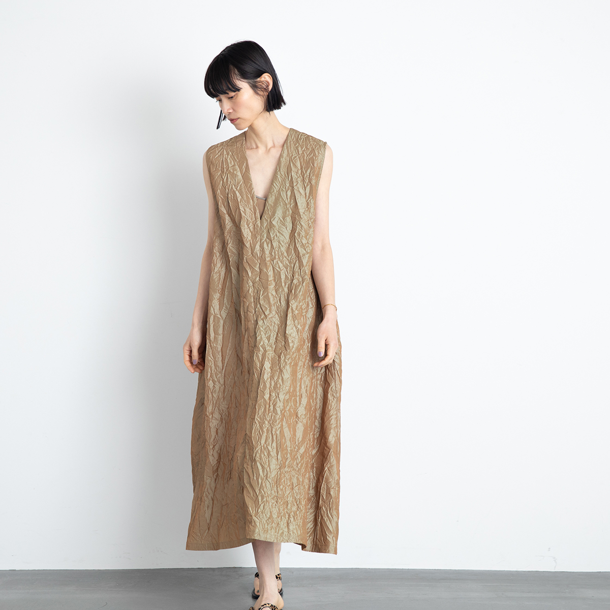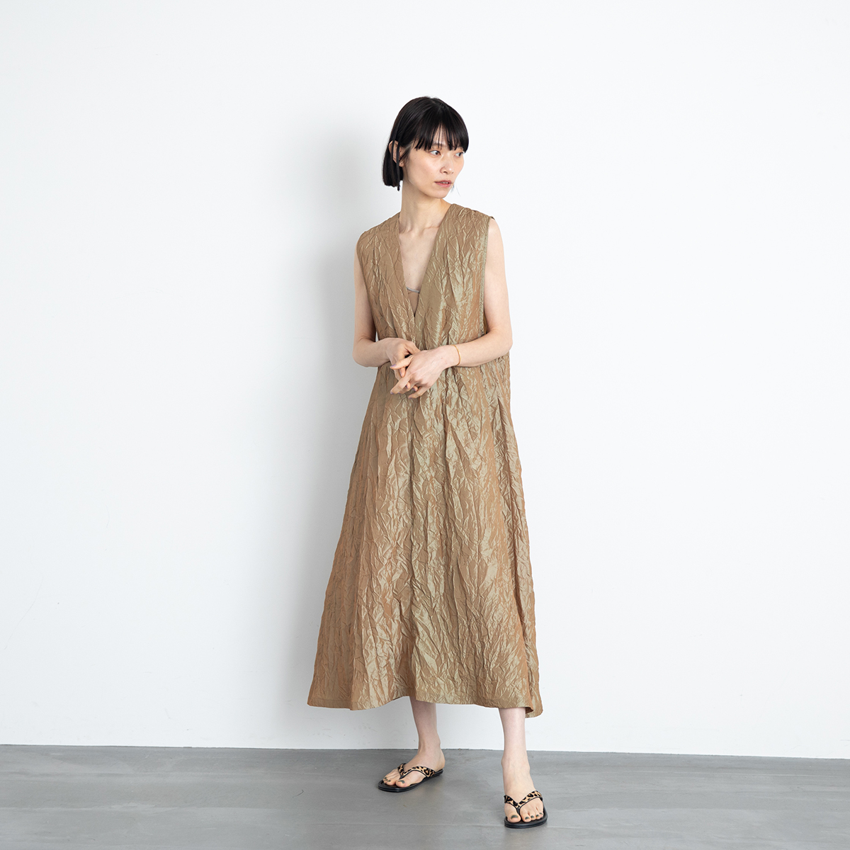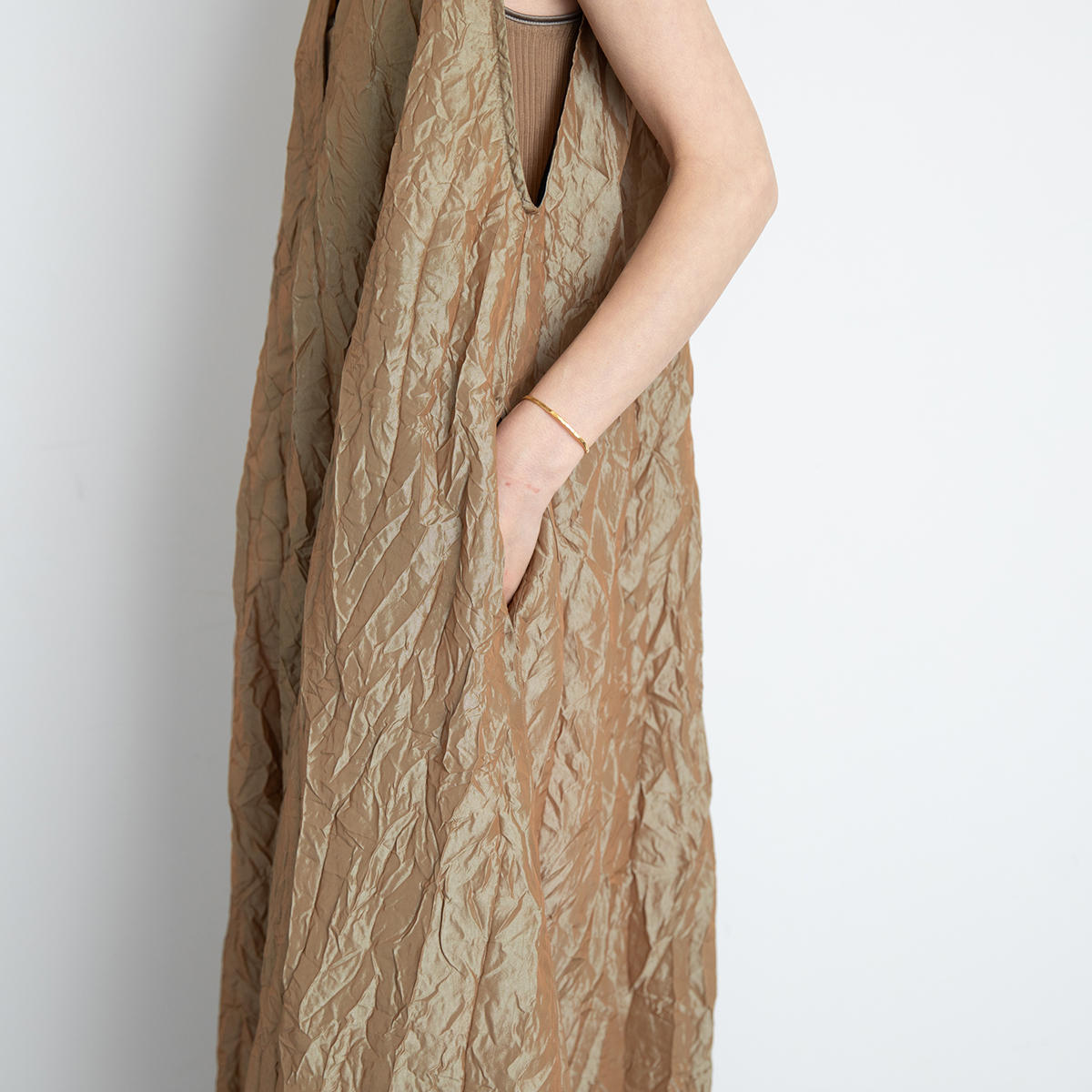 Sleeveless V Wide Dress(Khaki)/Honnete